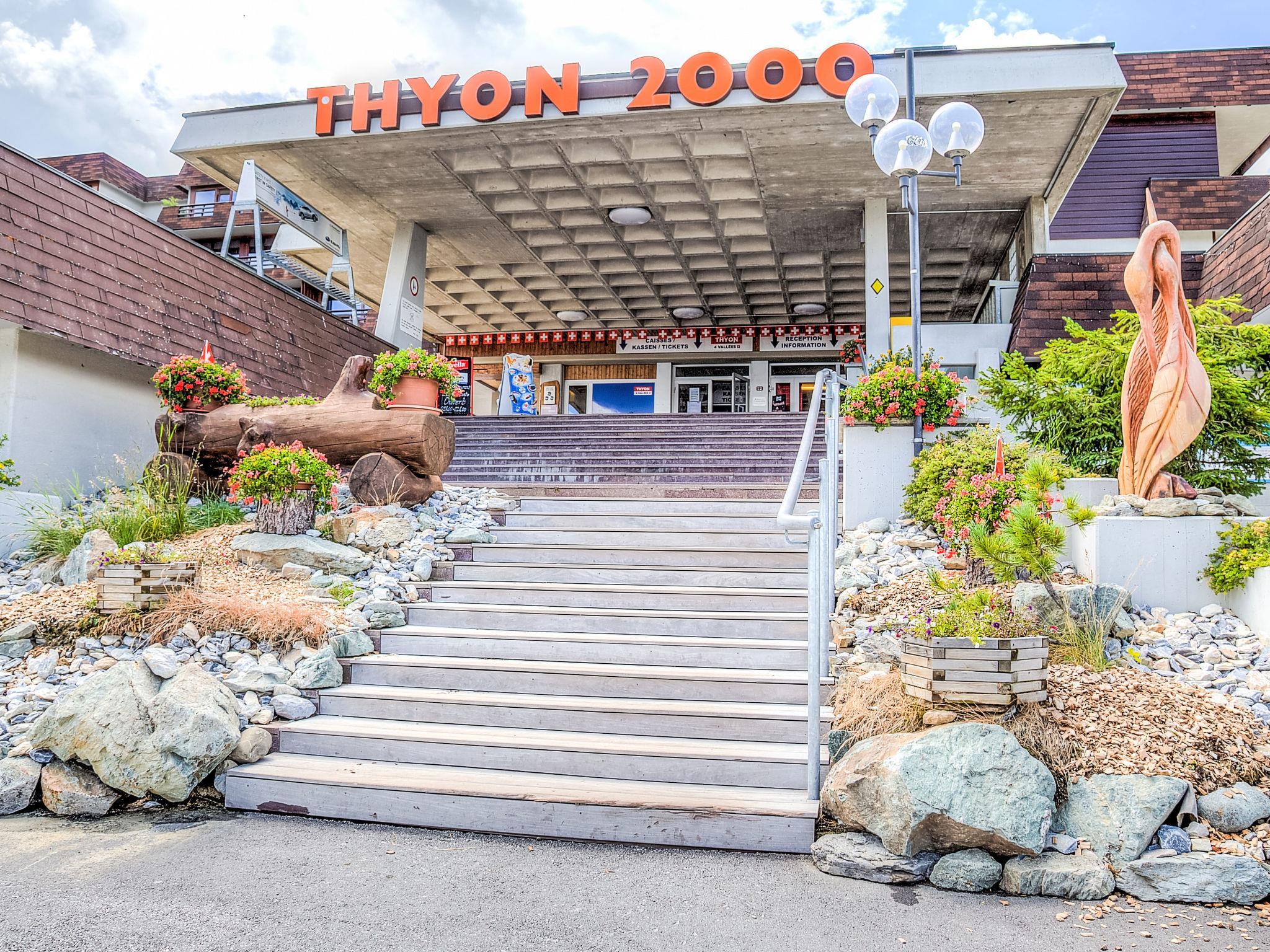 Resort. In the resort, 20 m from the skiing area. For shared use: indoor pool (seasonal availability: 14.Dec. - 10.Apr. and 13.Jul. - 24.Aug. pool opening hours: 10:00-12:00 and 15:00-19:00). In the house: storage room for skis, central heating system. Parking (extra), communal covered parking (extra). Grocery 100 m, restaurant, bus stop 20 m. Walking paths from the house 1 m, ski lift 100 m, slopes 20 m. Please note: car recommended. The keys‘ handover takes place by the agency Imalp in Thyon.