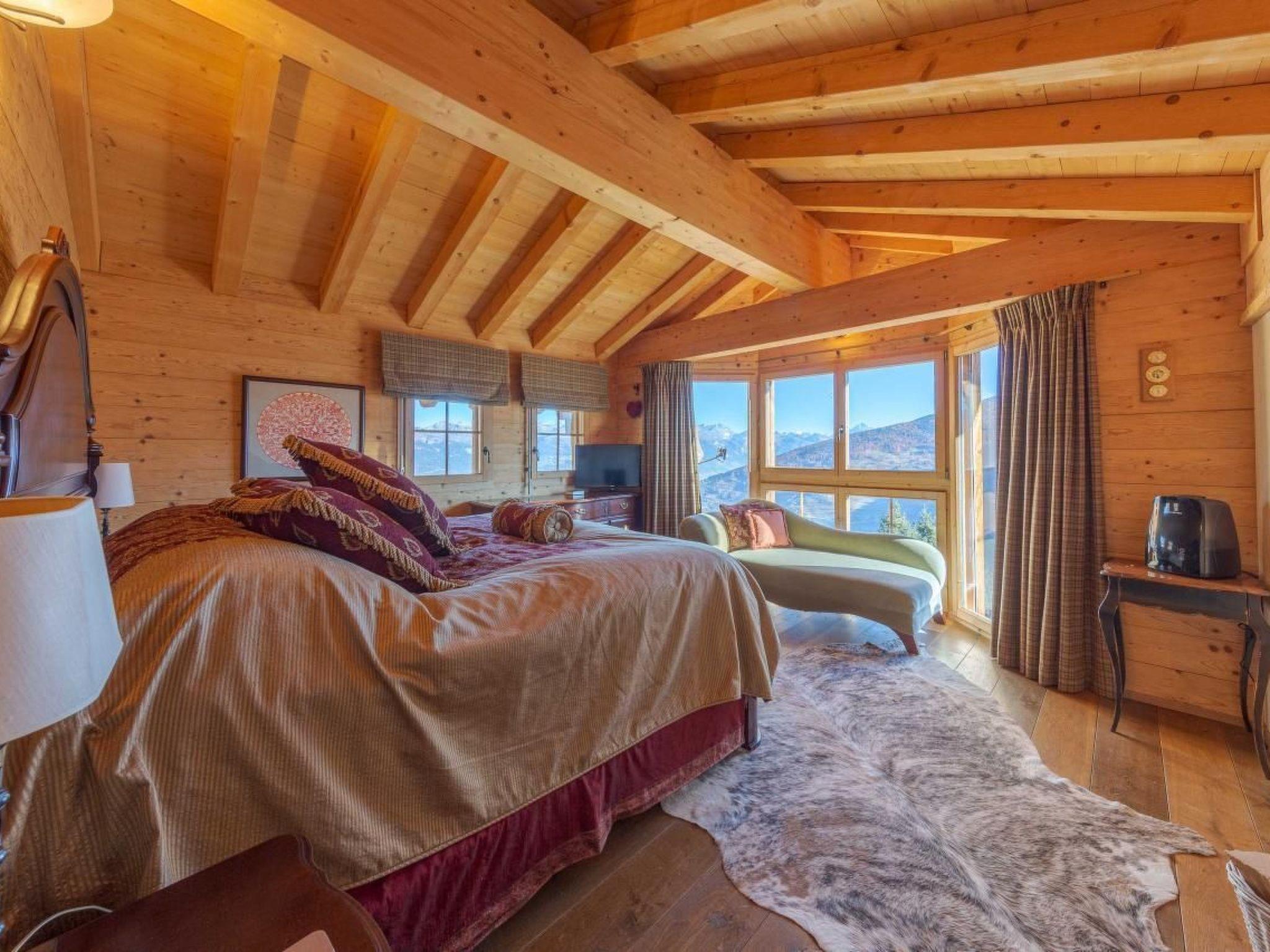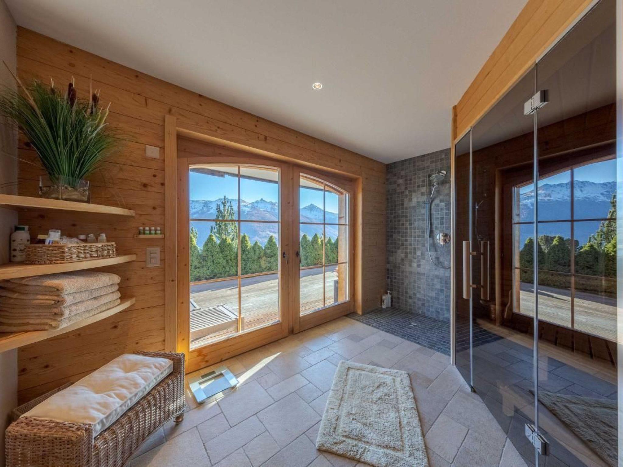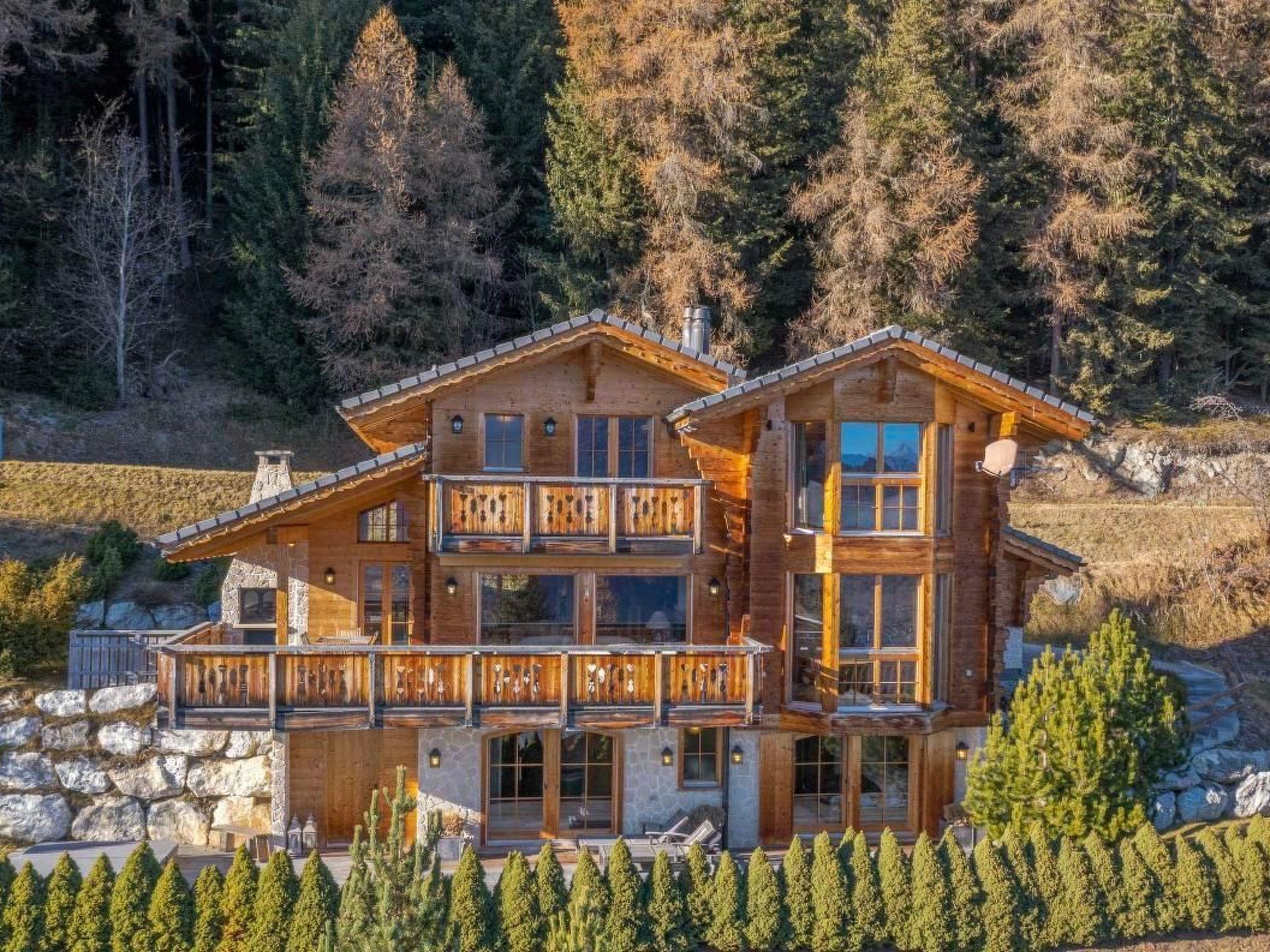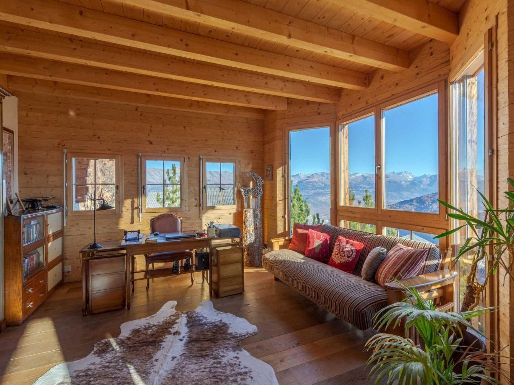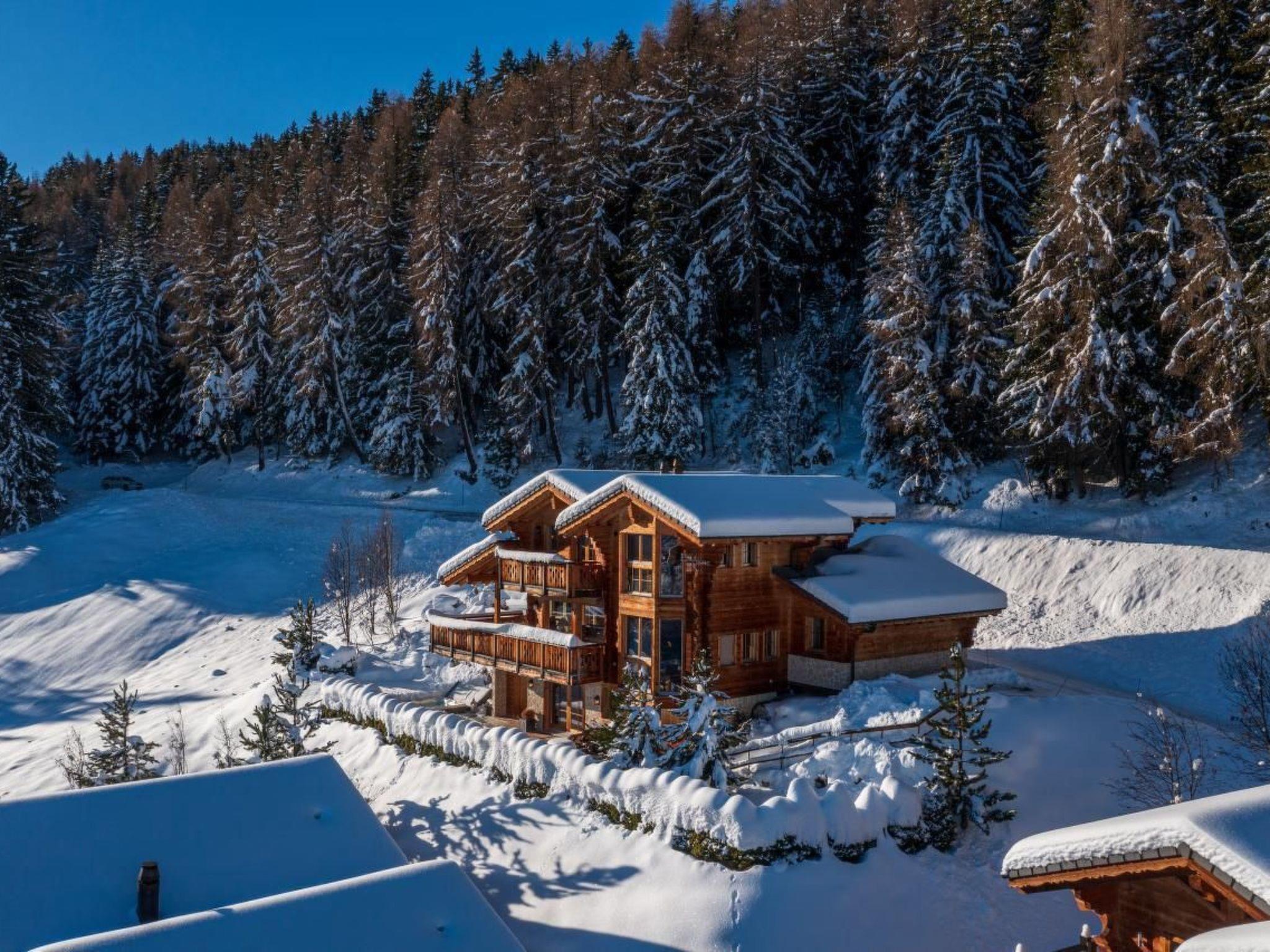 Built in a tranquil setting, nestled against the mountain with a forest at the back and stunning panoramic views over the Val d'Hérens and the Rhône Valley to the Bernese Alps at the front. Watch the sun or moon rise behind the mountains or set illuminating four 4000m peaks, including the Matterhorn and the Dent Blanche.