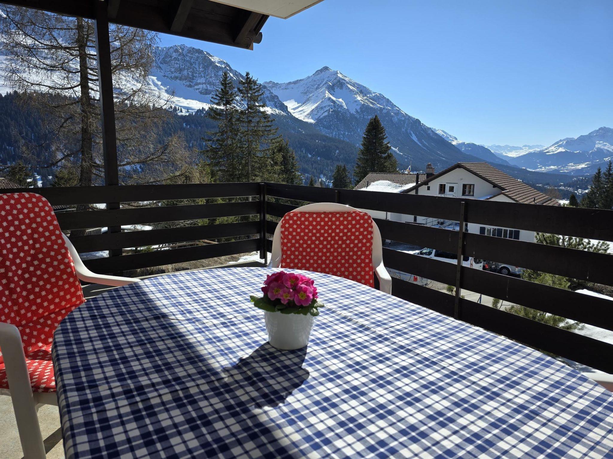 100 m2. More information by the provider: Holiday Apartment Barlangia Hoijer in Valbella – sunny, quiet and with a magnificent view of the mountains. In winter, you can ski directly from the slopes right to the house. Cozy 4.5-room apartment with stunning mountain views. An ideal starting point for hikes and bike tours in summer. Featuring a sunny terrace, a garage and an outdoor parking space. Facilities: Private garage with space for a car and bicycles, ski room with ski boot dryer, washing machine and tumble dryer in the building.