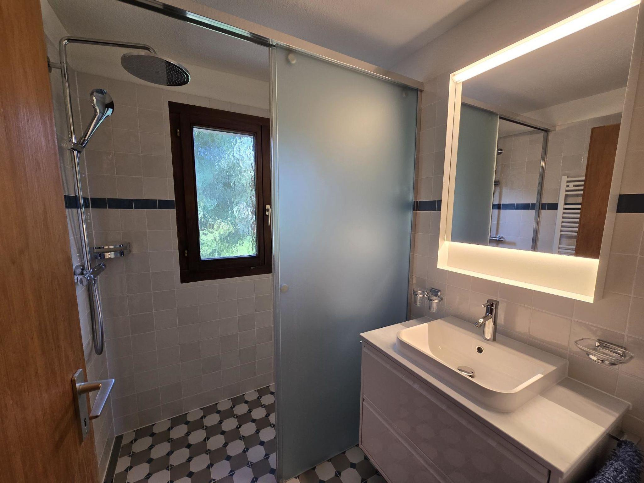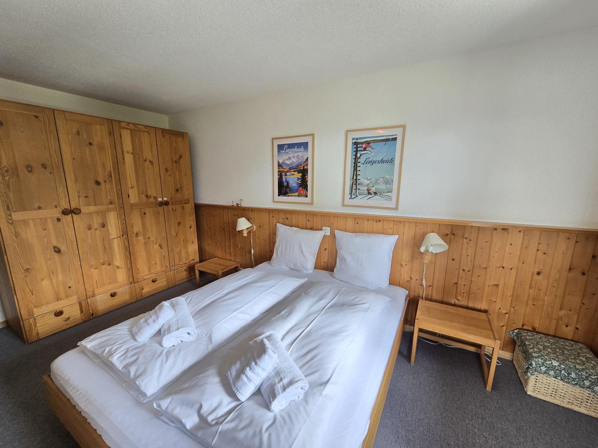 The apartment features three separate bedrooms – two with double beds and one with a bunk bed – offering space for families or small groups. A spacious, cozy living room with an open, fully equipped kitchen invites you to relax. Both areas have direct access to the large, sunny terrace facing southeast, with a fantastic view of the mountain scenery. Bathroom and toilet are separate. Amenities include a private garage, an additional outdoor parking space, a ski room with ski boot dryer and a shared laundry room.