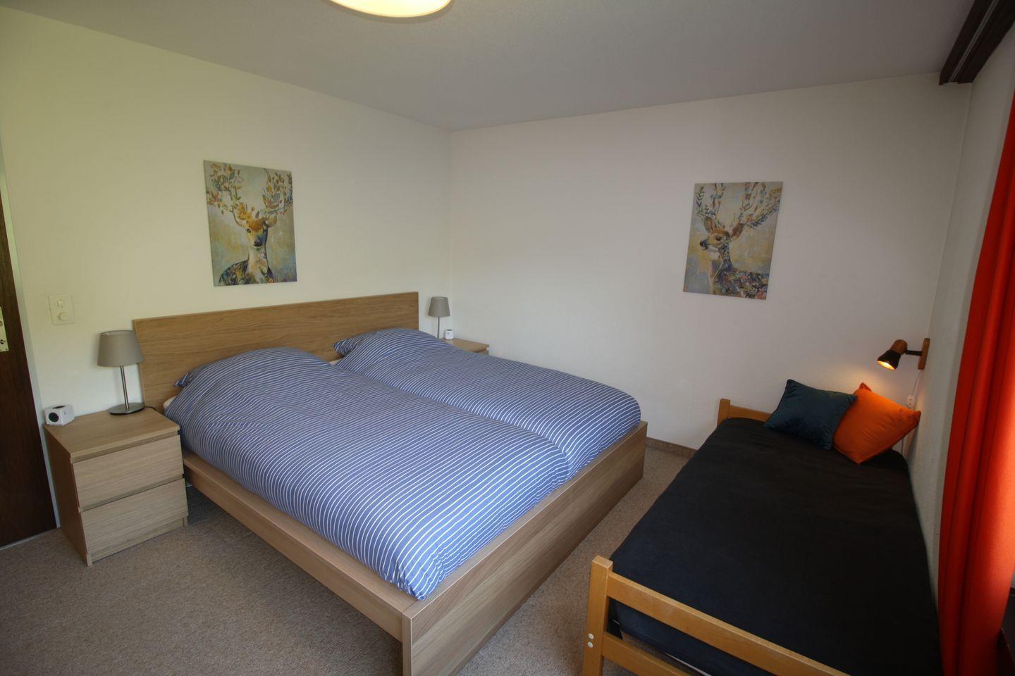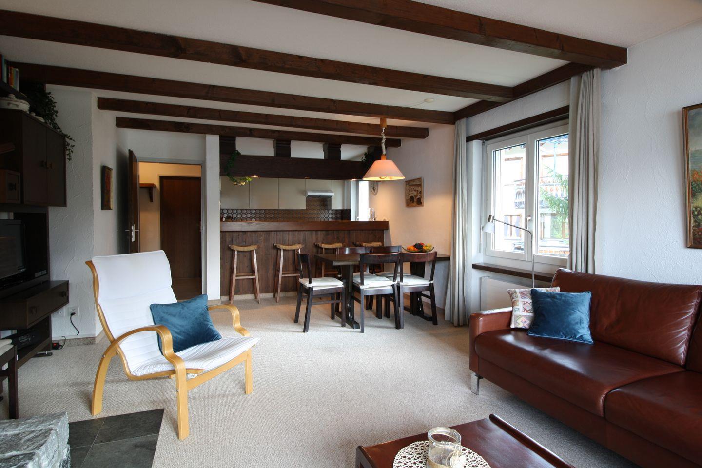 Kühlschrank und diversen Einbauschränken, Wohn-/Esszimmer mit Cheminée, TV, Sitzgruppe und Esstisch, Gratis W-Lan, Süd-Sitzplatz, Doppelzimmer mit Normalbetten, Schlafzimmer mit Normalbetten und Einzelbett, Garagenplatz angeschrieben mit F. Nannings in der Tiefgarage (Höhe 200cm), zur Mitbenützung: Kostenpflichtige Waschmaschine und Tumbler, Wohnfläche ca. 85 m2, Nichtraucherwohnung / Haustiere nicht erlaubt!