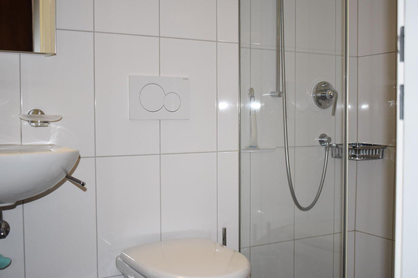 3½-Zimmer-Wohnung im 2. OG bestehend aus: Entrée mit offener Garderobe, Dusche / WC / Lavabo, Küche mit 4- Platten-Elektroherd, Backofen, Geschirrspüler, Dampfabzug,