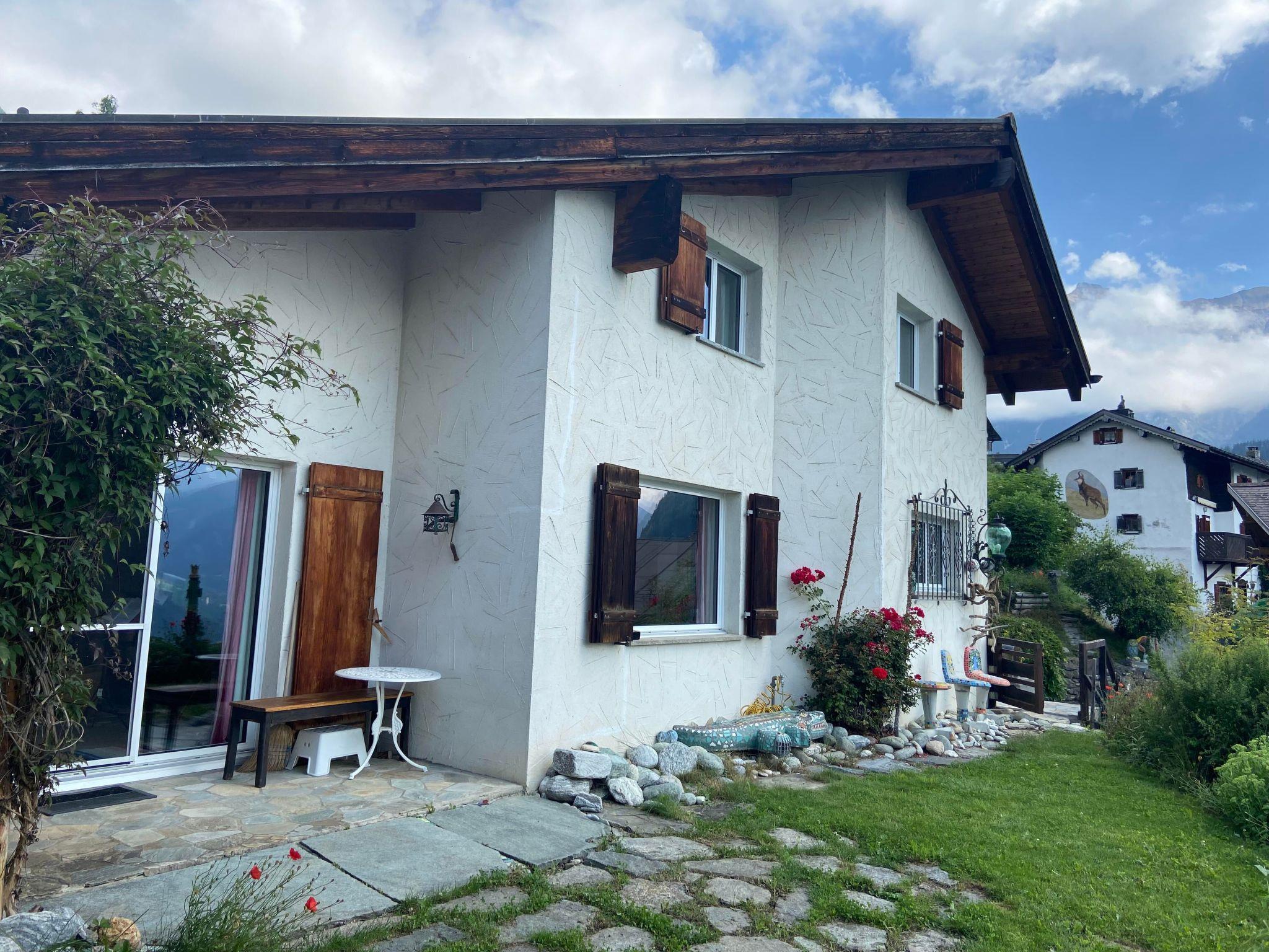 The outdoor area of the house is characterised by its small seating area by the entrance, which catches the morning sun, as well as a spacious, sunny garden on the south side with barbecue facilities. This offers an enchanting view of the surrounding mountain landscape and invites you to spend cosy hours outdoors. The property is also in a very quiet location, with no through traffic, and offers a garage space for one car as well as parking for two further vehicles.