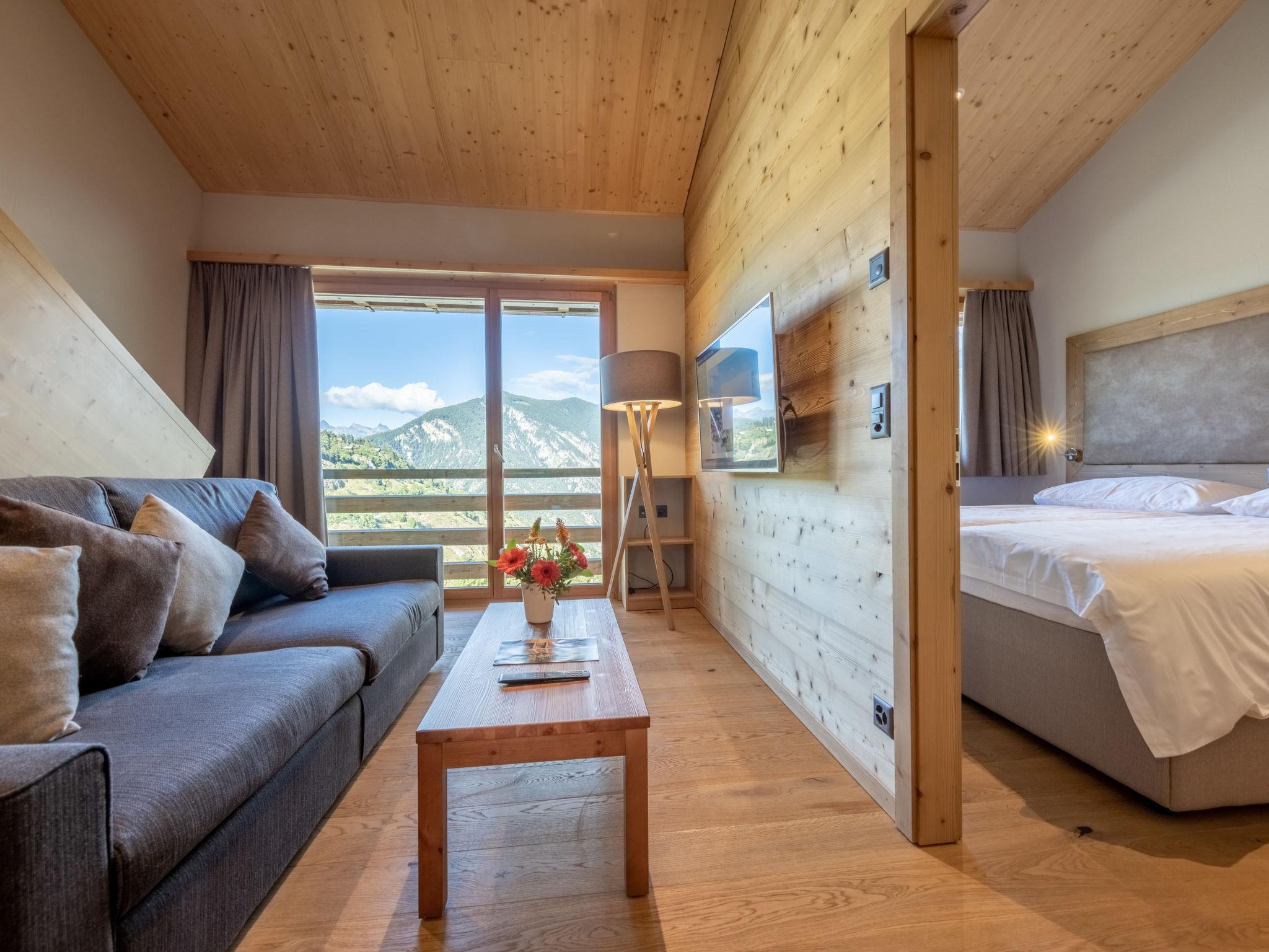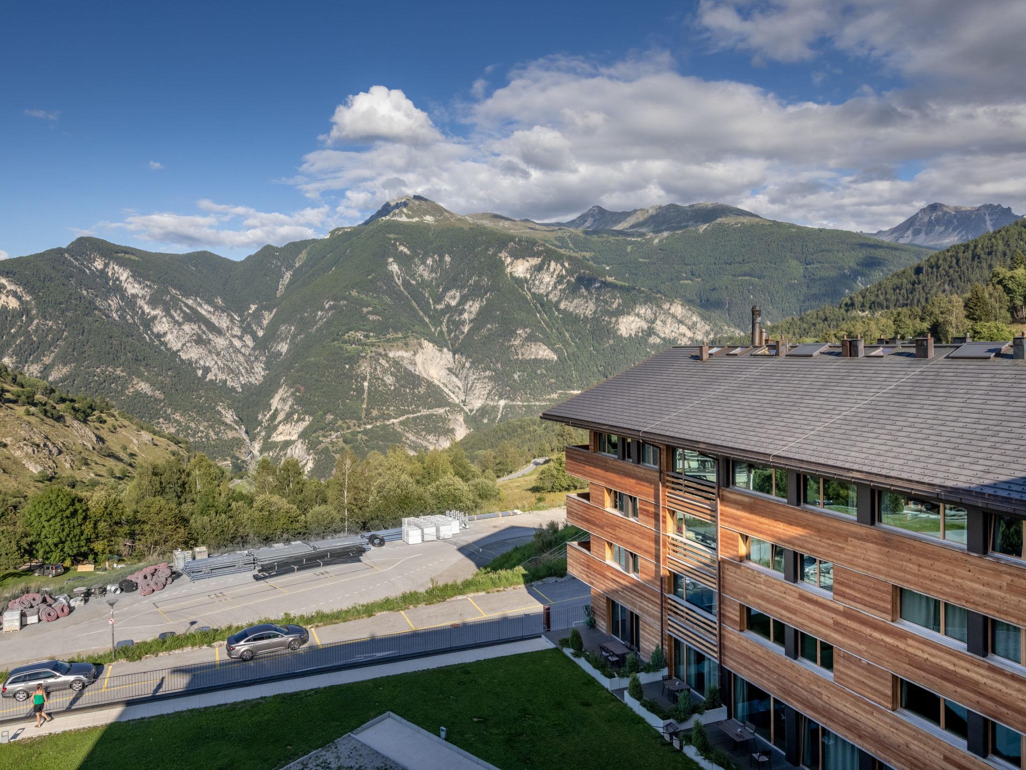 Child friendly, modern, beautiful resort "SWISSPEAK Resorts Vercorin", 1'330 m a.s.l., 6 storeys, built in 2017. 90 apartments in the residence. In the centre of Vercorin, in a quiet position on a slope, 11 km from the lake, 80 m from the skiing area. For shared use: boccia. In the complex: reception, bar, lounge, bistro, WiFi, sauna, steam room, hot tub, playroom, lift, storage room for bicycles, storage room for skis, central heating system, washing machine (extra), tumble dryer (extra). Linen change (suppl. charge extra). Storeroom available. Motor access to the house. In Winter: please take snow chains. Parking, communal covered parking (extra). Dimension: height 225 cm. E-charging station. Grocery 150 m, restaurant 180 m, bar 10 m, bicycle rental 550 m, bus stop "Vercorin, Poste" 400 m, outdoor swimming pool 11 km, indoor swimming pool 13 km, bathing lake "Lac de Géronde, Sierre" 11 km. Golf course (18 hole) 11 km, tennis 650 m, minigolf 700 m, walking paths from the house 100 m, cable car 750 m, gondola lift 80 m, skisport facilities 10 m, slopes 80 m, ski rental, ski bus stop, ski school, children's ski school 20 m, sled run 650 m, ice rink 550 m, children's playground 650 m. Nearby attractions: Fôret aventures Vercorin 1.5 km, Les moulines de St-Luc 17 km, Trottinette tout terrain St-Luc 17 km, Observatoire François-Xavier Bagnoud 20 km, Château de Tourbillon 20 km, Barrage de Moiry 24 km. Well-known ski regions can easily be reached: Grimentz Zinal 15 km, St-Luc Chandolin 17 km, Crans Montana 27 km. Hiking paths: Vallon de Réchy 500 m, Grimentz 14 km, Zinal 19 km. Please note: car recommended. Suitable for families. Groups of teenagers on request only. Ski bus (free of charge). In case of good snow conditions, the house is accessible on skis. Loading and unloading of baggage is possible at the holiday house. The photo is just an example. Additional equipment available: ATM, Gaming Room, après-ski bar: 20m. SPA for guests 16 years and over, towels can be rented for CHF 2.- each.