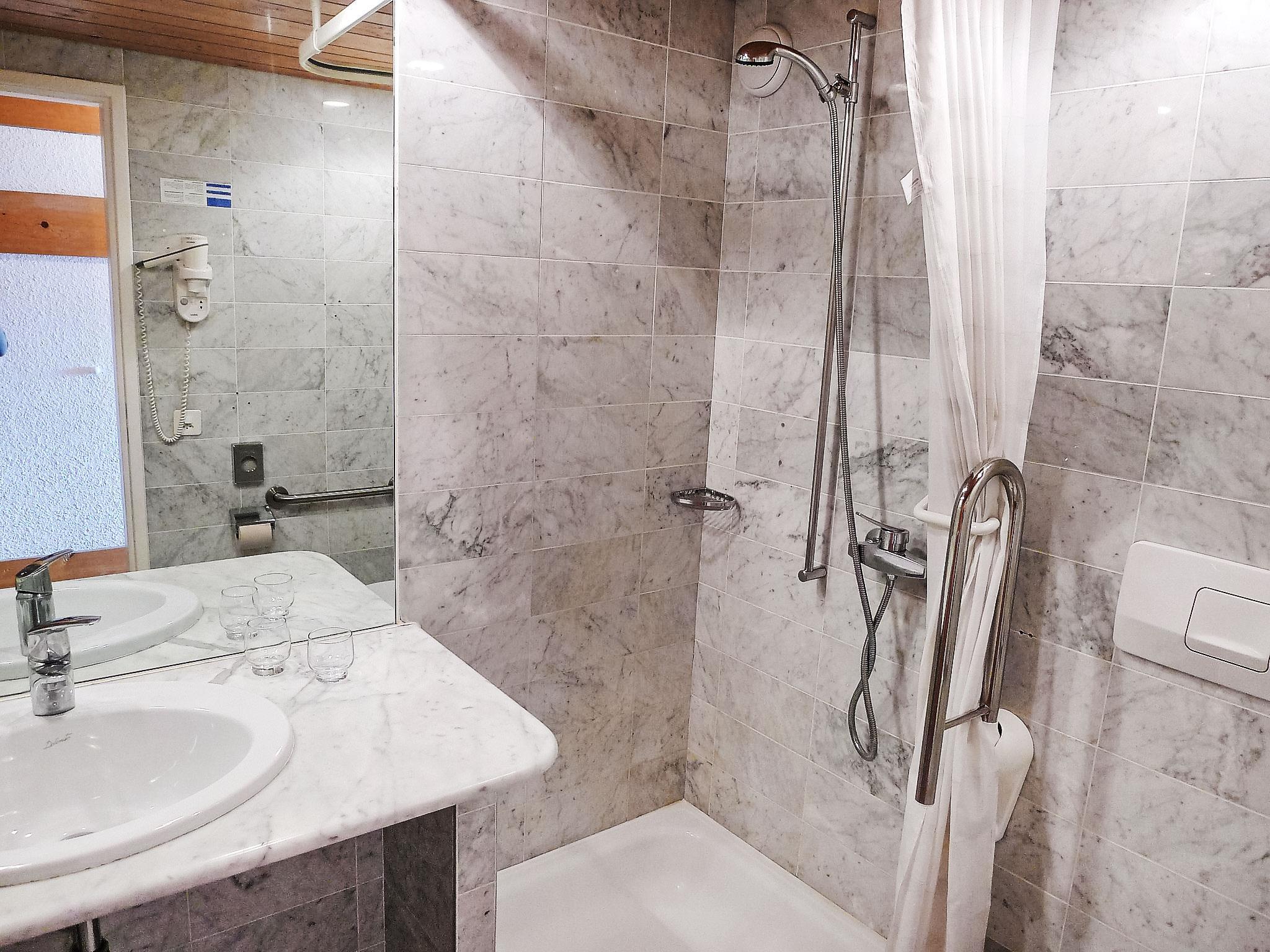 "Le Bristol B36", 1-room studio 28 m2 on 3rd floor. Bright, partly renovated in 2021, beautiful furnishings: Studio with 2 beds (90 cm), dining table, kitchen corner, shower/WC and TV (flat screen). Exit to the balcony, south facing position. Kitchenette (oven, dishwasher, 2 ceramic glass hob hotplates, toaster, kettle, electric coffee machine, raclette grill, fondue Set (cheese)). Balcony 5 m2, south facing position. Balcony furniture. Very beautiful panoramic view of the mountains and the valley. Facilities: hair dryer. Internet (WiFi, free). Please note: non-smokers only. Maximum 1 small pet/ dog allowed. Smoke alarm.