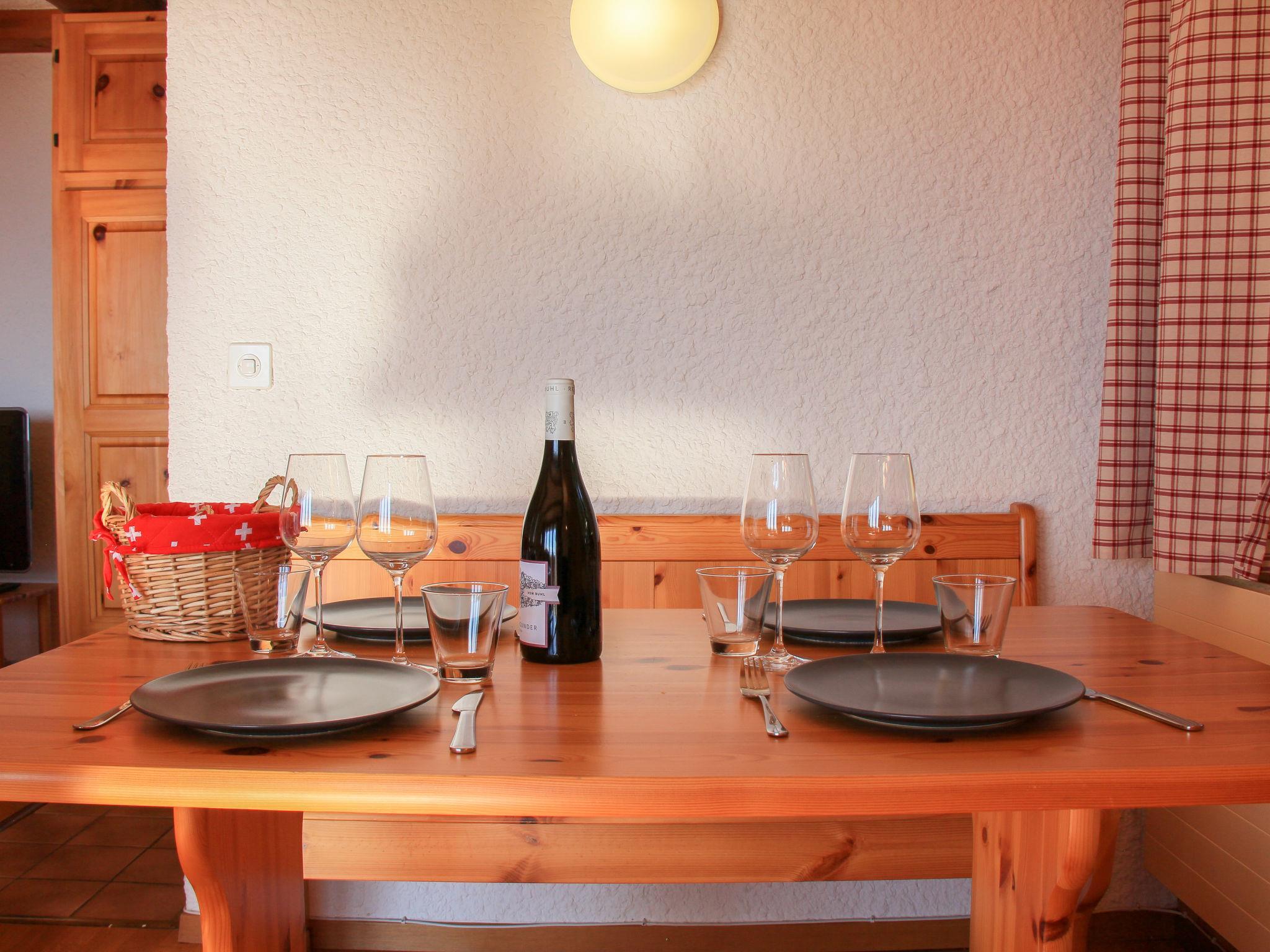 "Le Bouquetin 5", 2-room apartment 53 m2 on 1st floor, south facing position. Practical and comfortable furnishings: living/dining room with 2 pull-out beds (2 pers. 2 x 90 cm), open-hearth fireplace, dining table and TV (flat screen). Exit to the balcony, south facing position and east facing position. 1 room with 2 beds (90 cm), bath/WC. Open kitchen (oven, dishwasher, 4 ceramic glass hob hotplates, toaster, kettle, microwave, electric coffee machine, Capsules for coffee machine (Nespresso) extra, raclette grill, fondue Set (cheese)). Shower/WC. Small balcony, south facing position and, east facing position. Very beautiful panoramic view of the mountains. Facilities: hair dryer. Garage space n n°5 (1 car). Please note: non-smokers only. No lift.