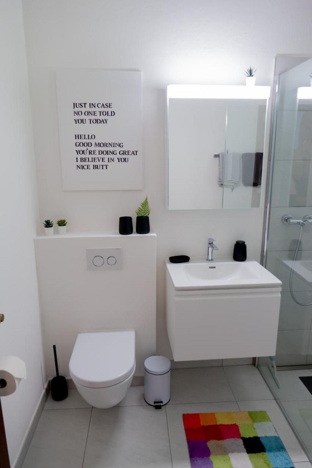 The modern kitchen is equipped with a ceramic hob, oven, fridge, small freezer, filter coffee machine, milk frother, Nespresso coffee machine, toaster, egg boiler and kettle as well as the necessary cooking utensils and crockery. The flat also has a dishwasher and a Sodastream water bubbler. A raclette oven and standard spices are also available.