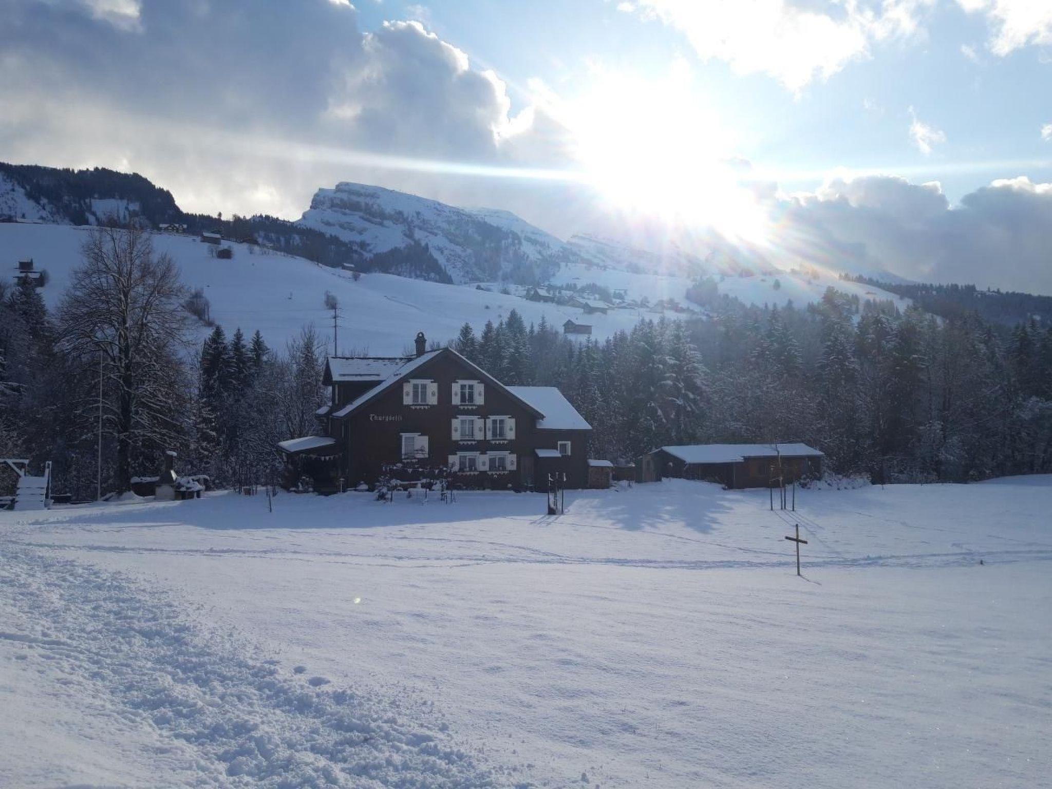 Exclusive studio in the middle of nature at the source of the Thur. The Studio Chic impresses with its modern yet cosy living ambience. The bedroom under the roof and the large panoramic window give the room its unique character. Behind the house there is a garden seating area with a whirlpool. The studio has a separate entrance. In the entrance area there is a cloakroom and a bathroom with shower and WC. A staircase leads up to the studio on the first floor. A footpath of 80 metres leads from the car park to the house. The house is in a very quiet yet central location, as you can reach the shops or the cable cars in just a few minutes. Wildhaus is great for skiing or snowshoeing in winter, but also offers a wide range of leisure activities at other times of the year.