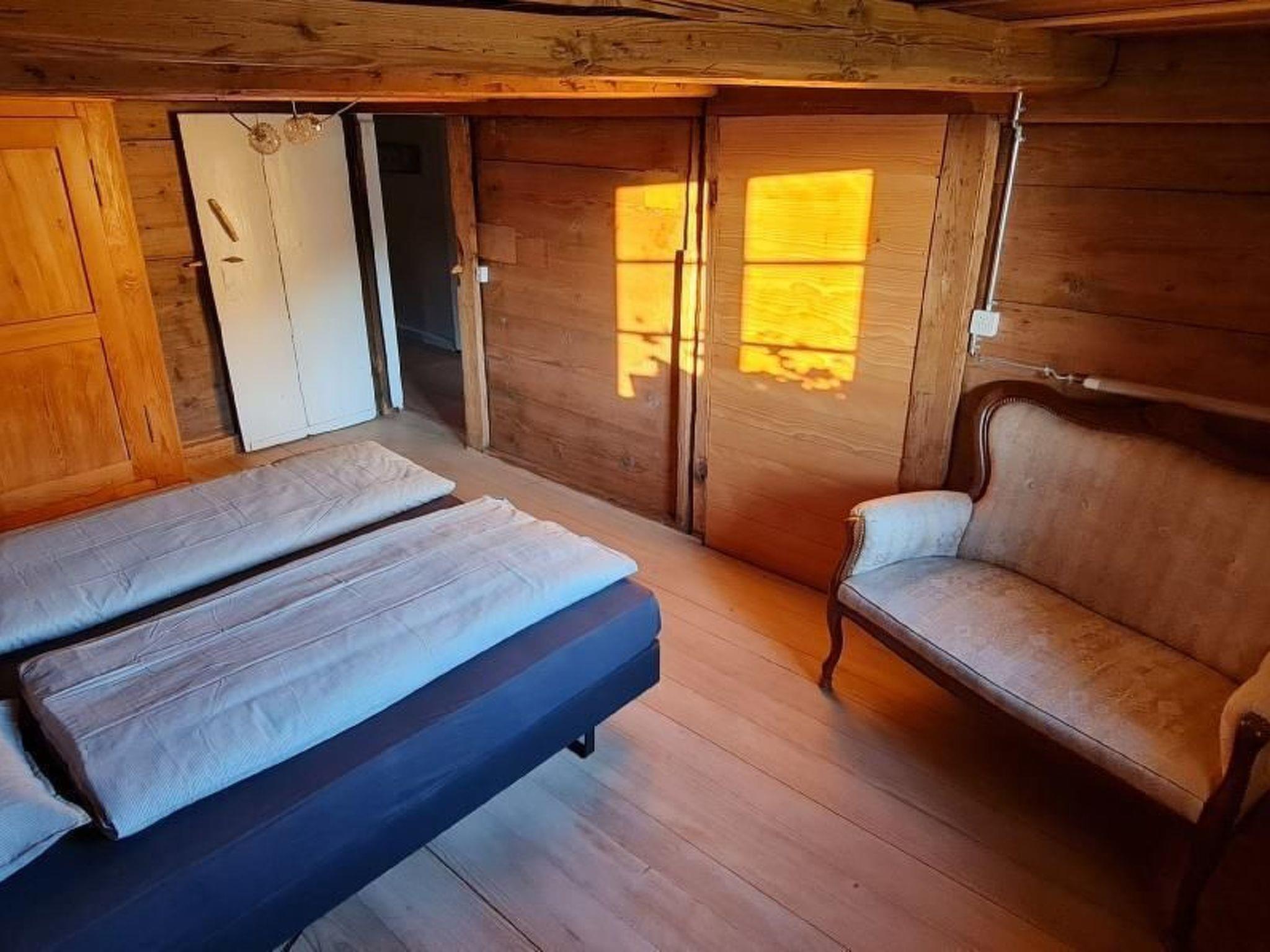 The charming 3 ½ room flat with 65m2 has 2 separate bedrooms with double beds and a view of the nearby Ostergau with the Weihler landscape, which invites you to linger. The cosy kitchen, the living area with comfortable sofa bed and the spacious bathroom with washing machine and tumble dryer and old free-standing bathtub round off the whole thing. You can enjoy the morning or evening hours in the seating area by the spycher.