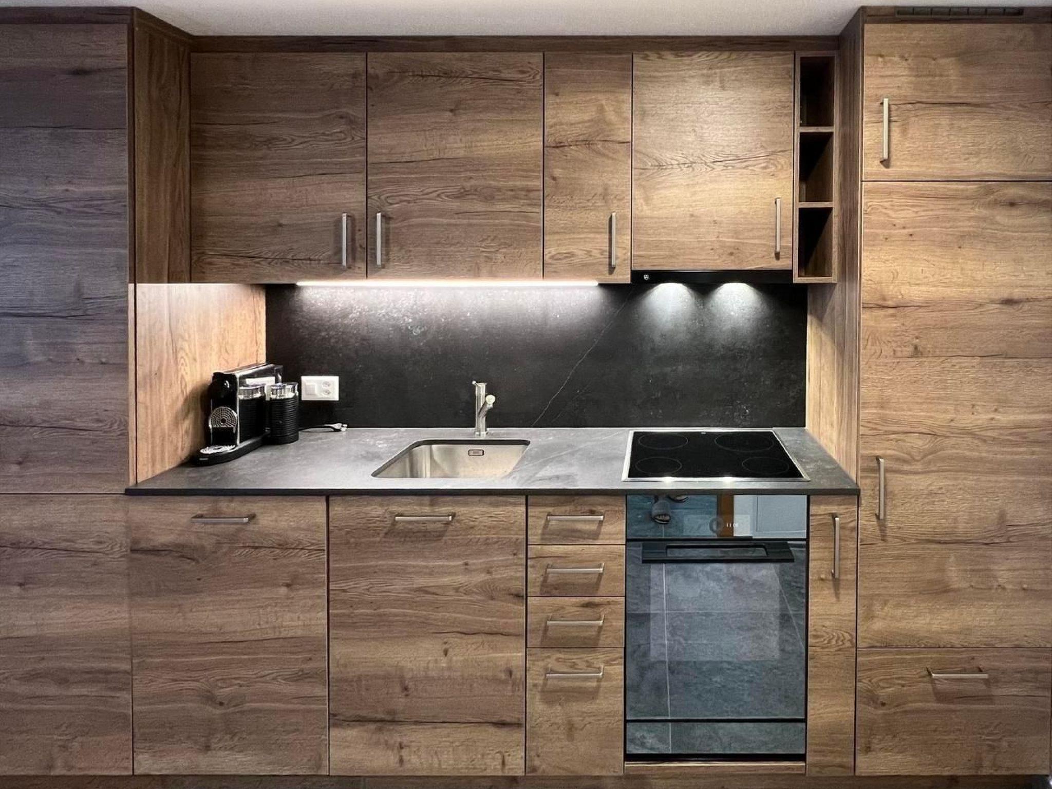 The living area is tastefully furnished and has a comfortable leather sofa, a dining area and a generously equipped kitchen. This is equipped with modern appliances. The windows let in plenty of natural light. The south-facing balcony offers a wonderful view of the Matterhorn and the garden, where you can enjoy your coffee in the morning or watch the sun set over the Alps in the evening.