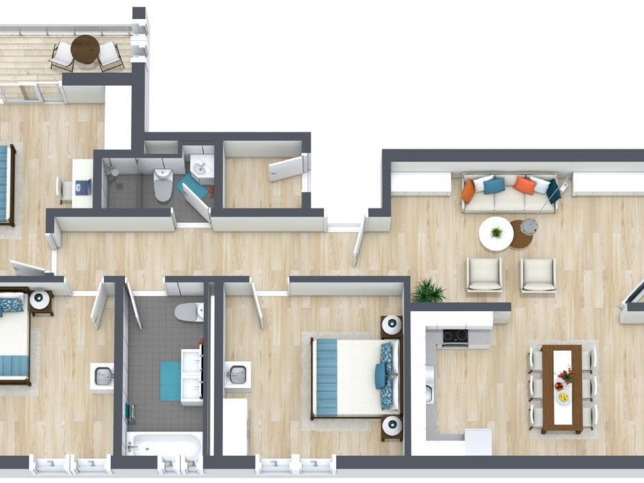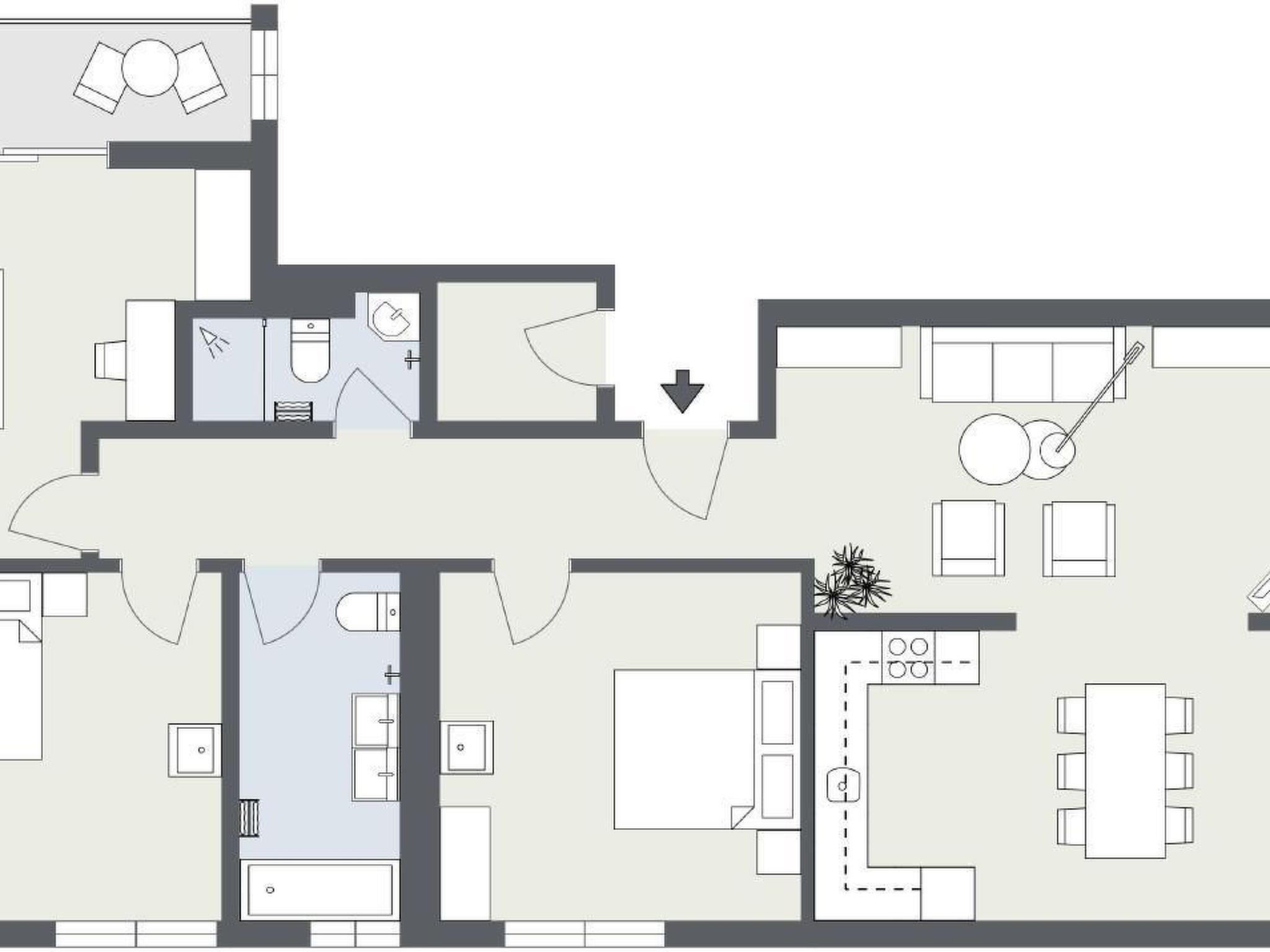 The Matterhorngruss holiday apartment house is situated in the heart of the village of Zermatt and enjoys a very central but quiet location (a 3-minute walk from the church and nearest bus stop). Here we rent the very spacious holiday flat "Castor" for 2-7 persons. 4 1/2 - room apartment for 2-8 people. Kitchen with dish-washer, dining table and adjoining living-room, 3 twin bedrooms; bathroom/toilet, shower/toilet, radio, DVD, cable-TV and telephone, free internet WLan. All rooms have a balcony, kitchen and living room with a view of the Matterhorn. There is a large, child-friendly playground and relaxation area in front of the house with a climbing wall, table tennis, trampoline, swing and barbecue with seats. It is the ideal accommodation in Zermatt for families and small groups.All rooms have a balcony, kitchen and living room with a view of the Matterhorn.