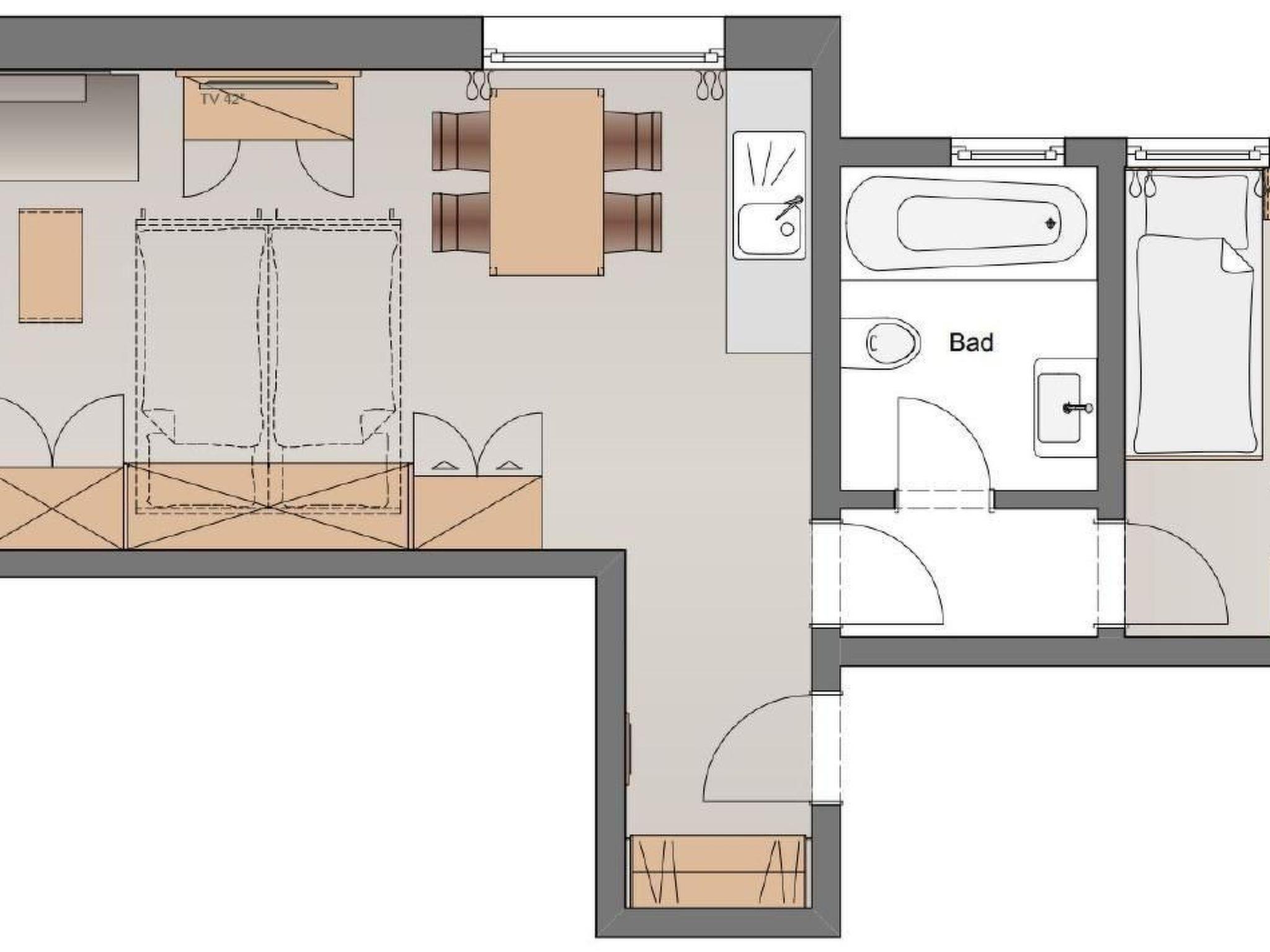 The holiday apartment house "Felicé" is located just outside of Zermatt in the quarter "Winkelmatten".The "Felicé" holiday apartment house is located on the outskirts of Zermatt and is ideally located for skiers and hikers. This new, spacious holiday apartment is designed for 1-3 people. The terrace has a wonderful view of the Matterhorn.There is a bus stop a 2-minute walk from the holiday apartment house which provides easy access to the village centre. There is a child-friendly playground and relaxation area in front of the house with table tennis, trampoline and swing.This spacious two-room holiday apartment is designed for 1 - 3 people. With a surface area of over 35 m² it has plenty of space for 4 people. Besides a bedroom and a living room with a folding bed, the apartment also has an open-plan kitchen with dishwasher and a bathroom with WC. Radio, telephone, TV and free WLAN are also provided. All rooms have a balcony and the living room has a view of the Matterhorn.You can ski from the house directly to the bottom station of the Klein Matterhorn ski lift system, and in the evening you can ski directly back to the house (Ski In / Ski Out).