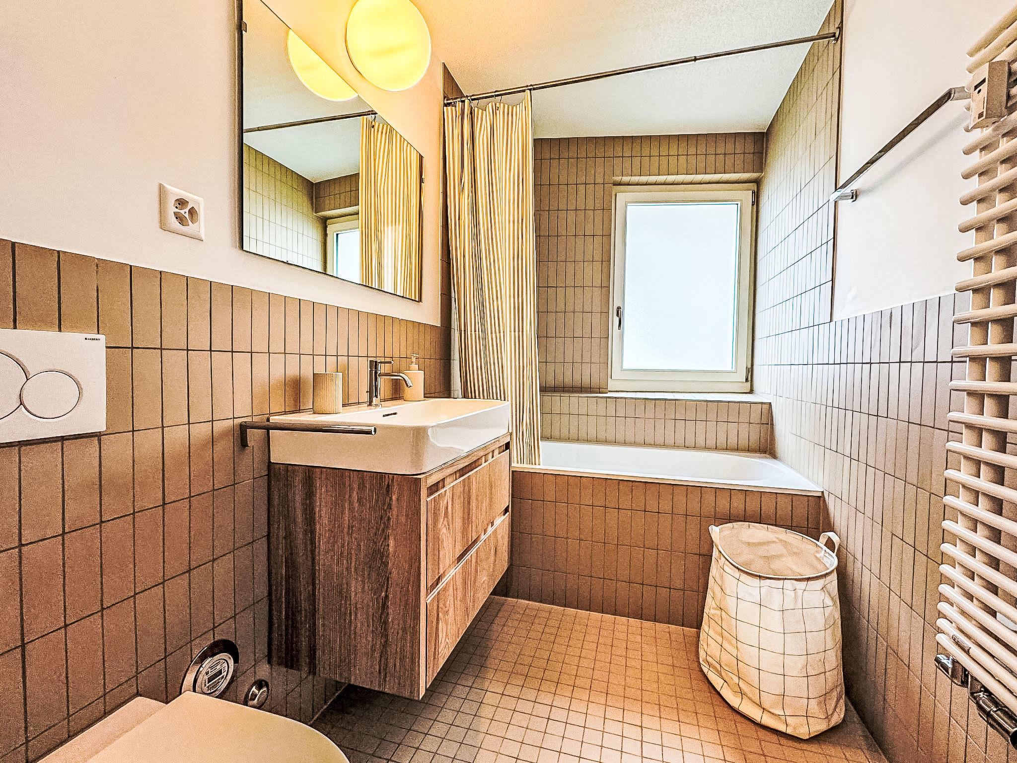 4-room apartment 120 m2 on 4th floor. Simple and comfortable furnishings: living/dining room with open-hearth fireplace (only for decoration), dining table, cable TV and radio. Exit to the balcony. 1 room with 2 beds (90 cm, length 200 cm). 1 room with 2 beds (90 cm, length 200 cm). 1 double bedroom with 1 french bed (1 x 160 cm, length 200 cm). Small kitchen (4 hot plates, oven, dishwasher, toaster, kettle, freezer, electric coffee machine, raclette grill, fondue Set (chinoise, cheese)). Exit to the balcony. Bath/WC, shower/WC, sep. WC. Balcony. Balcony furniture. Beautiful view of Matterhorn. Facilities: hair dryer. Internet (WiFi, free). Please note: non-smokers only.