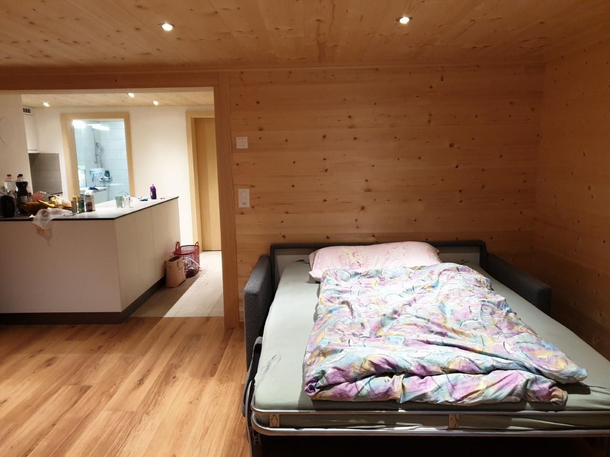 Newly renovated holiday flat approx. 60 m2 (semi-detached house), max. 3-4 persons, sunny, quiet location in Grubenwald 3.3 km outside Zweisimmen. Large living room with sofa bed (140x200) for 1 - 2 persons, TV, sofa armchairs. Large bedroom with double bed (160x200) with large wardrobe. Kitchen (simply furnished) with dining table, fridge with freezer compartment, oven, 4 hotplates, capsule coffee machine. Sep. bath/shower/WC. Shared use of washing machine possible on request. Veranda with marvellous view of Rinderberg and Zweisimmen. Large storeroom with access to the meadow with seating area. Car park available. Distance to the next skiing area Zweisimmen - Rinderberg approx. 3.3 km. Distance to the next shopping facilities 3 km. Ideal starting point for hikes or skiing holidays as the flat is centrally located between Rinderberg, Saanenmöser, Saanen, Gstaad, Lenk etc.