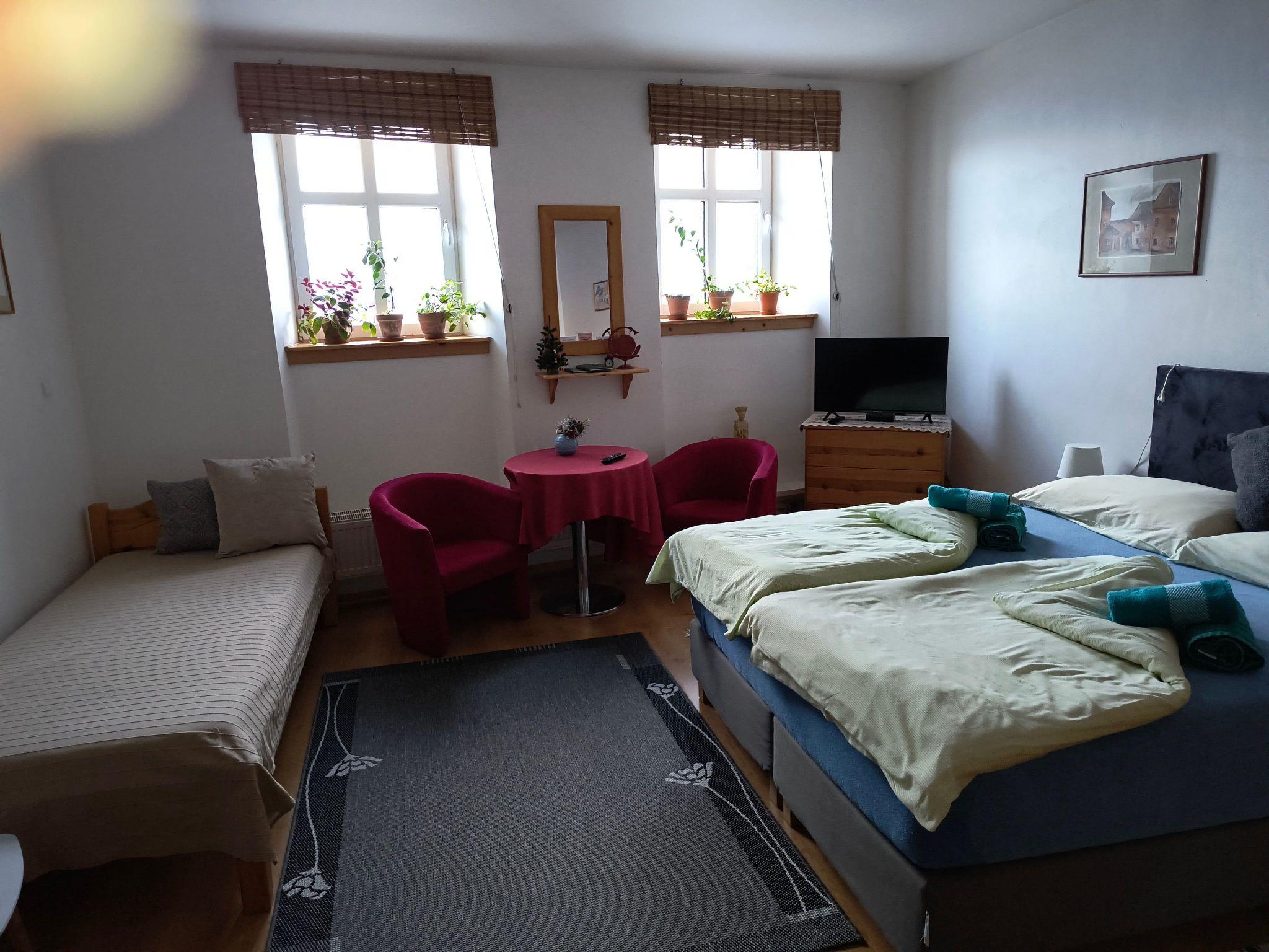 The bright, cosy holiday flat is located on the historic square in Poprad, overlooking the peaks of the Tatra Mountains.
