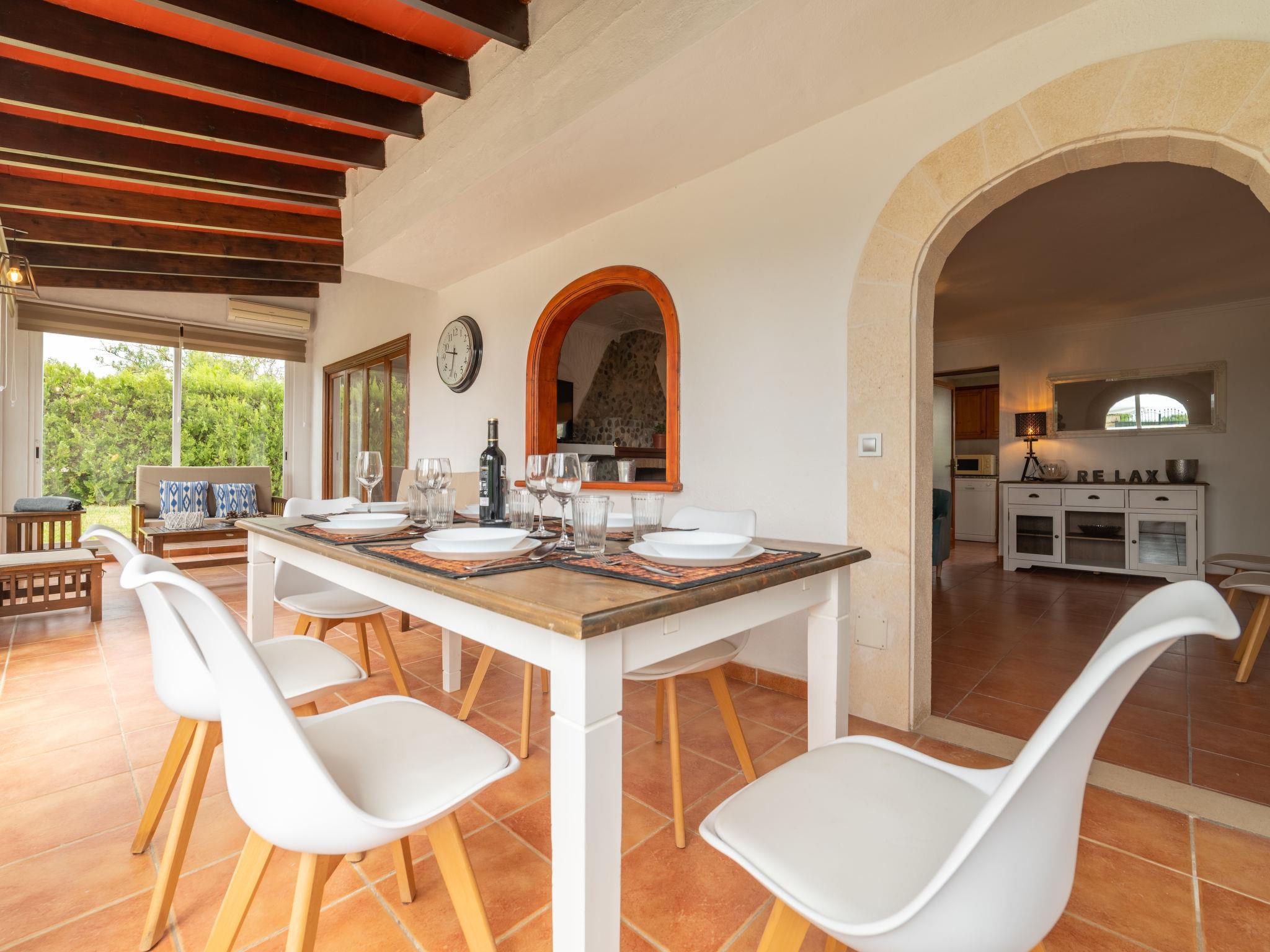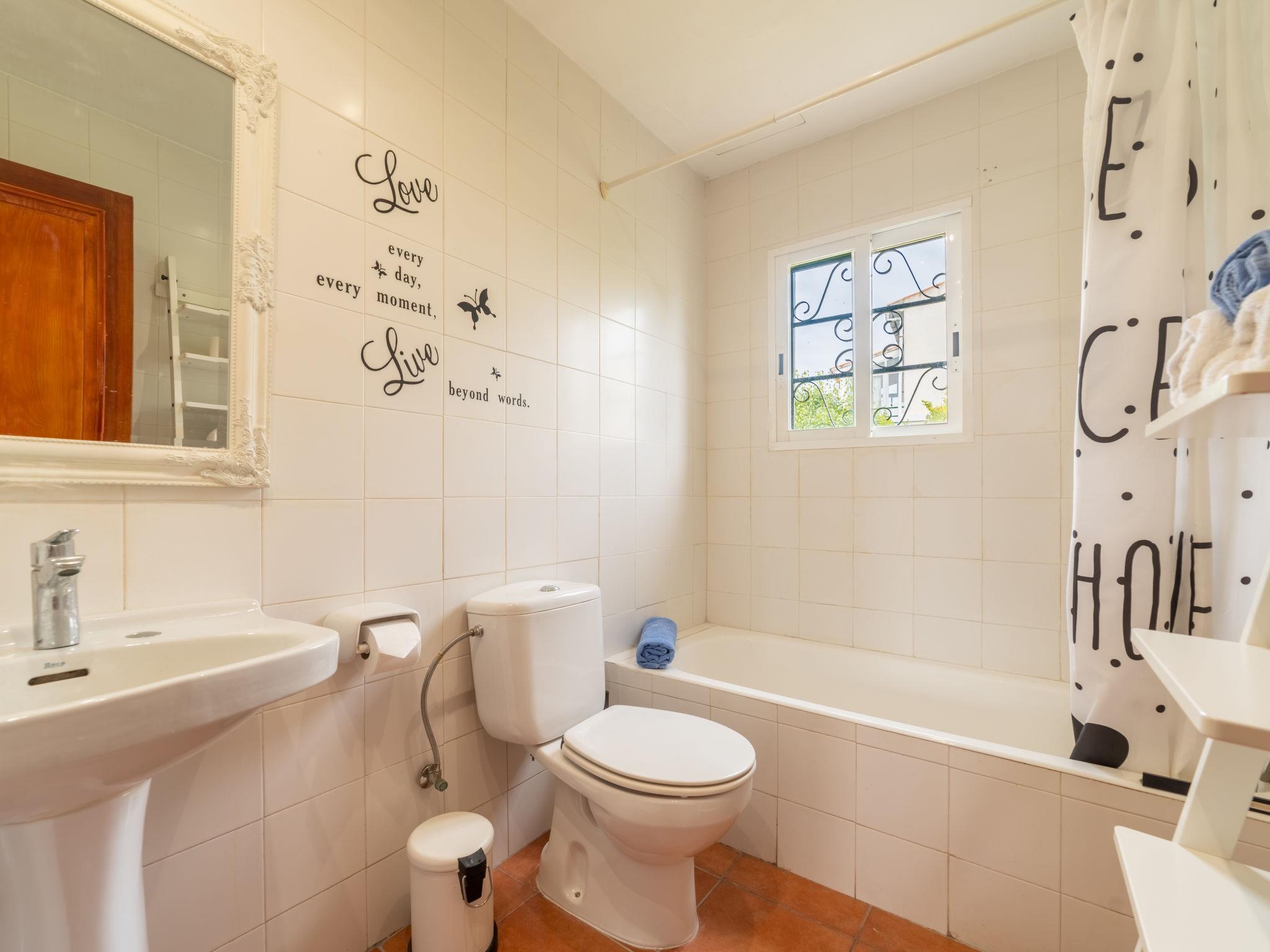 Large, cosy, comfortable villa "Can Delfin Alcudia", renovated. Outside the resort, 1.2 km from the centre of Alcúdia, in a sunny position on top of a hill, 900 m from the edge of the forest, 2.9 km from the sea, 3.8 km from the beach, in the countryside, south-west facing position. Private: property 2'800 m2 (fenced), large, well-kept garden with lawn and wildlife garden, swimming pool angular (6 x 4 m, depth 120 - 150 cm, seasonal availability: 01.Jan. - 31.Dec.) with salt water. Outdoor shower, patio, arbour, pergola, garden furniture, barbecue. In the house: internet access, WiFi, storage room for bicycles, air conditioning, washing machine, tumble dryer. Parking at the house on the premises. Shop 1.9 km, grocery 1.5 km, supermarket 1.9 km, restaurant 1.8 km, bar 1.8 km, bakery 1.8 km, 20 minute walk to the centre, bus stop 2.1 km, railway station "Sa Pobla" 12 km, ferry "Puerto de Alcúdia" 4 km, sandy beach "Playa de Alcúdia" 3.7 km, shingle beach "Alcanada" 4 km, rocky beach "Bonaire" 3 km, diving center 3 km, indoor swimming pool 1 km. Sports harbour 4 km, marina 4 km, golf course (18 hole) 4 km, surf school 3 km, sailing school 3 km, tennis 3 km, riding stable 2 km, sports centre 2 km, walking paths from the house 1 km, cycle lane 2 km. Nearby attractions: Alcúdia Old Town 1.2 km, Port Pollença - Pollença. 5 km, Hidropark Aquatic Park. Alcúdia 3 km, Wake Park Alcúdia 3.5 km. Hiking paths: Serra Tramuntana 10 km, Talaia Alcúdia - Puig Sant Marti 6 km, Albufera de Mallorca 10 km. Please note: car recommended. Suitable for families, suitable for seniors. Object suitable for 8 adults groups of teenagers on request only. Main road close by. Airfield 55 km from the property. The tap water has no drinking water quality.