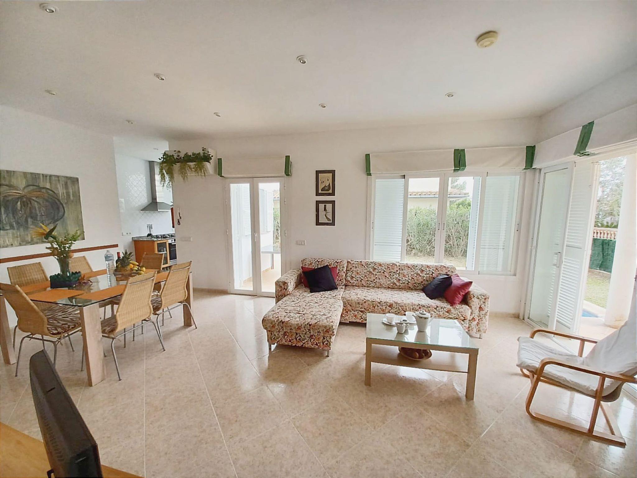 Capacity for 6 persons, 3 bedrooms, 2 bathrooms, fully equipped kitchen, living room with TV, satellite TV, internet (Wifi), washing machine, barbecue, cot and high chair available for children, iron for clothes, hair dryer, garden furniture and swimming pool.