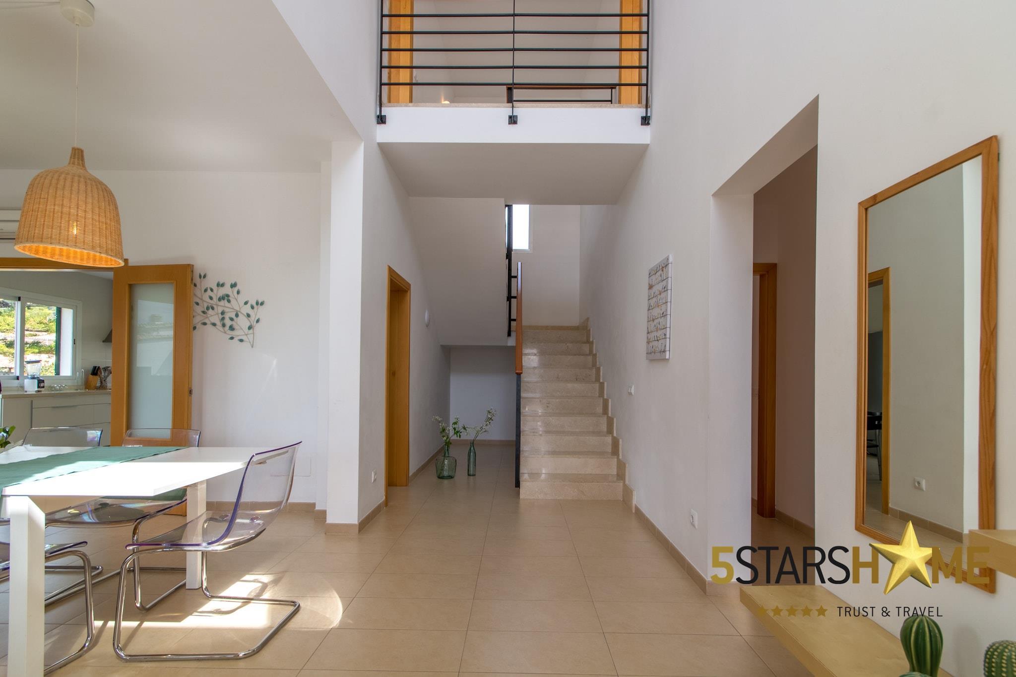 Stueetage: (Køkken(elkedel, brødrister, kaffemaskine, ovn, mikrobølgeovn, opvaskemaskine , køleskab, fryser, Saftpresser, ), stue / spisestue(Fjernsyn(parabol), spisebord, sofahjørne, DVD-afspiller), soveværelse(enkeltseng, enkeltseng), badeværelse(bruser, håndvask), Internetadgang) På 1. etage: (soveværelse(dobbeltseng), soveværelse(dobbeltseng), soveværelse(enkeltseng, enkeltseng), badeværelse(badekar med bruser, håndvask), badeværelse(badekar med bruser, håndvask)) Havemøbler, vaskemaskine, balkon, varme, klimaanlæg, terrasse, have, solstole, grill, parkering, swimmingpool(privat), strygejern