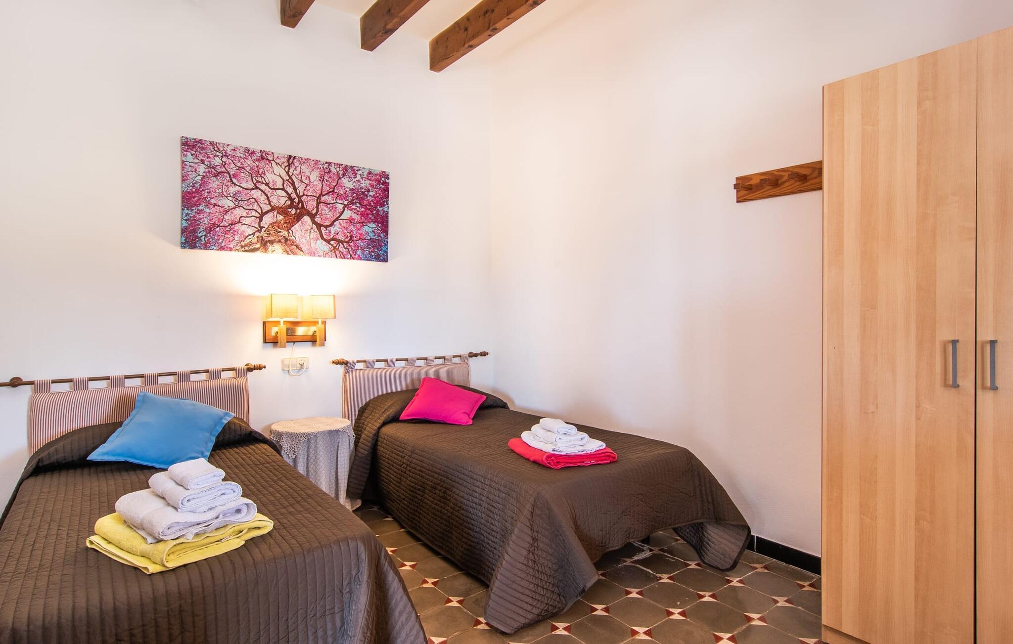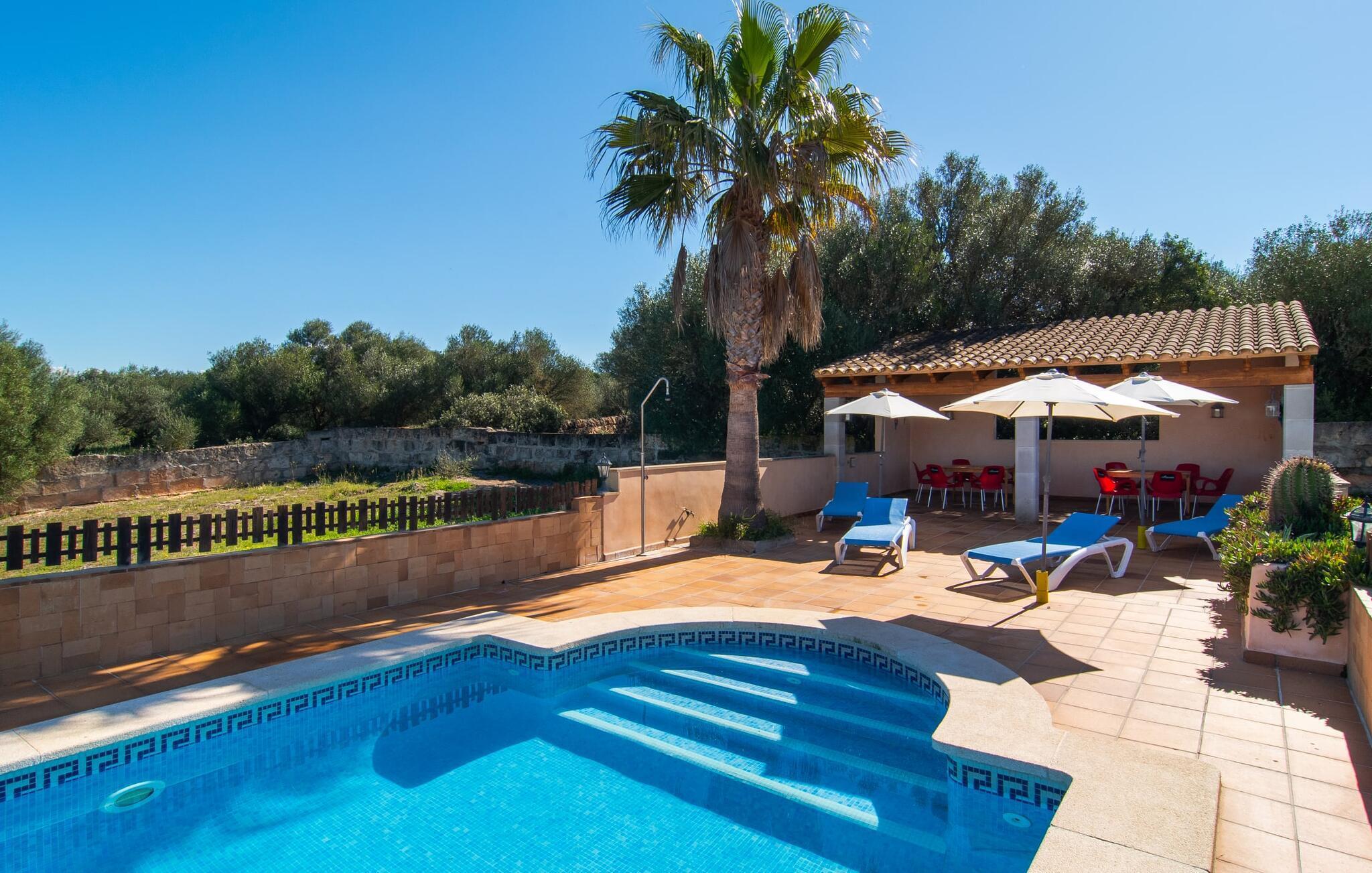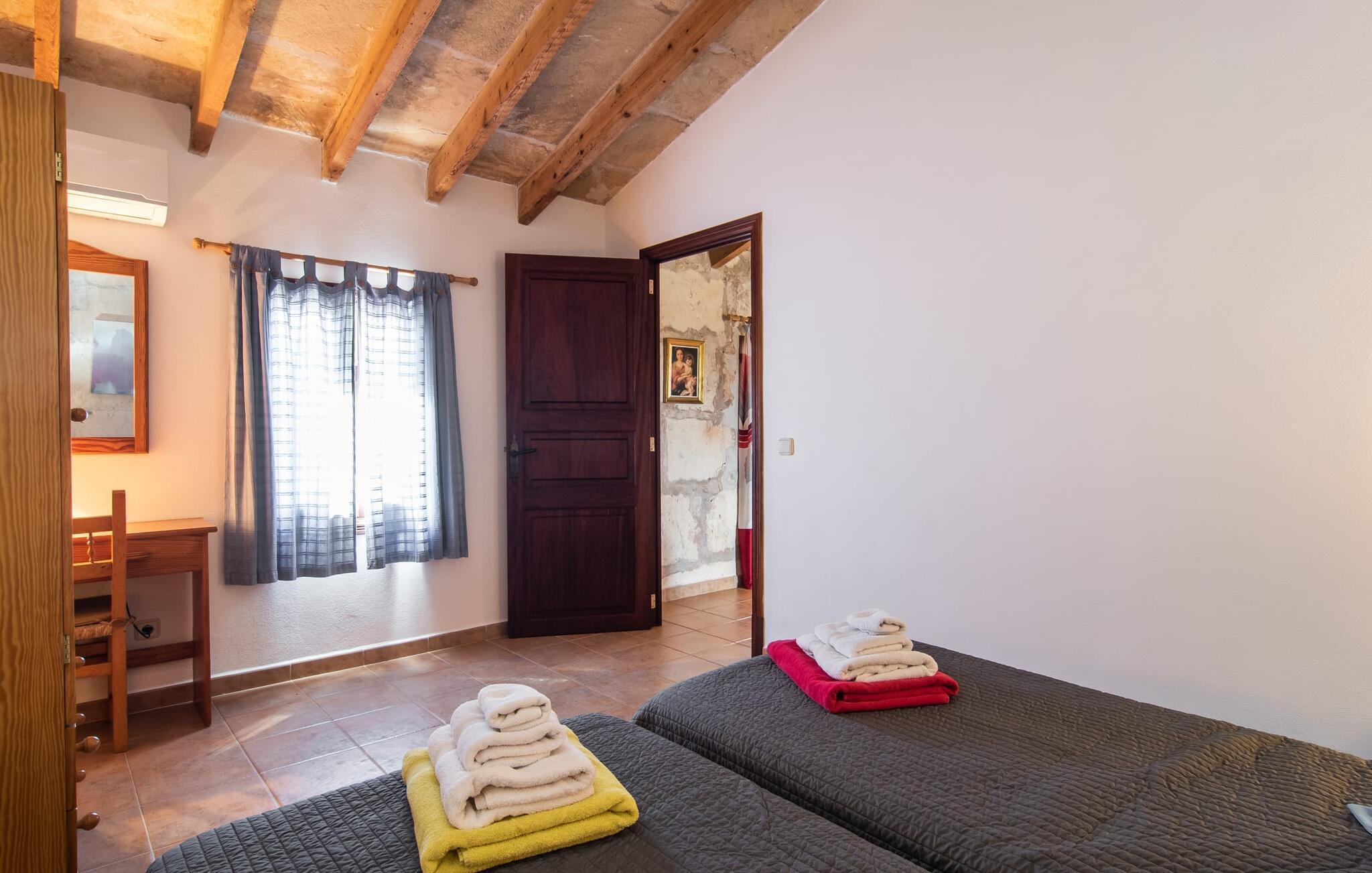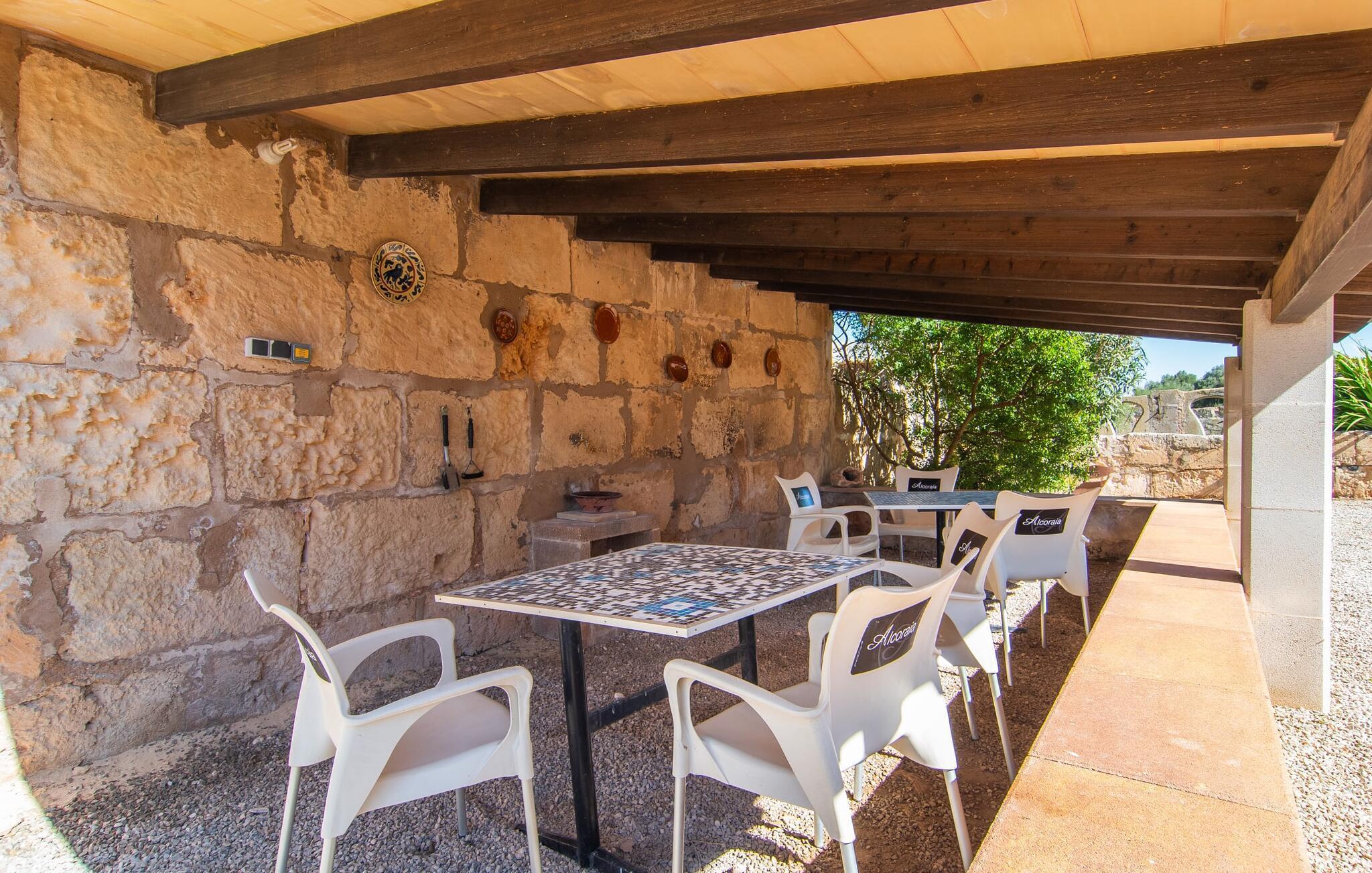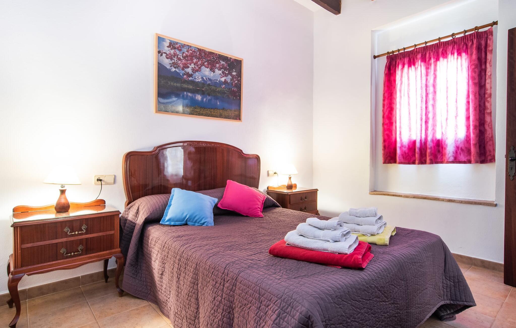 Mallorca-gården kendt som "Alcoraia" byder på rummelige omgivelser både indendørs og udendørs og ligger på en 130.000 m² stor grund. Dette er et Fincallorca feriehus. Udendørsarealer omfatter omfattende rullestensområder og terrasser, suppleret med palmer og flere siddemuligheder, herunder et spisebord til sociale sammenkomster og en grill til udendørs madlavning. Ejendommen har en hævet poolterrasse, der omgiver en lang, lavvandet pool og tilbyder en fantastisk udsigt og skyggefulde områder til afslapning. Indenfor præsenterer stuehuset en klassisk mallorcansk atmosfære med terracotta-fliser, synlige bjælkelofter og træmøbler, hvilket skaber en hyggelig atmosfære forstærket af muntre farver. Den åbne stue og spisestue er forbundet med det fuldt udstyrede køkken med en bred bue. I stueetagen er der to soveværelser og to badeværelser, mens den øverste etage byder på ekstra boligareal, yderligere to soveværelser og et rummeligt brusebad. Denne ejendom er særligt velegnet til feriegæster, der søger fred, privatliv og nem adgang til lokale faciliteter og havet. Stuehuset "Alcoraia" ligger på en meget stor, varieret grund med nogle steder en fantastisk udsigt. Det er i en landlig beliggenhed mellem Campos, Ses Salines og Santanyí. Det betyder, at forskellige indkøbsmuligheder hurtigt kan nås. Bugter som Cala Santanyi eller lange sandstrande som Es Trenc kan også nås hurtigt. Valgfri brug af klimaanlæg er inkluderet i prisen, når det bruges hensigtsmæssigt. I det sjældne tilfælde, at grænsen overskrides, skal der lægges penge i enheden.