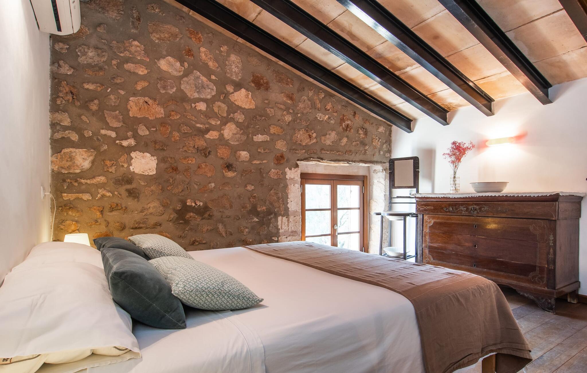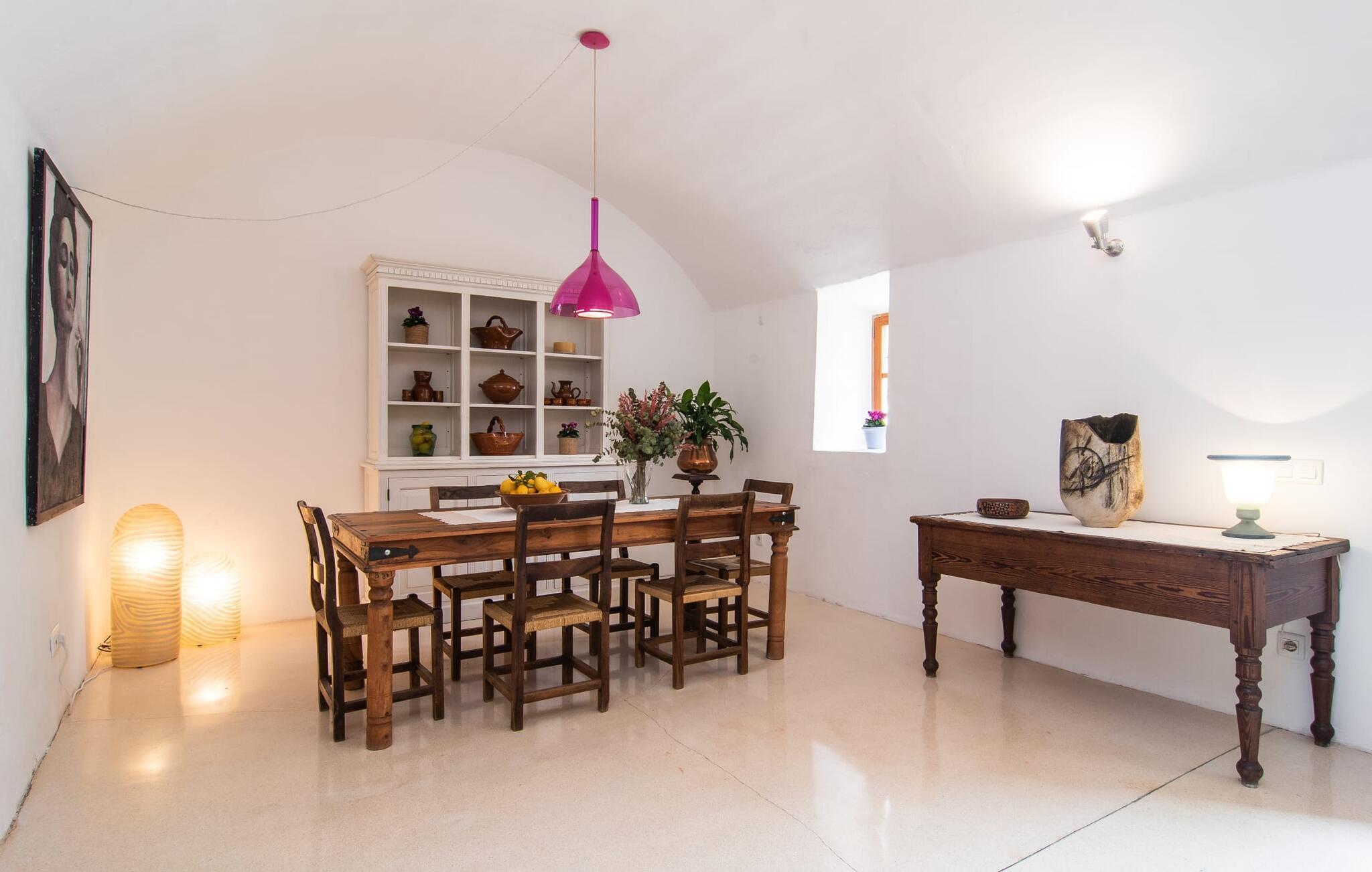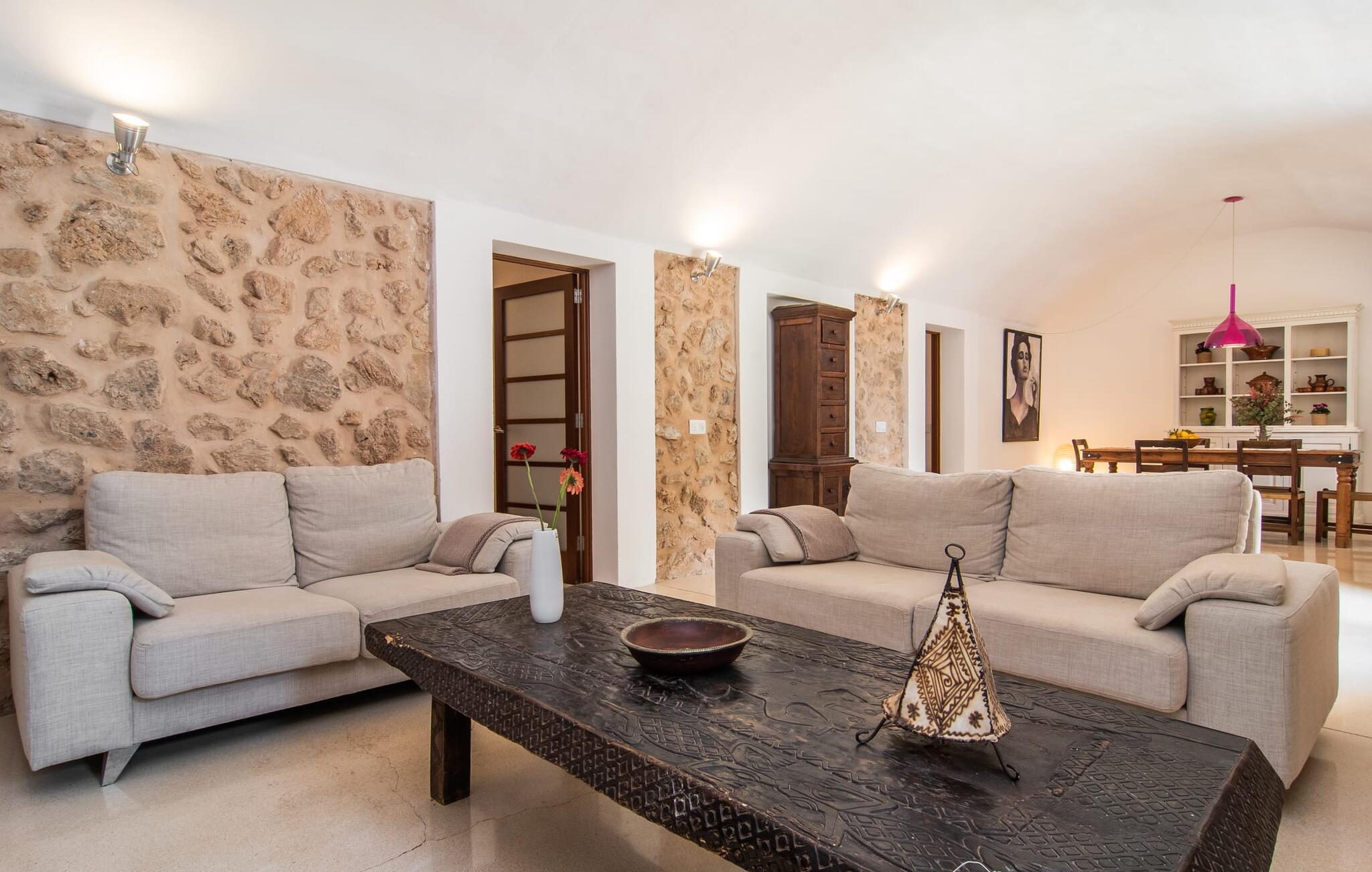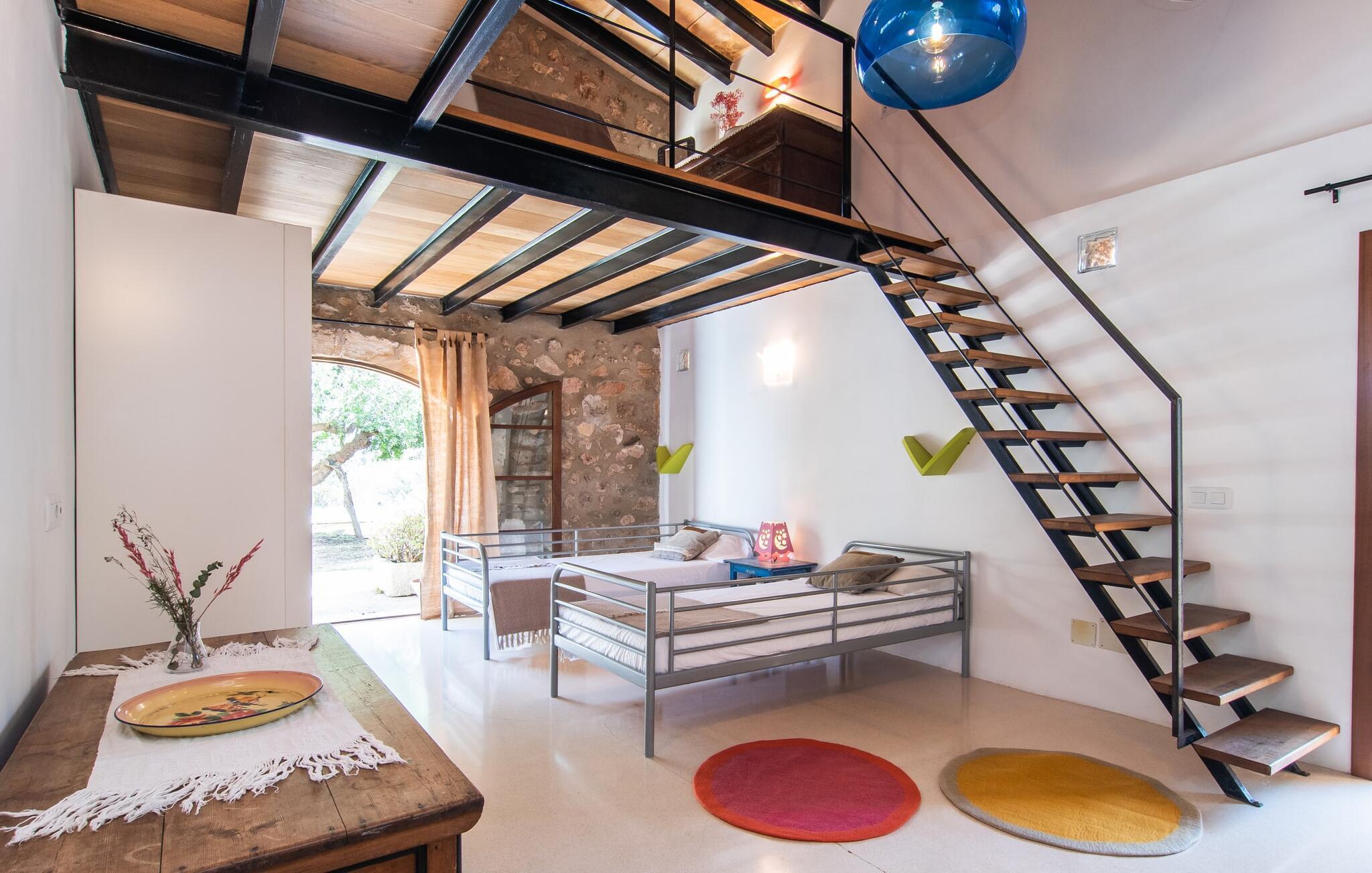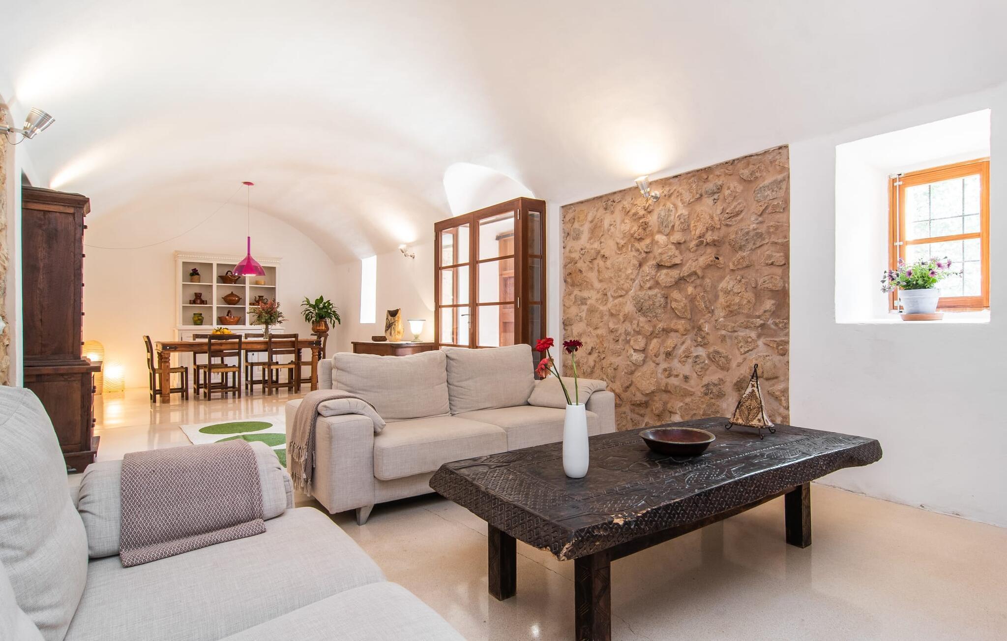 Hvordan forestiller du dig din ideelle ferie? Fred og ro? Natur og behageligt klima? Maksimal frihed og individuel rejse? Sport og kultur? Ingen masseturisme, men typisk autenticitet? Romantisk idyl og alligevel tæt på byen? Hvis ja, så vil vi med glæde byde dig og din familie velkommen til den ideelle villa "Alfaber". Den gamle, rustikke bygning blev omhyggeligt renoveret af ejerne, med ydermure lavet af stenbrud nænsomt bevaret. Her bor du i et dobbelthus, bevarer dit privatliv og nyder din egen have og pool. Beskyttet af talrige værdige oliventræer og palmer snor sig frodige blomstrende planter rundt om muren. I dette smukke landskab finder du mange attraktive siddepladser med delikate jernborde og stole i træernes naturlige skygge. Følg solen, når den bevæger sig hen over himlen, og find et solrigt eller skyggefuldt sted, der passer bedst til tidspunktet på dagen. Mens du allerede forvarmer grillen, kan børnene stadig svømme i din ret store 14 meter store swimmingpool. Når maden er klar, hopper børnene hurtigt ud i udendørsbruseren, og aftensmaden kan serveres. Når du er færdig, er det måske det rigtige tidspunkt for en fodboldturnering sammen. Når de yngre gæster allerede er i seng, kan du nyde den dyrebare tid for to i landlig fred og ro med et glas god mallorcansk rødvin. Dette er et Fincallorca feriehus. Og når din aften langsomt slutter, så træd ind i det overraskende moderne interiør i den smukke villa. Et smukt åbent område med hvælvet loft og det fritlagte murværk afslører alderen på det totalrenoverede hus. Hvælvingen er malet lys hvid, og det funktionelle område forbinder opholds- og spiseafdelingen. Opholdsstuen har pejs, moderne fladskærms-tv og lyse sofaer. På den anden side af rummet er en spisestue med møbler i vintage-stil. En typisk spansk gyngestol og en topmoderne designerlampe understreger det overordnede vellykkede samspil mellem modernitet og tradition, som kan mærkes i hvert hjørne af huset. For eksempel i det fuldt udstyrede køkken, som samtidig er reduceret til det væsentlige. Dette hjem kræver ikke et køkken af høj kvalitet for at give dig den funktionalitet, du har brug for til en afslappende ferie. Det enkelt indrettede køkken byder på opvaskemaskine, stort køle-fryseskab, gaskomfur, kaffemaskine og meget mere. En lille passage fører til det store soveværelse i maisonette-stil. I det uformelle nederste område er der to enkeltsenge til børn. En metaltrappe med trætrin fører til galleriet, hvor der er et mastersoveområde med en king-size seng og et smukt skriveområde. Også her vil du blive overrasket over den spændende kombination af moderne og antikke elementer med et lidt alternativt præg. Takket være den åbne sovefløj er huset ideelt til en familie på fire, men også attraktivt for et par, der ikke ønsker at blive begrænset af pladsen. Apropos tiltrækningskraft: Det er essensen af denne region omkring den charmerende lille by Sant Llorenc - idylliske landskaber og meget god infrastruktur er karakteristiske træk ved den nordøstlige del af øen. I en by kun 1 km væk kan du gøre dine daglige indkøb i supermarkederne, købe friskbagt varer fra bageriet og afslutte denne morgenudflugt med en "hurtig" Café Cortado i en af de caféer, der er populære blandt de lokale. Denne lille by ligger cirka halvvejs mellem Manacor og Artà - begge landsbyer er omkring 10 km væk. I den maleriske by Artà er der et smukt marked om tirsdagen, hvor du kan købe mallorcanske specialiteter og friske produkter til din grillaften eller bare nyde senere i det hyggelige opholdsområde efter dit individuelle valg i denne smukke villa. Udover familievenlige bademuligheder byder de smukke lokale strande også på talrige vandsportsaktiviteter, som udover muligheden for cykel- og vandreture også kunne appellere til jer som sportsentusiast eller par. Valget er op til dig - og du træffer et godt valg, fordi du har booket villaen "Alfaber". Den fortryllende villa "Alfaber" er den perfekte destination for en familie med to børn, der drømmer om en afslappende ferie i et typisk mallorcansk landsted med en meget stor pool og en uberørt have. Denne moderne villa har en rolig beliggenhed nær boligområdet Sant Llorenc, hvor du finder forskellige indkøbsmuligheder samt caféer og restauranter. Der er smukke sandstrande, såsom Cala Bona eller Costa de los Pinos, omkring 10 km væk.