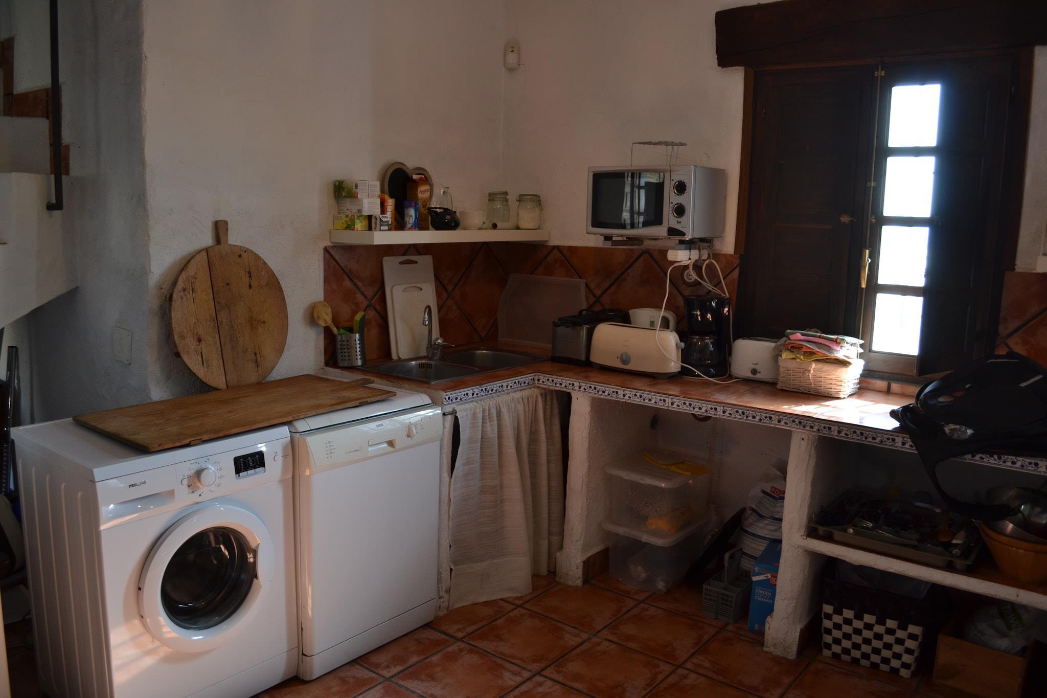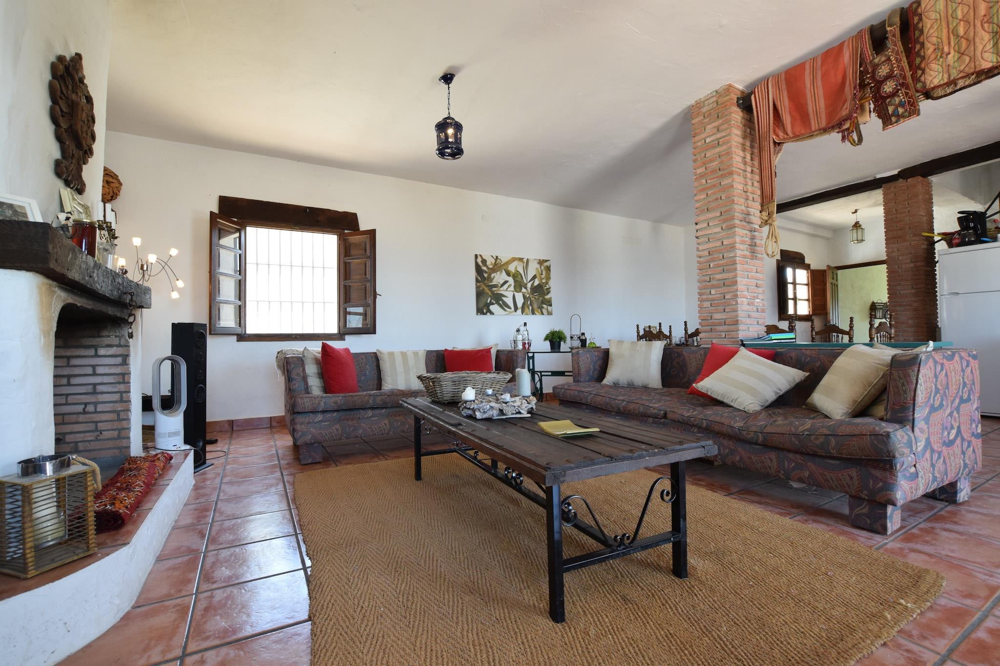 Rummeligt andalusisk tilflugtssted Oplev charmen ved dette feriehus i andalusisk stil beliggende i Almogías naturskønne bakker. Med fire soveværelser og plads til op til 10 gæster er dette hjem perfekt til familier eller grupper af venner, der søger en fredelig flugt. Slap af på terrasserne eller ved den private pool, mens du nyder panoramaudsigten over Montes de Málaga og naturparkerne El Torcal. Liggestole inviterer dig til at slappe af, og de rummelige opholds- og spiseområder giver rigelig plads til måltider, spil eller fælles stunder. Udforsk det lokale liv Det omkringliggende område er ideelt for naturelskere og kæledyrsejere. Tag afslappede gåture langs stier, der går forbi lokale gårde, hvor geder og får ofte strejfer, hvilket skaber en unik naturoplevelse. Den nærliggende landsby Casabermeja, kun 15 minutter væk i bil, byder på restauranter, barer, butikker og et apotek. For eventyrlige udflugter, vandre El Chorro-stierne eller den berømte Camino del Rey, begge tilgængelige inden for en kort køretur. Gæster med kæledyr vil sætte pris på det udendørs rum og muligheden for at udforske de naturskønne omgivelser sammen. Komfort og bekvemmelighed Hjemmet omfatter fuldt udstyrede køkkener, private badeværelser i hvert soveværelse, grillfaciliteter og rigelige terrasser med skyggefulde områder. Parkering er tilgængelig på stedet, og poolen er åben fra april til september.