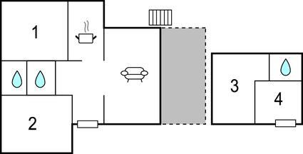 Badeværelse (nr. 2) - WC. Varmt og koldt vand. Bruser
