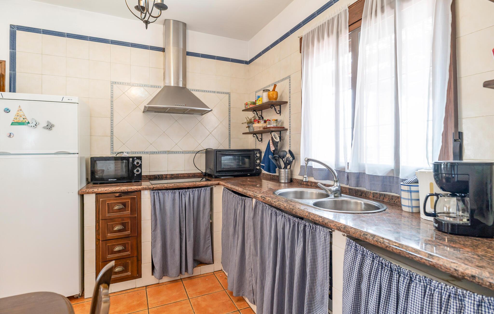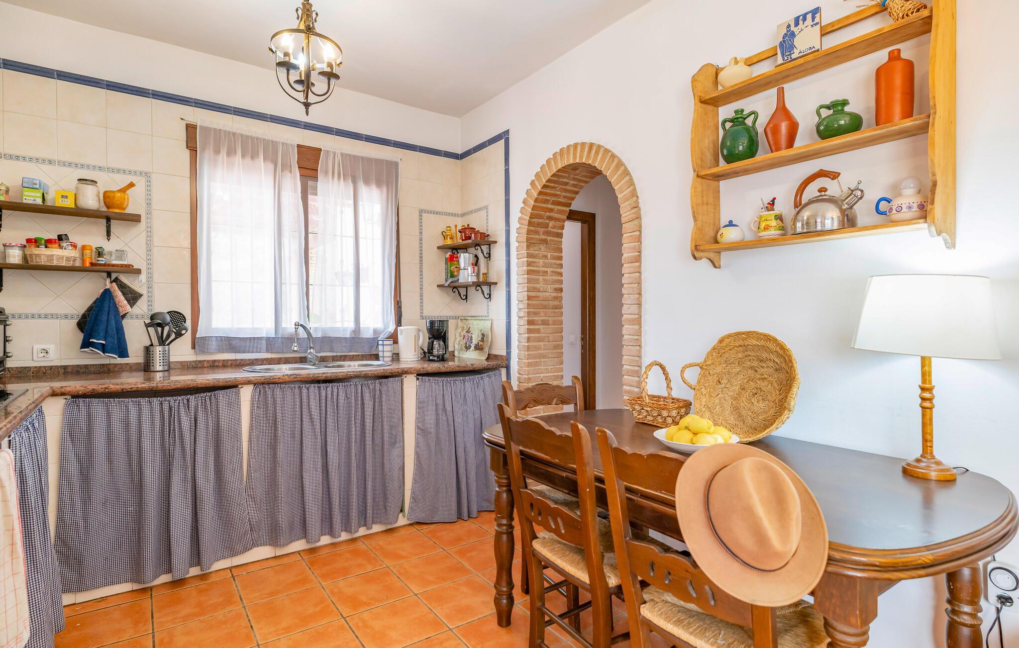 Dette charmerende feriehus med traditionelt præg ligger lige ud til et idyllisk landskab, hvor I kan sætte hverdagen på pause med familien og nyde naturens fred og ro. Gør lækre tapas klar i landstedets køkken og glæd jer til rustik hygge, når I tænder brændeovnen og sætter jer til rette i de hyggelige sofaer til en spilleaften.
