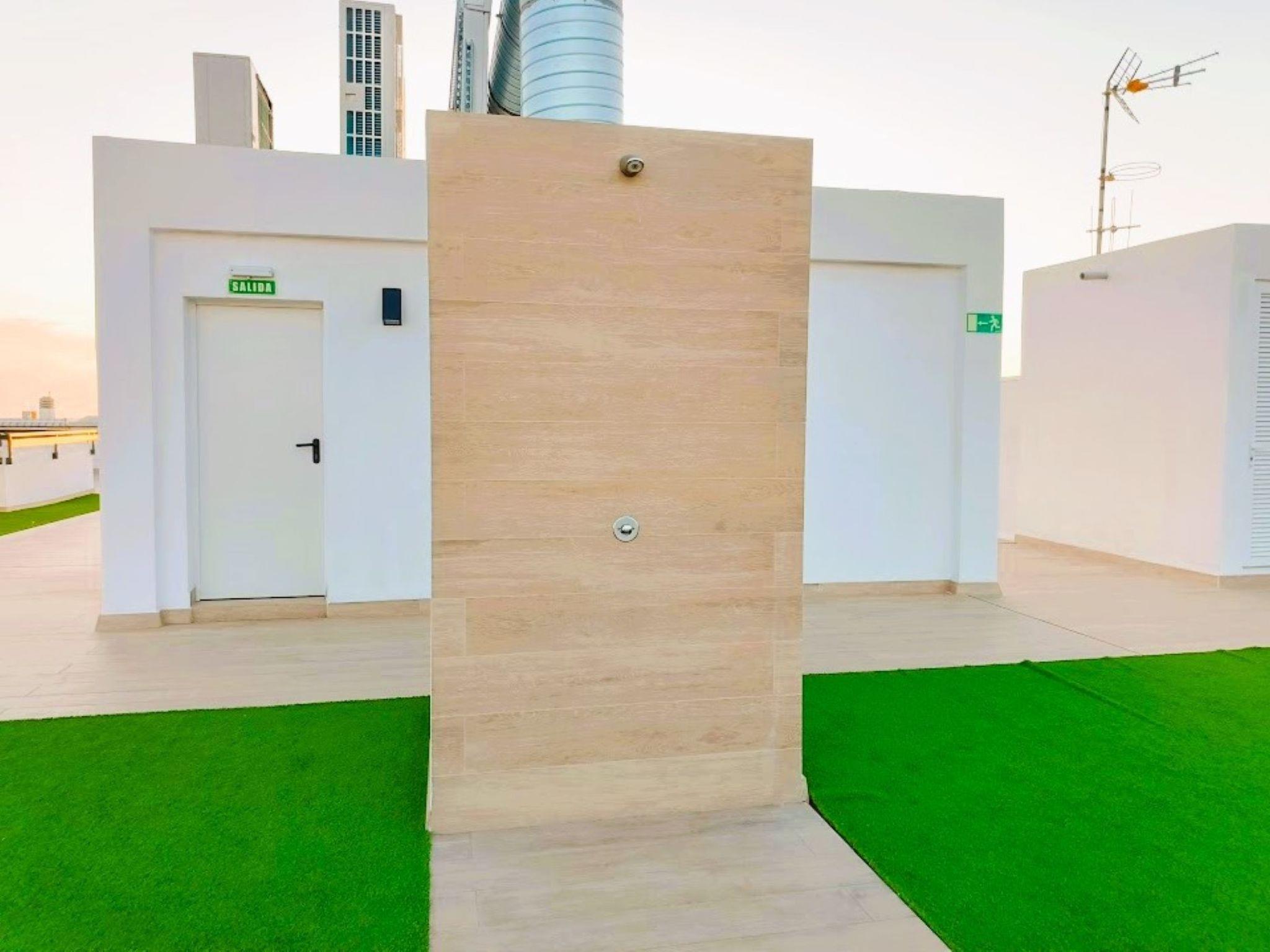Enjoy this modern flat located only a few steps from the sea and with small swimming pools on the roof terrace where you can relax and sunbathe.