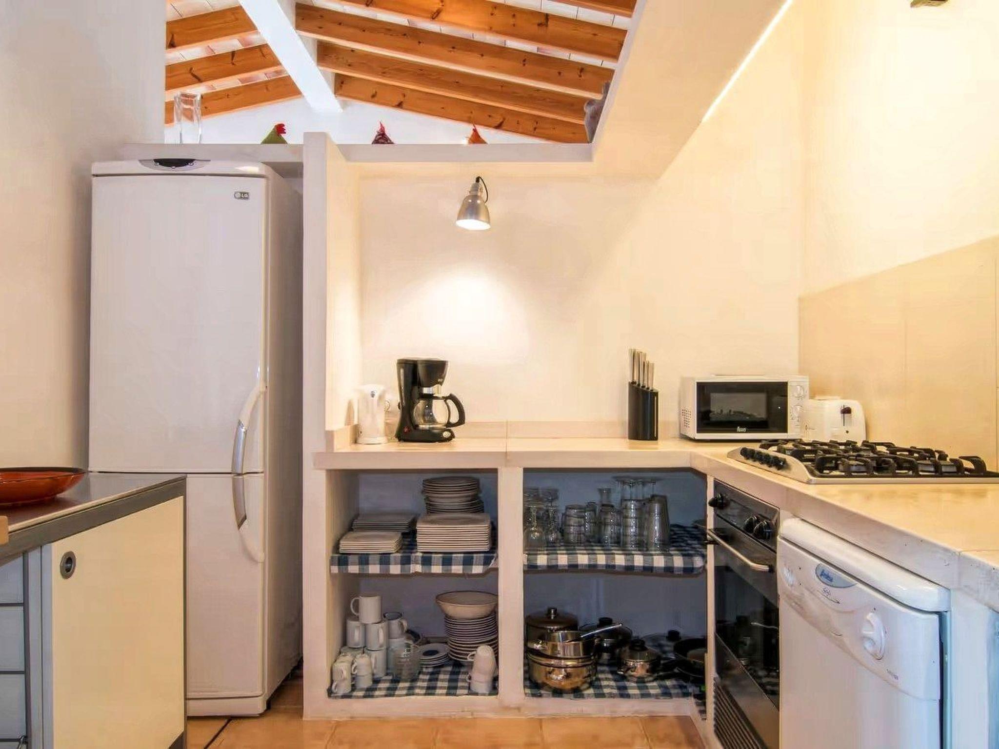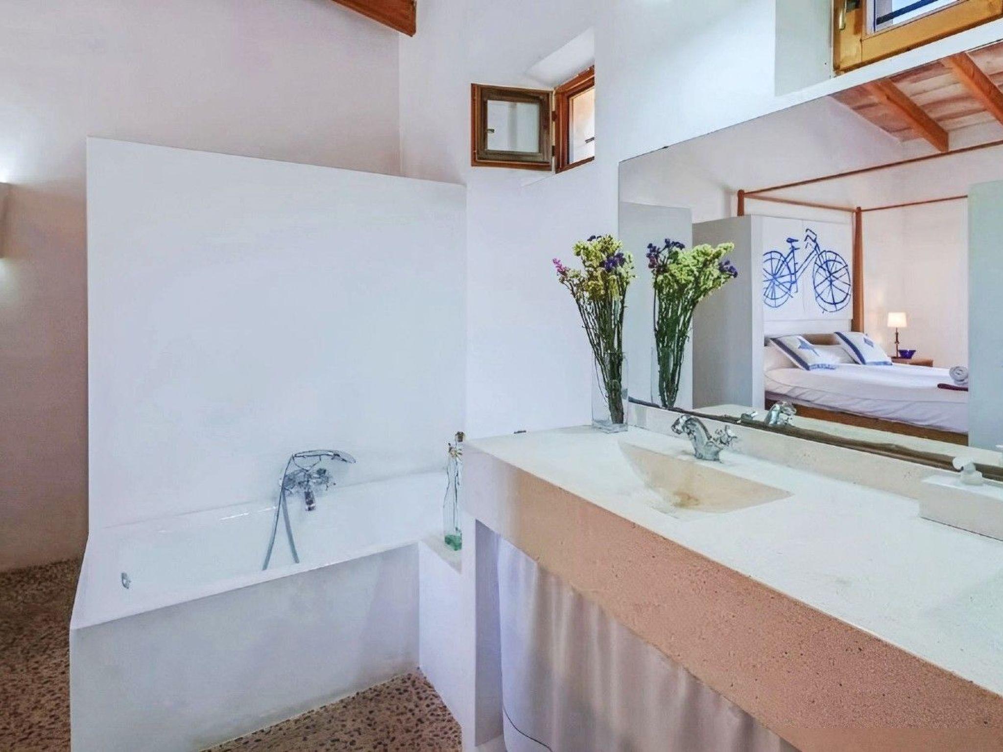 On the north coast between Alcudia and Artà, just above the fishing village of Colonia de Sant Pere, it is nestled into the mountainside of Mont Ferrutx. The fact that it is only 1 km as the crow flies from the sea and the beach, and the combination of Mallorcan architectural style with practical furnishings, make this property a true dream vacation home.
