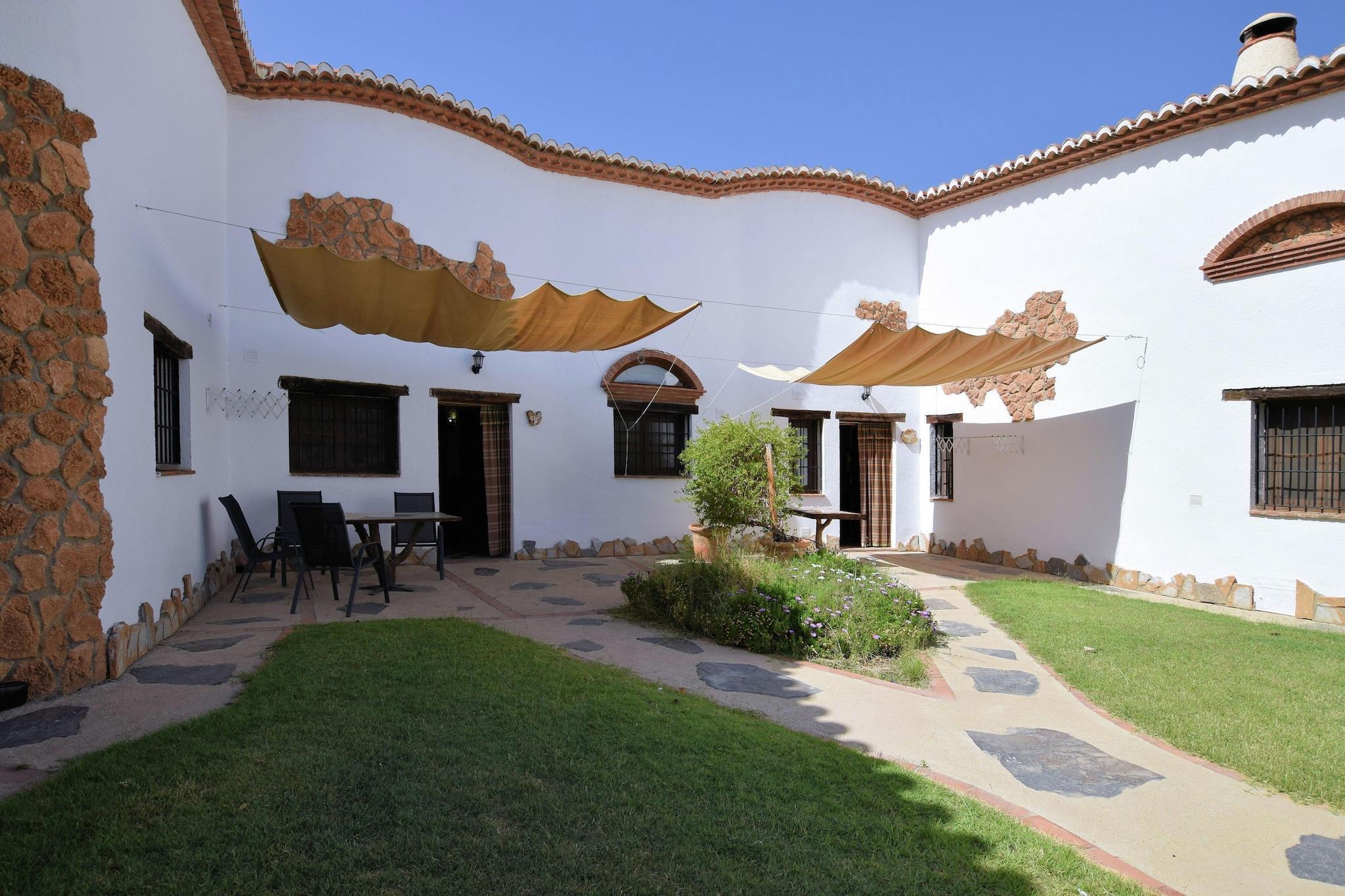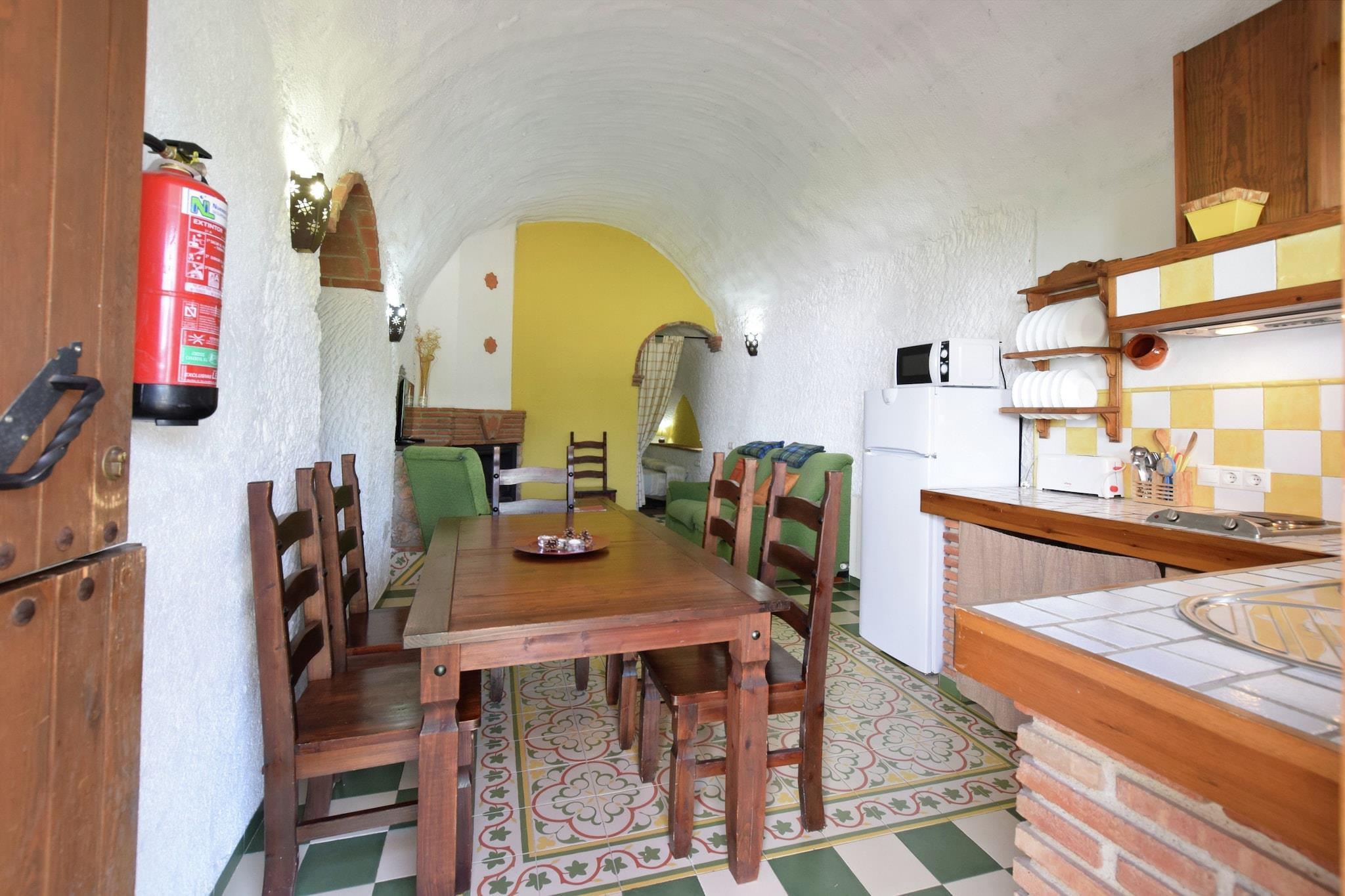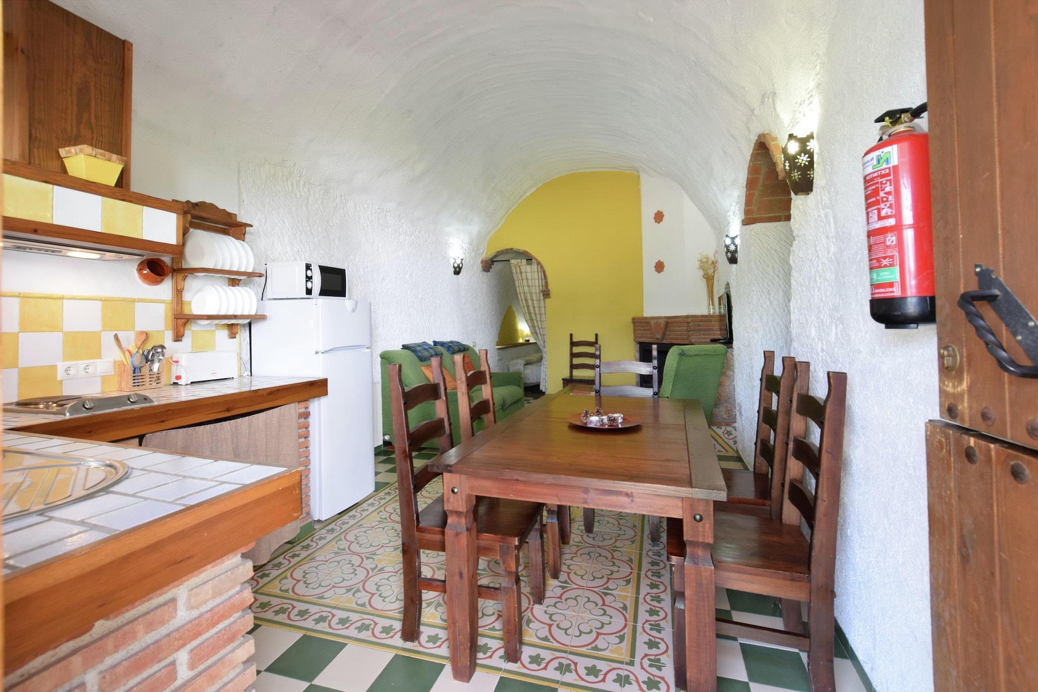 I Guadix-regionen i Andalusien i Spanien kan dette grottehus med plads til 4 gæster have 2 dejlige soveværelser. Det er velegnet til en lille familie eller til par, der ønsker at feriere sammen. Du kan gå på vandreture og cykleudflugter på mountainbikes til nærliggende områder. De nærliggende steder at besøge er Granada, Alhambra, Sierra Nevada og strendene i Almería. Kendt som Hammam Caves Abuelo José, har det 9 huler. Hulerne er lavet af jord og har varmeisolering. Parken har en swimmingpool og en grillzone. Der findes arabiske bade. Bycentrum og generelle forsyninger er 1 km væk; restauranter og natteliv er 3 km væk. Den nærmeste større lufthavn er Málaga lufthavn, der ligger i en afstand af 70 KM. Der er maksimalt tilladt 1 kæledyr mod et gebyr på 20 EURO for opholdet.