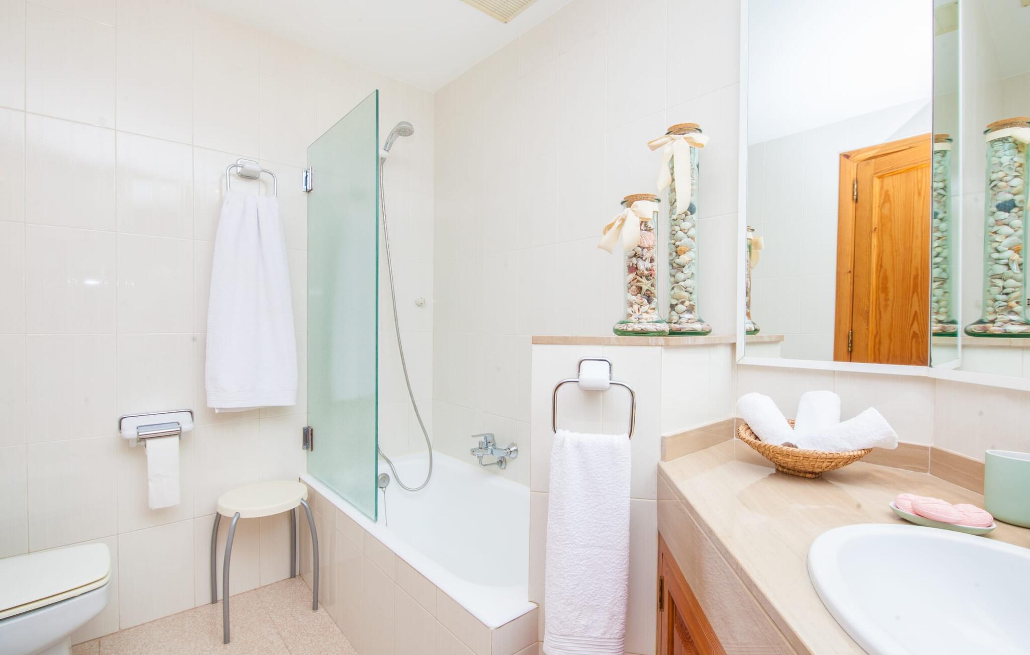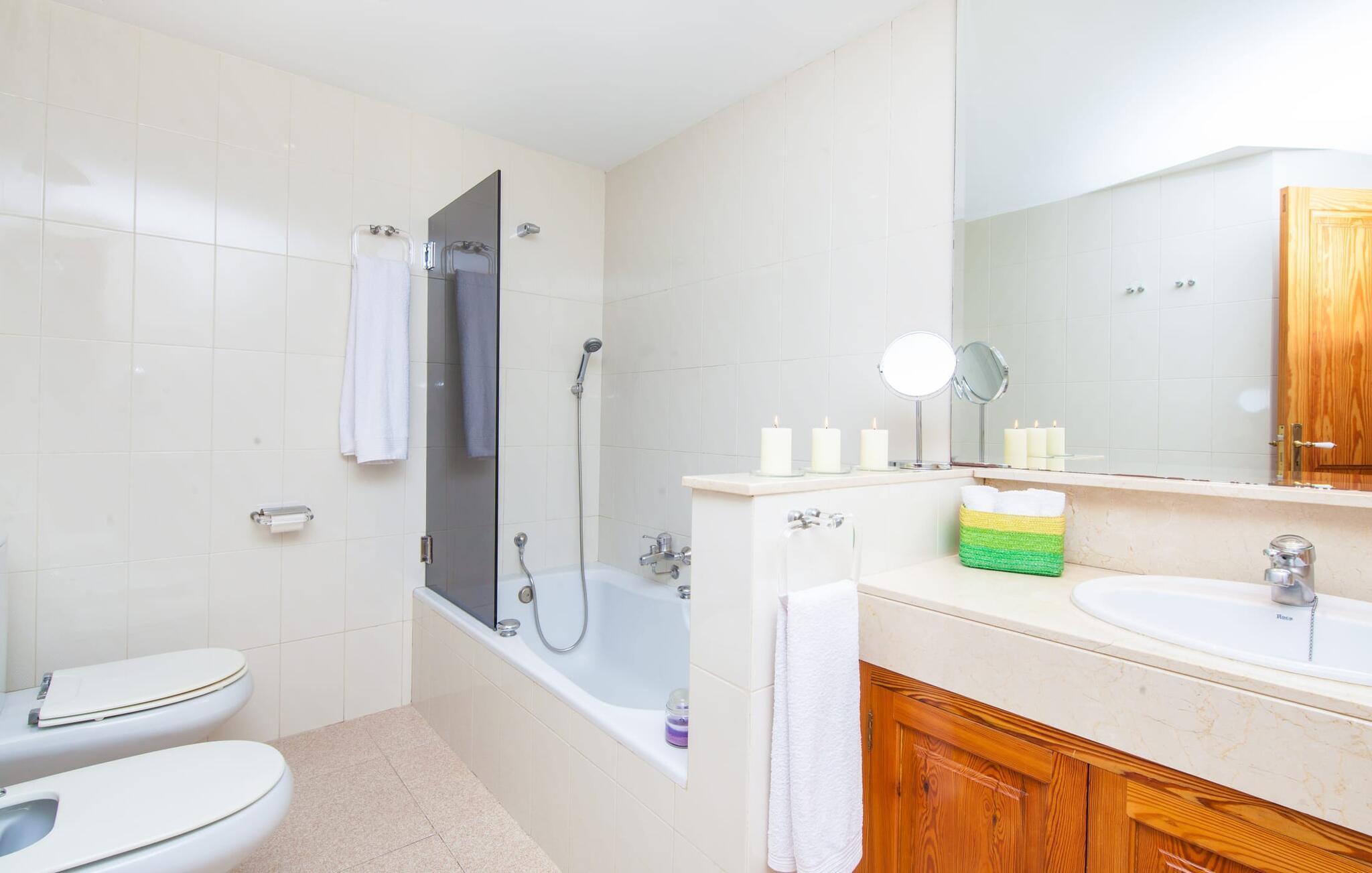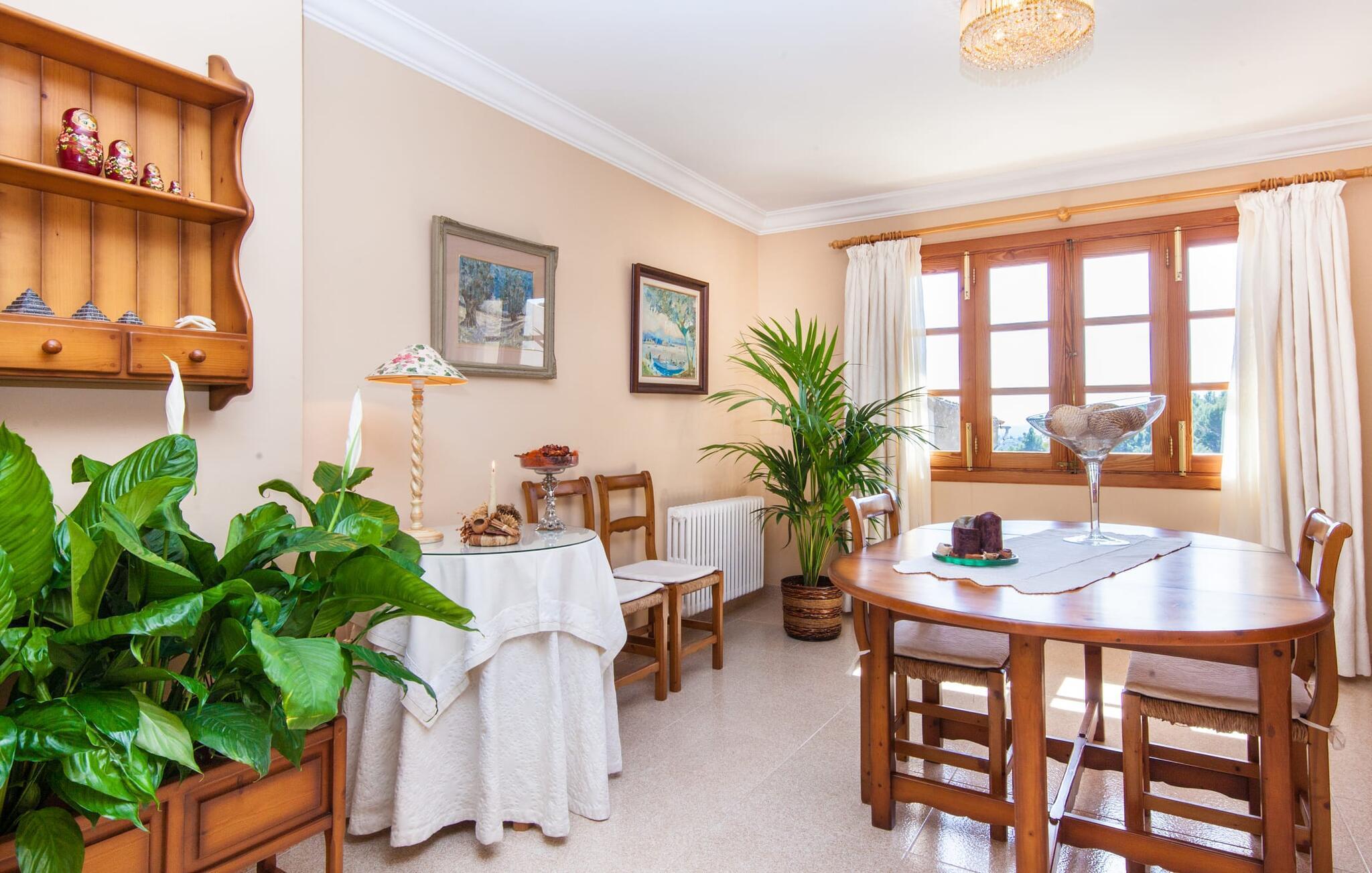 Hvis du elsker det rolige liv og naturen, men også foretrækker at lade bilen stå på ejendommen fra tid til anden, når du hurtigt skal i supermarkedet eller restauranten, så er Villa “Ca na Rosa” dit perfekte feriehus! Det smukt vedligeholdte lille hus for op til syv personer blev bygget i udkanten af det lille feriested Selva på en bakke i det landlige nord på øen. På trods af nærheden til naboerne byder det på meget privatliv. I den kærligt anlagte have med frodigt grønt og tykke hække, der beskytter dig mod nysgerrige blikke, kan du altid køle af i poolen, som også har en blid trappe. Så sug lidt D-vitamin på en af de komfortable liggestole og lad blikket vandre over de smukke grønne omgivelser bag dine solbriller. Et særligt højdepunkt er den separate overdækkede terrasse lige ved siden af poolområdet: de komfortable havemøbler inviterer dig ikke kun til ingenting, det store træbord inviterer dig også til at spise og blive hængende om aftenen og ud på natten. Dette er et Fincallorca feriehus. "Ca na Rosa de Selva" giver et lyst og venligt indtryk indeni med klassiske møbler af høj kvalitet. Talrige vinduer lukker det typiske mallorcanske lys ind, mens valget af hvide eller pastelfarvede cremefarver på væggene bidrager til den hjemlige atmosfære. Her mærker du tydeligt de kærlige detaljer i indretningen. I alle rum hænger forskellige kunstværker i hånden på væggene, lige fra sarte skitser til sort/hvide fotografier, og dekorationsgenstandene er nøje udvalgt med stor sans for stil. Opholds- og spiseområdet er i åbent plan og kun adskilt af en glasdør. I stuen finder du en lokkende polstret sofa med masser af flotte hynder samt matchende lænestole og en skammel til at sætte fødderne op. Perfekt til at se en dejlig film om aftenen eller chatte med venner over et glas vin og flimren af stearinlys ved den dekorative pejs - simpelthen vidunderligt! Lige ved siden af står et spisebord i træ, hvor du kan nyde de kulinariske lækkerier tilberedt i det højkvalitets og rummelige køkken. Men du kan også blive i køkkenet, for der er også et stort spisebord og de fleste føler sig alligevel bedst tilpas i køkkenet. Intet står i vejen for en solid morgenmad udendørs: Fra køkkenet har du direkte udgang til en stor, solrig terrasse. Omgivet af duften af rosmarin i smukke små terracotta gryder, kan du ikke kun spise herligt - en spændende bog i en af liggestolene kan måske også vække din lyst. Alle soveværelser understreger kun det helhedsindtryk, du har af dette rækkehus: De er ikke kun smukt lyse og med en vidunderlig udsigt over den omkringliggende natur, men også meget rene, velholdte og kærligt designet. Badeværelserne er ikke mindre imponerende: skinnende rene, velindrettede overalt, med store vinduer og udsøgt belysning. Dit feriehus ligger i udkanten af det maleriske feriested Selva på den nordlige del af øen. Den imponerende kulisse for den charmerende by med dens mange smukke gader, den store kirke ved Plaça Major og de mange smukke huse er Tramuntana-bjergene. Masseturismen har næsten ikke fået fat i Selva, så du kan stadig opleve et lille stykke autentisk mallorcinsk liv. Du må under ingen omstændigheder gå glip af det ugentlige marked om onsdagen, som indbyder til at slentre rundt - der finder du naturligvis frisk frugt, grøntsager og andre delikatesser, men også blomster, tøj og lokalt kunsthåndværk. Ønsker du et større udvalg af butikker, restauranter og caféer, skal du blot køre fra Selva til Inca – Mallorcas tredjestørste by ligger kun 6,5 km væk. Nordsiden af Tramuntana-bjergene byder på uberørt natur, som nemt kan nås til fods eller på cykel fra Selva. Stranden og havet kan nås på kun 35 minutter i bil i Alcúdia. I udkanten af den maleriske Villa Selva, i den nordlige del af Mallorca, kan du tilbringe en ferie på landet i den velholdte "Ca na Rosa de Selva" - og nyde alle de faciliteter, som et feriested har at byde på. Bygget på en lille bakke byder det lille hus på masser af privatliv og er den perfekte base for gåture ind i byen samt udforske de landlige omgivelser. Alcúdia-stranden ligger cirka 33 km væk med din udlejningsbil.