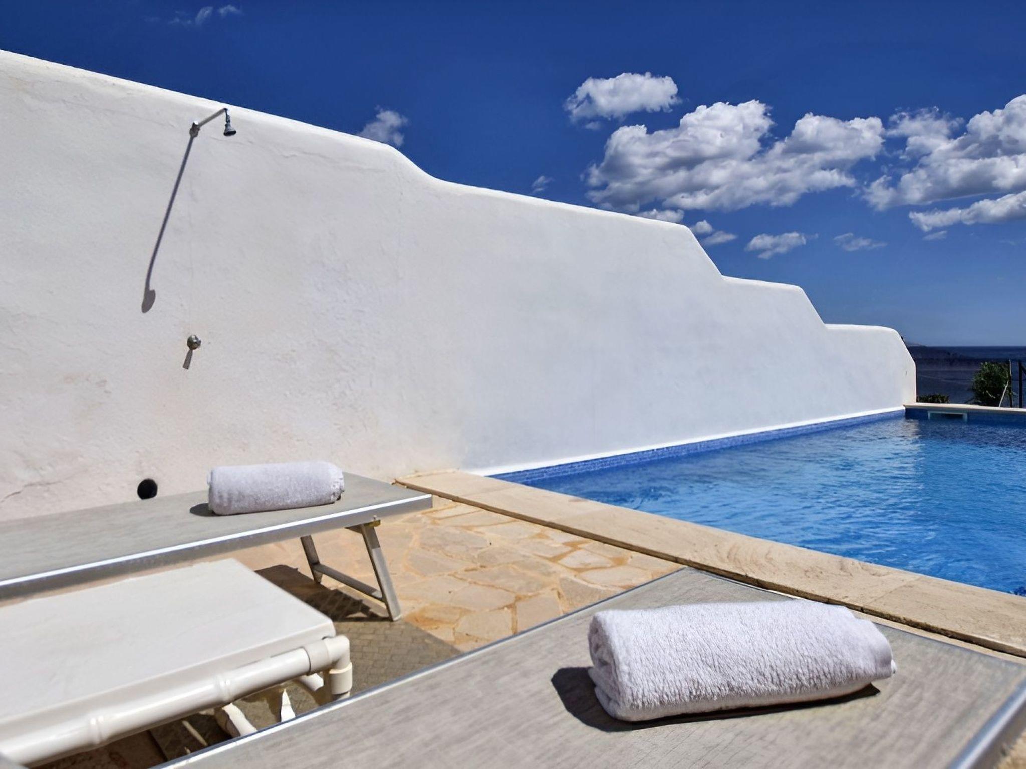 From the entrance you reach the spacious, bright and fully equipped kitchen and the living room with satellite TV, from here you can also enjoy amazing sea views! The living room leads to the cosy terrace with porch and dining table. Here on the left you will also find the 6 m x 5 m private pool (depth 0,80 m x 1,80 m, entrance by steps) to cool off. When you have reached this terrace, you know that the holidays are about to begin. .... Spectacular views, with the sea at your feet!