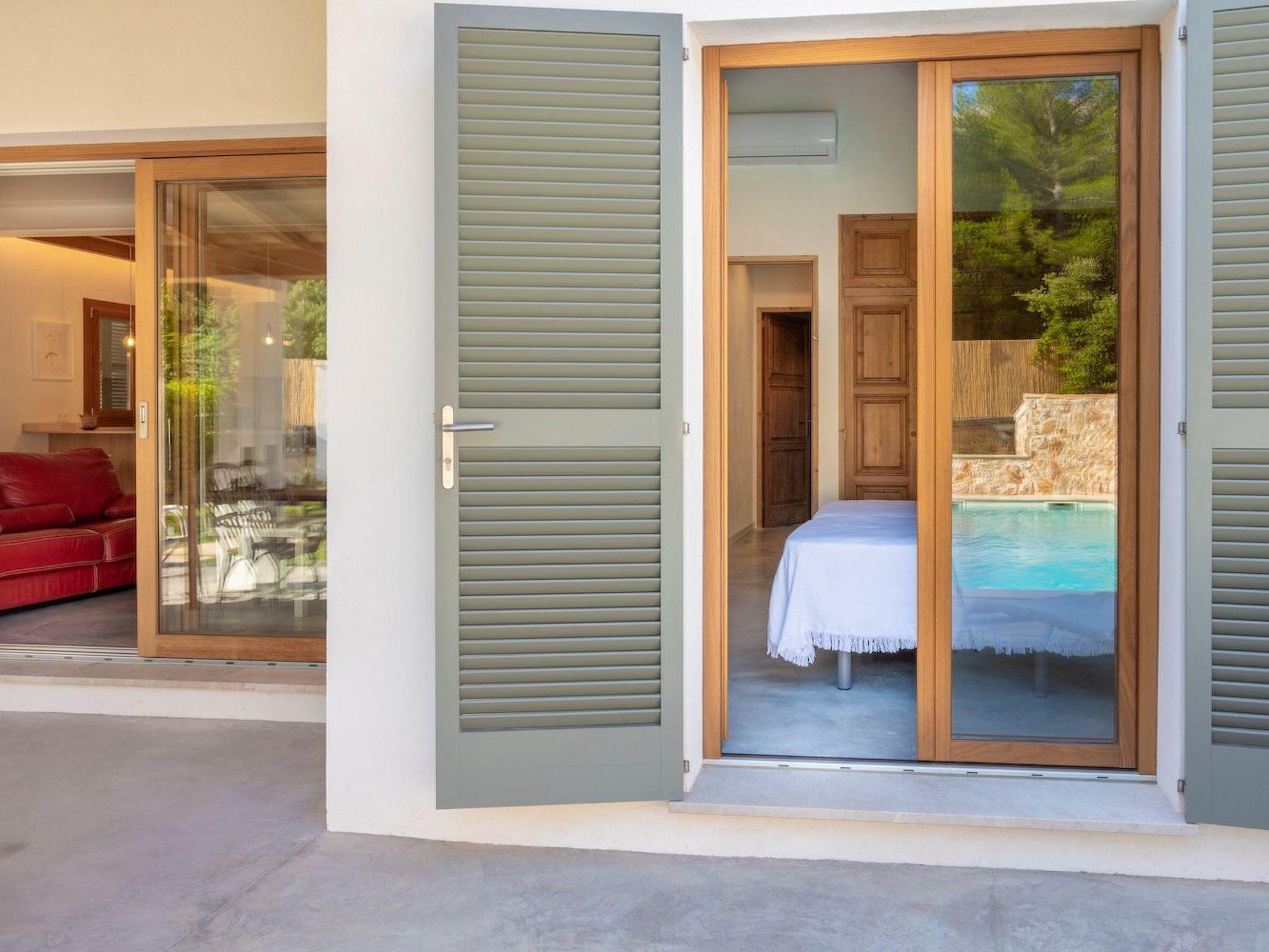 The house was renovated and completed in June 2022 using high quality materials and in compliance with new energy and environmental regulations. The interior is spacious and bright, with modern furnishings. All bedrooms are located on the ground floor (please note that there is a locked and inaccessible storage room on the upper floor). The living-dining room has a cosy sitting area with Smart TV and hot and cold air conditioning for pleasant evenings during the autumn or spring holidays or the hottest days of summer. The modern kitchen is equipped with appliances such as dishwasher and oven. There are three nice bedrooms, two bedrooms with single beds and another bedroom with a double bed and a bathroom en suite. There is another bathroom with shower. This is a perfect option for families who want to have their own private villa and pool but also have the beautiful bay of Cala Molins nearby, why not have it all?