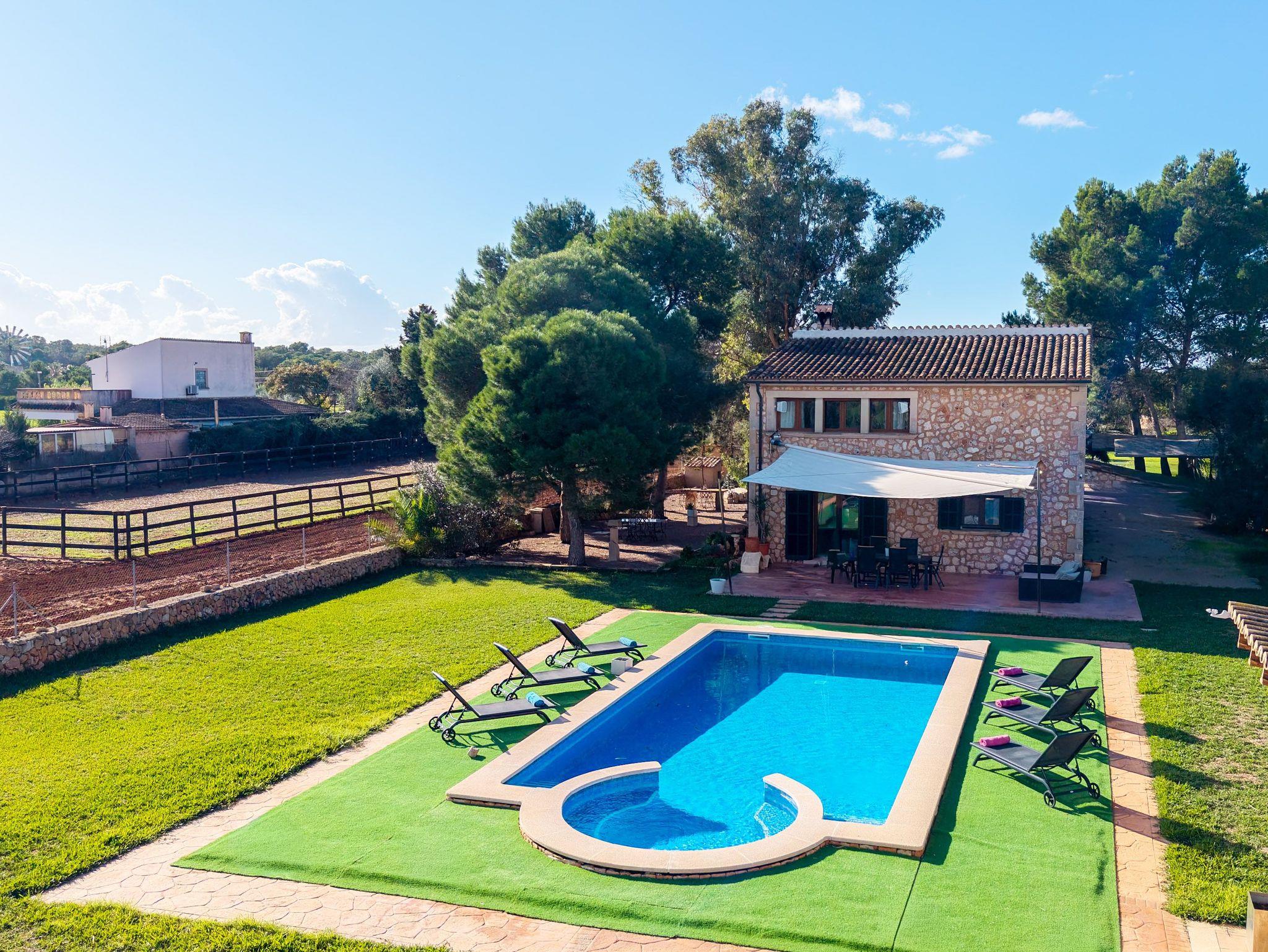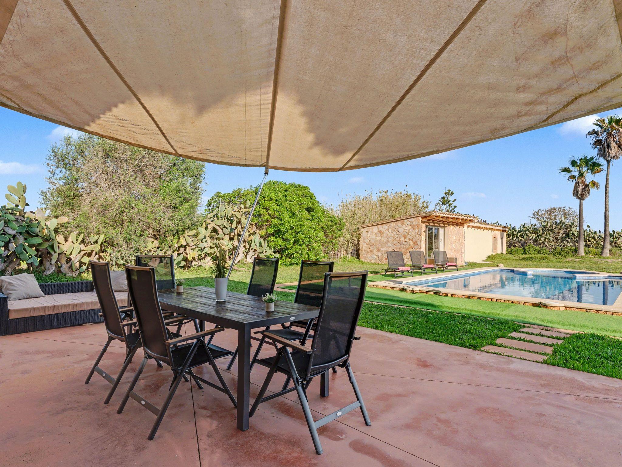 Ein mediterraner Rückzugsort, nur 1,4 km vom Naturstrand Es Trenc entfernt, umgeben von Ruhe und Natur. Die Villa verfügt über eine große Terrasse mit elektrischem Segel, eine Lounge unter den Pinien und einen großzügigen 5x11 m Pool mit stimmungsvoller Beleuchtung. Zudem können Sie sich im Innen-Whirlpool (münzbetrieben) entspannen oder den Grillbereich im Freien nutzen.