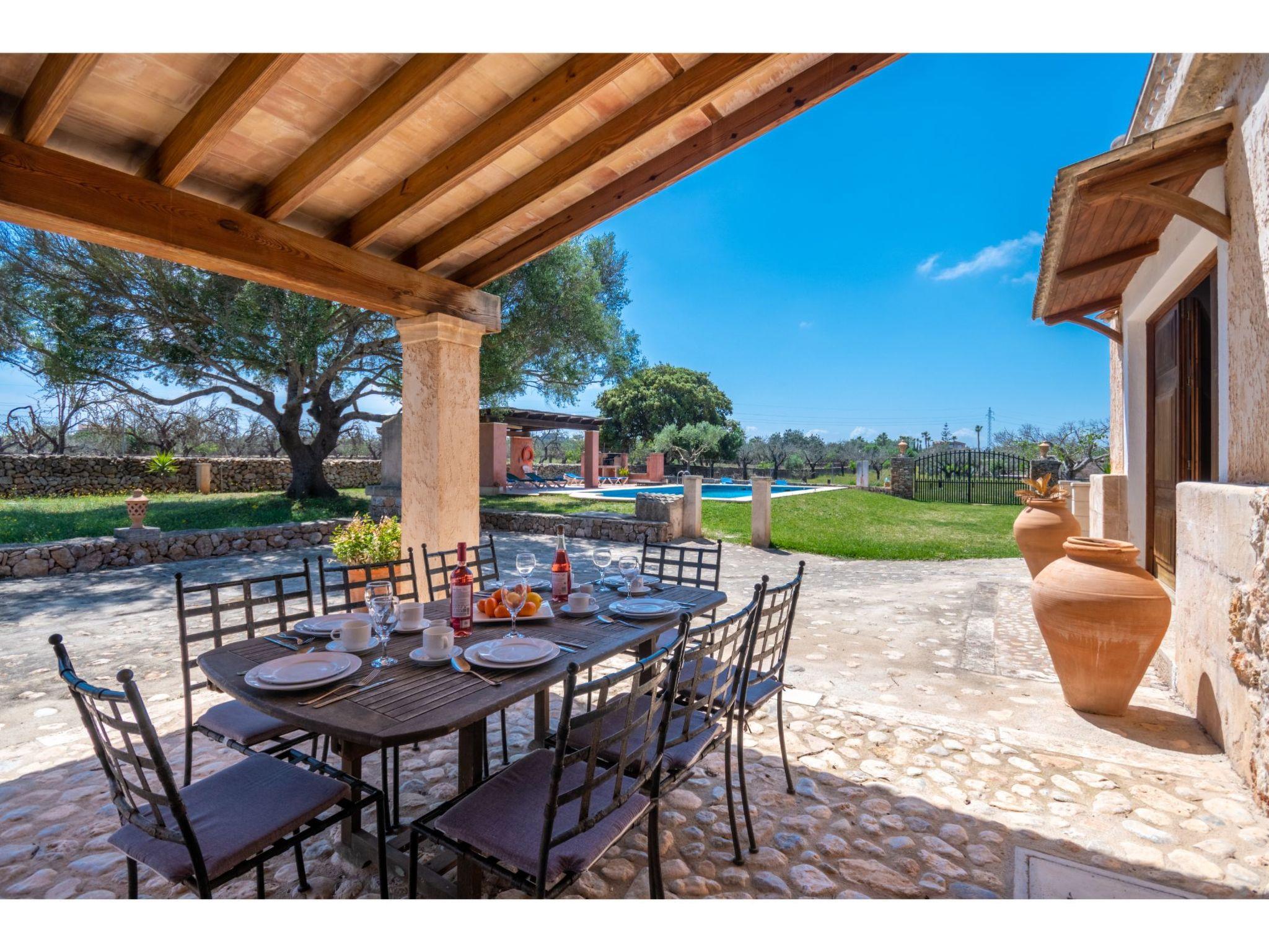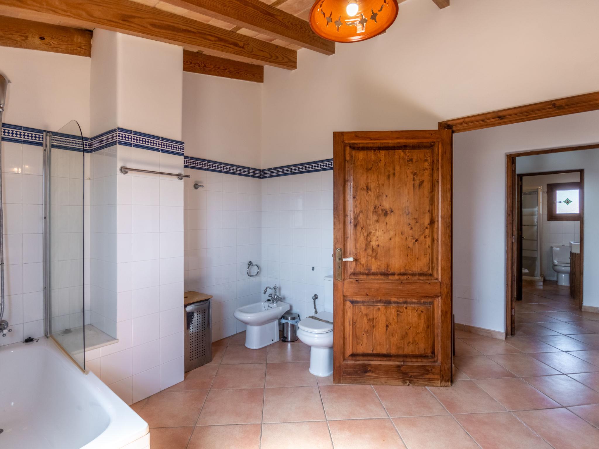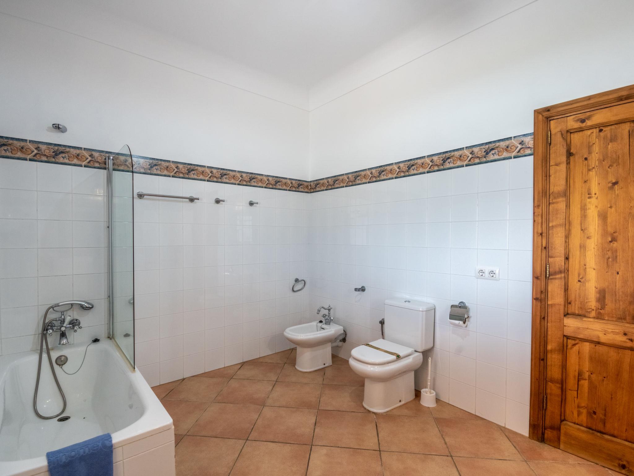 "Son Ulari Gran", 6-room house 360 m2 on 2 levels. Comfortable and antique furnishings: living/dining room with open-hearth fireplace, dining table and satellite TV. Dining room with open-hearth fireplace and dining table. Kitchen (oven, dishwasher, 4 ceramic glass hob hotplates, toaster, kettle, microwave, freezer, electric coffee machine). Bath/WC. Upper floor: 4 rooms, each room with 2 beds (90 cm, length 190 cm). Bath/WC, shower/WC. Electric heating, air-conditioning. Terrace 60 m2, 2 terraces roofed. Terrace furniture, barbecue, deck chairs. Facilities: washing machine, dryer, iron, children's high chair, baby cot, hair dryer. Internet (WiFi, free). Please note: non-smoking house. Maximum 1 pet/ dog allowed. ETV/16269