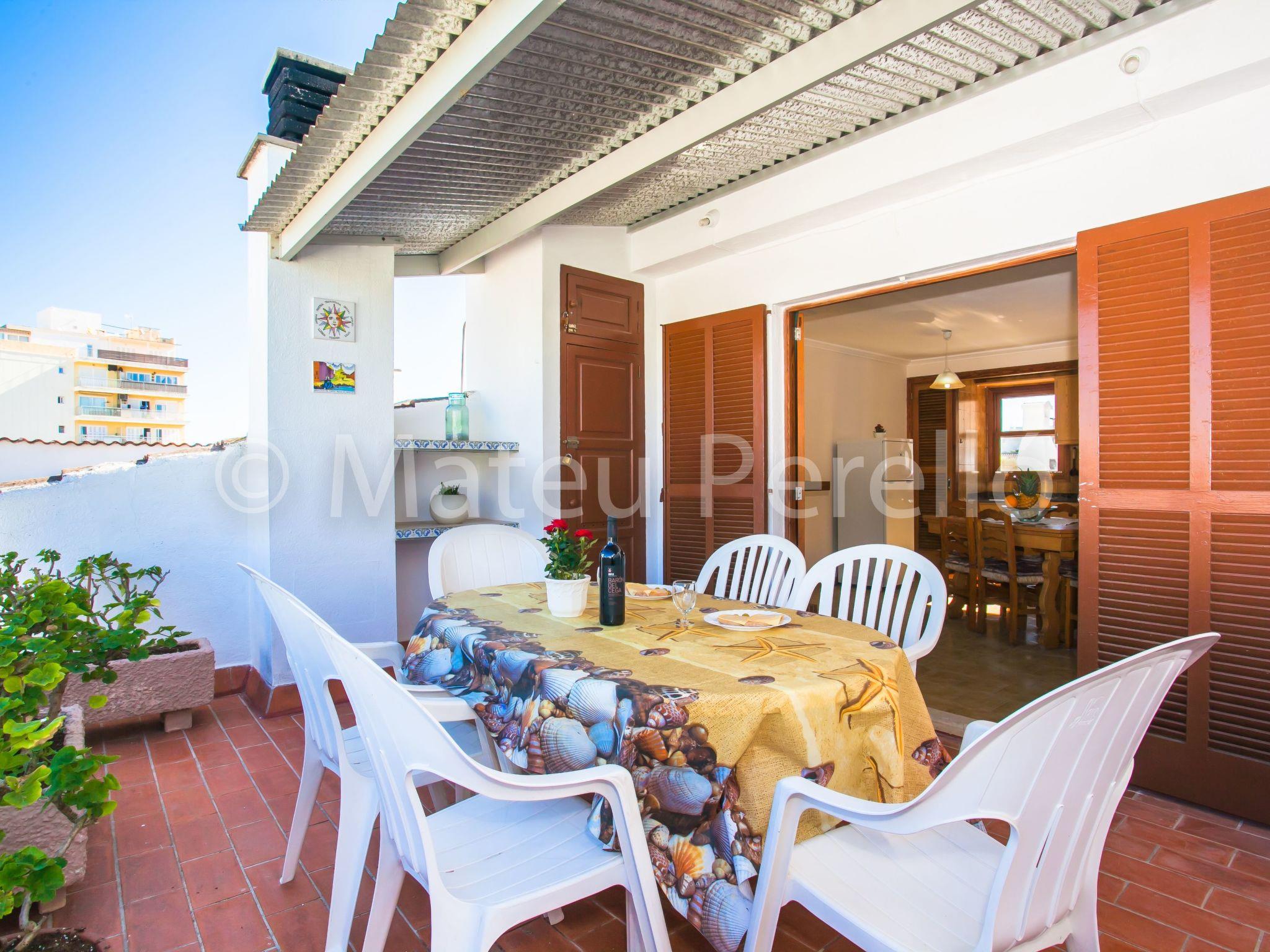 Orellana house is located on the first floor of a building located on a quiet street 200 m. from the sea in a residential neighborhood, away from the bustle own tourist areas, but close to downtown and the beach of Can Picafort. It is a functional apartment for 6 people. Comprising 3 double bedrooms with 1 double bed and 4 single beds, 1 bathroom with tub, a living room with TV and DVD. The kitchen is fully equipped with enough utensils and appliances to help you during your stay tasks, also a washing machine. Air conditioning in the corridor will help you to enjoy sleeping. Sunny balcony with outdoor furniture. It's perfect to enjoy a lovely breakfast or dinner, to read, chat or just get some fresh air for a while before bed. On the upper floor, which is accessed by the building's staircase, you can enjoy an exclusive picnic area with a barbecue and sunbeds for sunbathing. Also, a small kitchen and a summer dining room, a bathroom and laundry. Highly recommended for families.