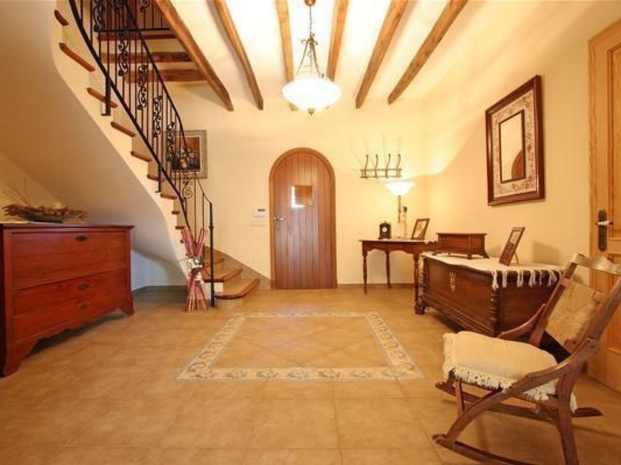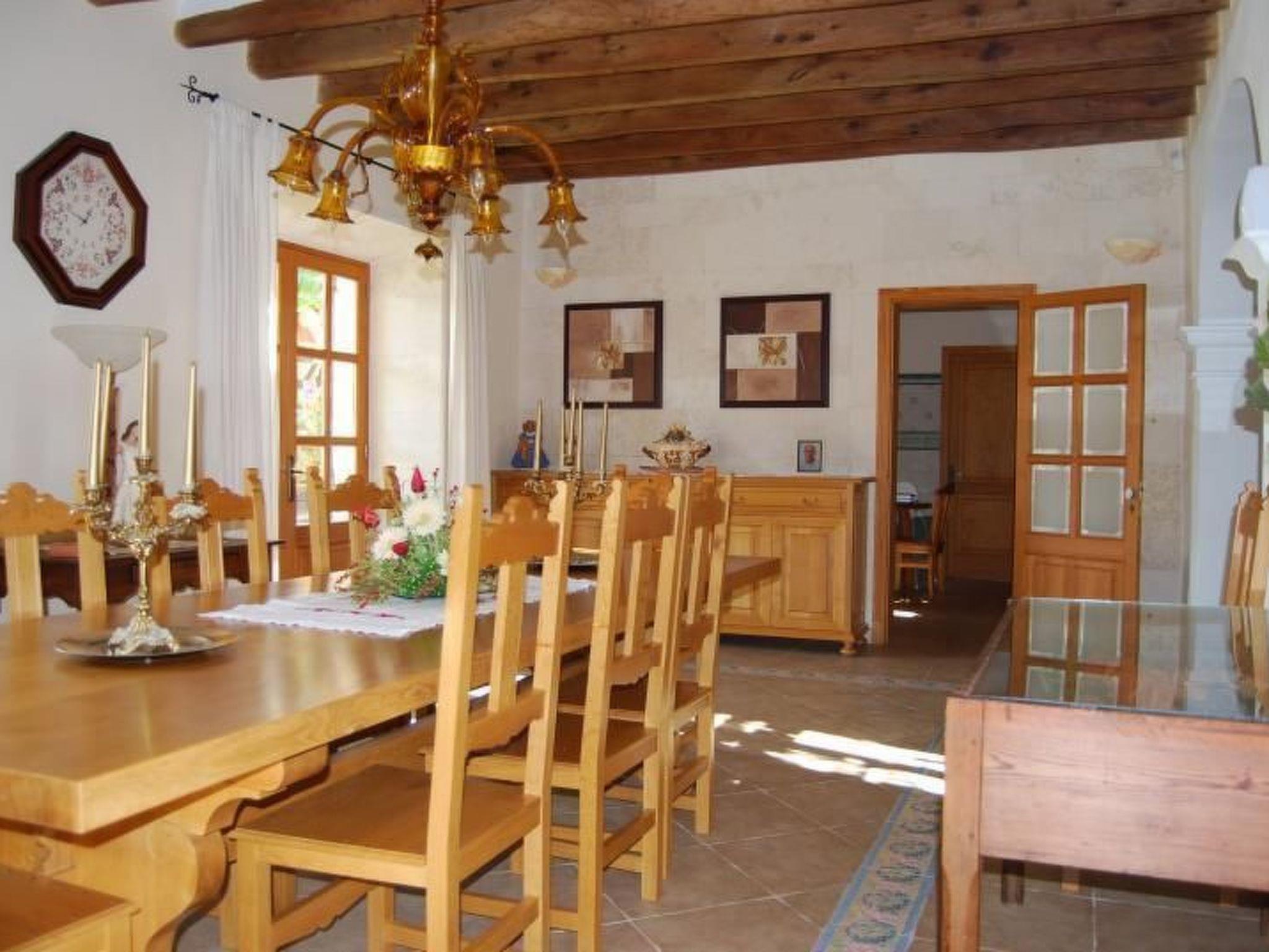 The exterior of the finca Porrassar has a large garden with lawn, private swimming pool with a size of 5,50 mx 11 m, terraces, sun loungers and parasols. Next to the pool is combined with a spacious covered terrace with an outdoor kitchen with barbecue and all other amenities such as fridge / freezer, dishwasher, electric oven, with a work area, satellite TV, DVD and stereo. Finca Es Porrassar is located near Cas Concos, a quiet village in the southwest of Mallorca, with 450 inhabitants, where it managed to keep its typical Majorcan atmosphere, but at the same time, offer a modern service, with its famous restaurants and shops. The most beautiful beaches of the south of the island such as Si Trenc, Ses Covetes or S'Amarador Mondragó are only 7 km away. For golf lovers there are golf clubs such as Vall d'Or or Son Antem only 15 minutes away by car. The capital Palma de Mallorca and the airport are situated at a distance of about 50 km.