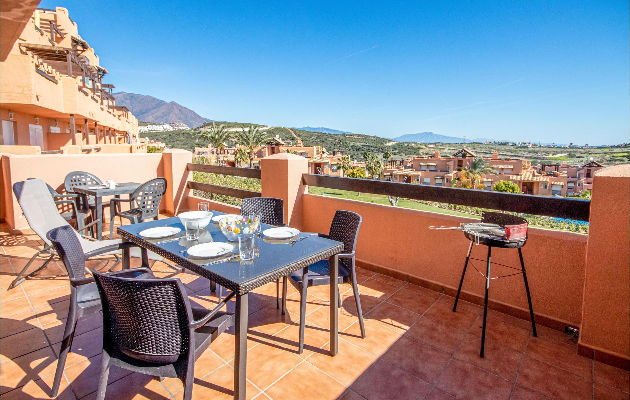 Denne lejlighed ligger i et idyllisk område midt i et nyt anlæg med flere swimmingpools. Anlægget ligger mellem den maleriske by Casares, en golfbane og Estepona, hvor strandene strækker sig i det uendelige. Her kan I dase i solen og bade i Middelhavets klare vand, men beliggenheden inviterer også til udflugter til nogle af Andalusiens smukkeste byer og natur. I kan fint starte med Malaga som er en af Spaniens største byer. Malaga bærer desuden præg af de over 700 år hvor byen var maurisk og I kan bl.a. besøge de store fæstninger Alcazaba og Gibralfaro. Byen rummer desuden Picasso museet med en af verdens største samlinger af bysbarnet Pablo Picassos malerier og keramik. Byen er rig på oplevelser og I kan sagtens bruge en hel dag med sightseeing og gastronomi. Kører I ind i landet så overvej at vandre en tur i en af de to bjergrige naturparker: Sierra Grazalema og Sierra de las Nieves. I denne egn findes også den smukke by Ronda som ligger betagende på et plateau højt over det andalusiske landskab.
