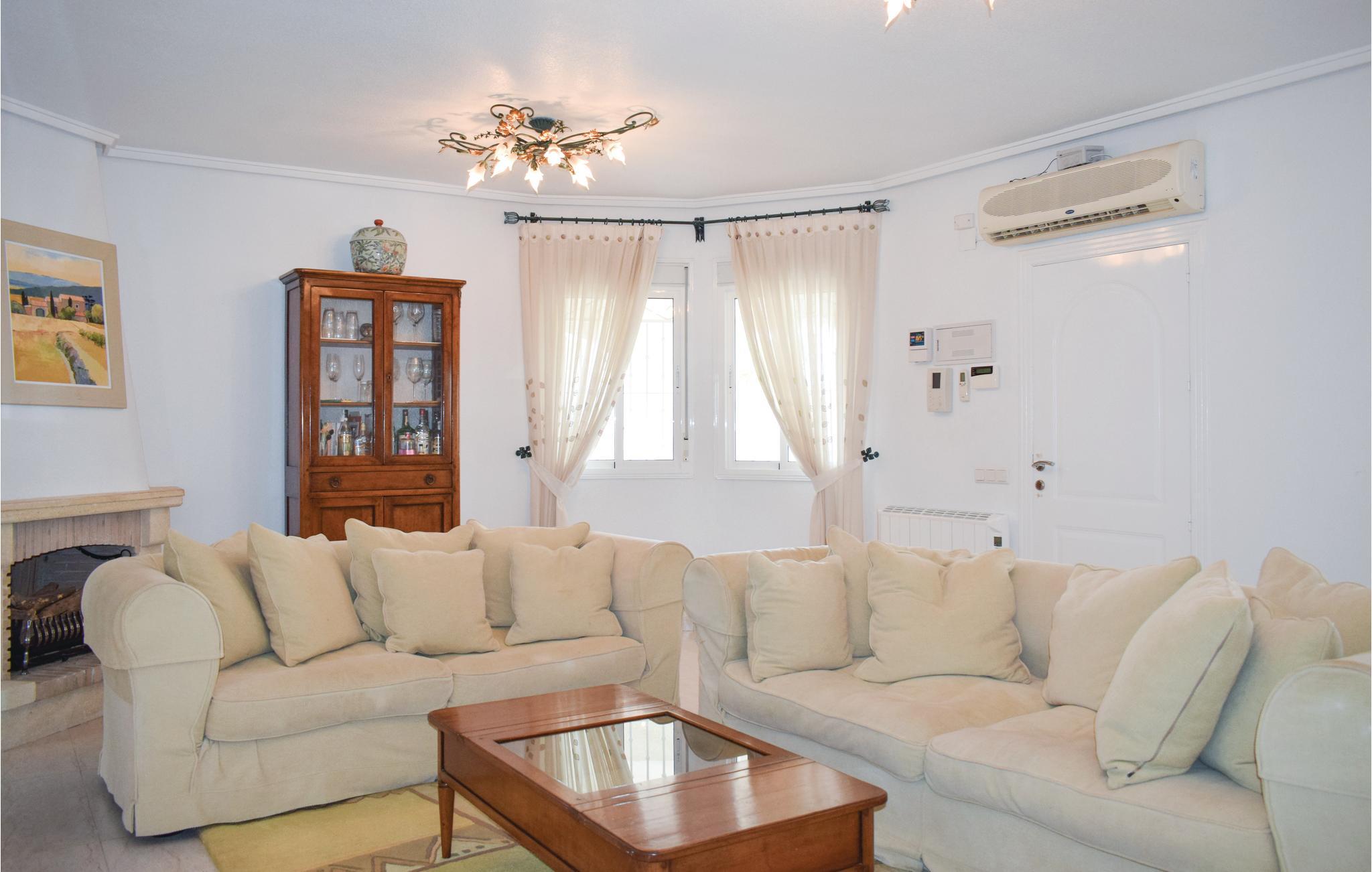 Denne charmerende villa i Ciudad Quesada er bygget i en betagende middelhavsstil og ligger i et dejligt boligområde kun 6 km fra fine sandstrande. Huset tilbyder smukke indendørs og udendørs områder, hvor du kan synke helt hen i feriens herligheder. Der er en privat swimmingpool og rummelig terrasse. Det moderne design strømmer gennem villaens to etager og giver masser af privatliv. Den lyse og rummelige stueetage har en stilfuld stue, spiseplads forbundet til stue og køkken, tre soveværelser og to badeværelser, et af dem en suite med et moderne dobbeltbrusebad. En stor terrasse på første sal ikke er forbundet med det indre af stueetagen. Møblerne i dette hus er af høj kvalitet, og du vil føle dig hjemme her. Poolområdet er udstyret med udendørs bruser, havemøbler, grill, spisebord og spisestole. Poolen lokker dig til at tage en forfriskende dukkert. Slap af på solsengene med en god bog eller nyd en grillaften med familie eller venner, hvor I giver jer i kaste med at lave lækker tapas. Den private grund med mere end 700 m² giver masser af plads til leg – der er også en privat parkering.