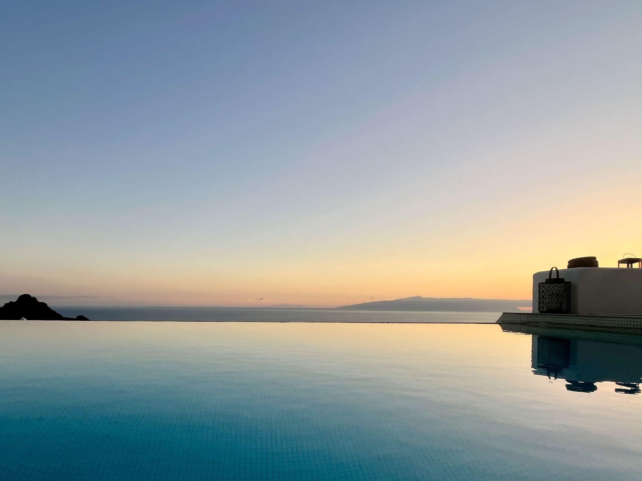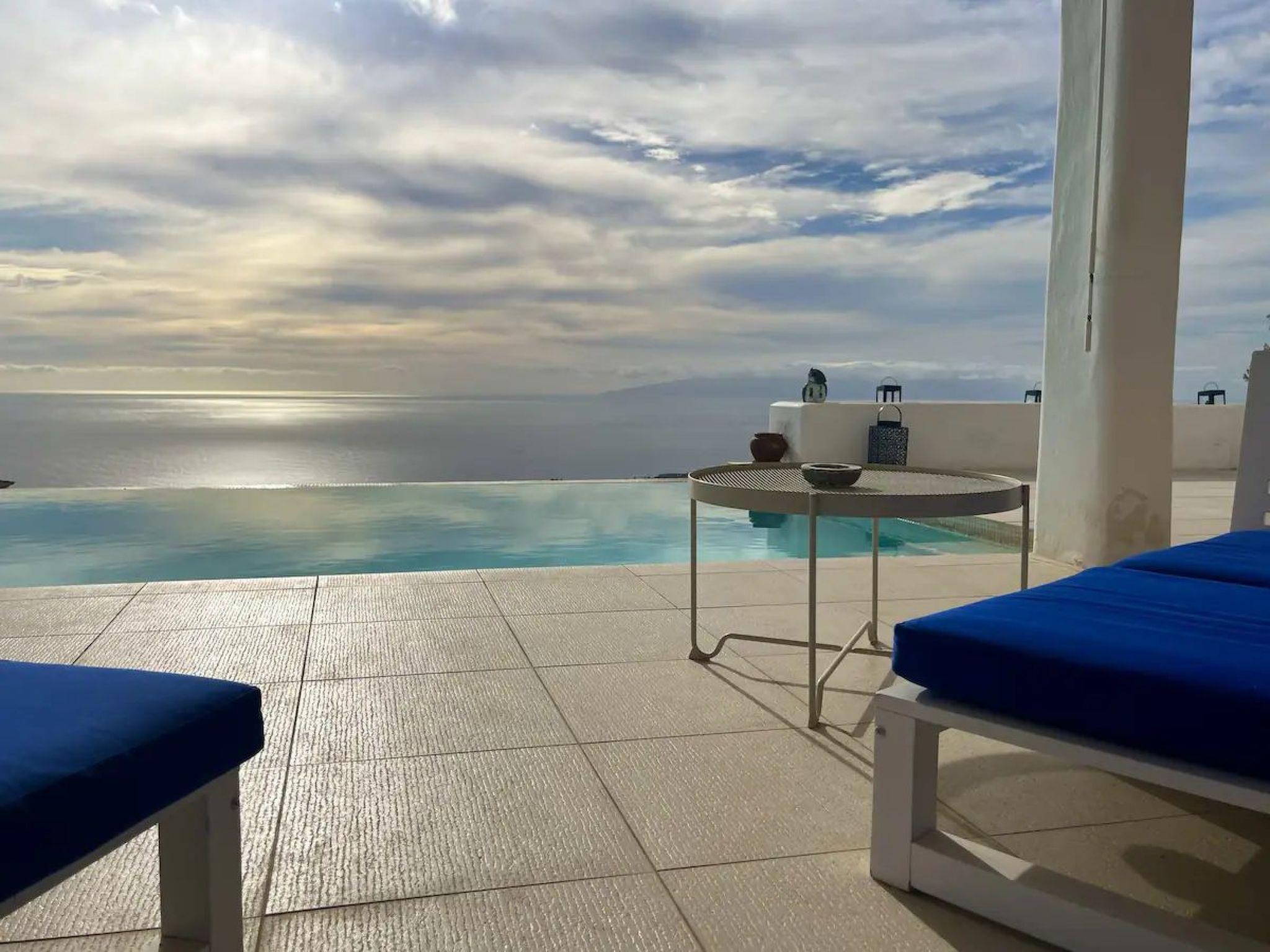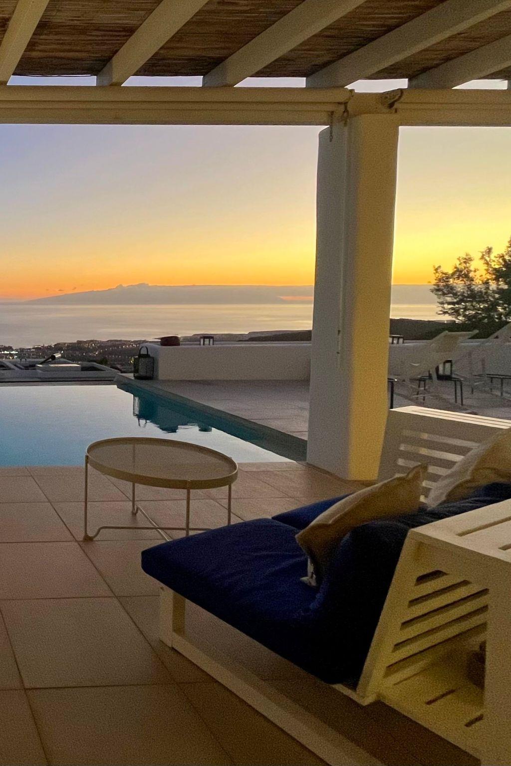 Unique Greek style villa of 500 m2 with infinity pool in Costa Adeje. Stunning sea views. A very special place to enjoy the sunsets with the island of La Gomera in the background.
