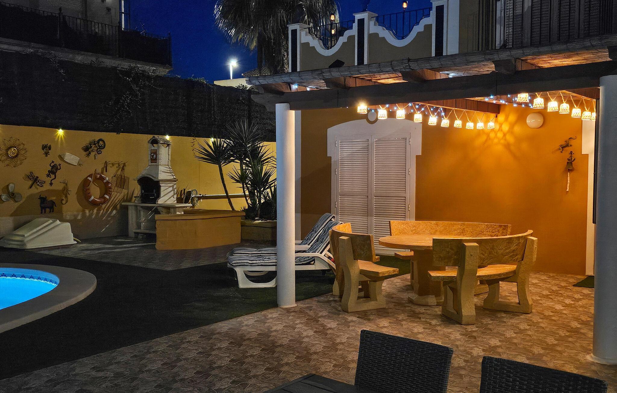 Udendørsområdet er allelunde dejligt og indbyder til mange skønne timer i solen. Sæt jer godt til rette fra morgenstunden og lad solen bage jer godt igennem, inden I tager en svalende dukkert i poolen. Til huset hører en terrasse med en skøn grillplads med siddepladser, hvor I kan hænge ud om aftenen med kig ud over den velholdte have.