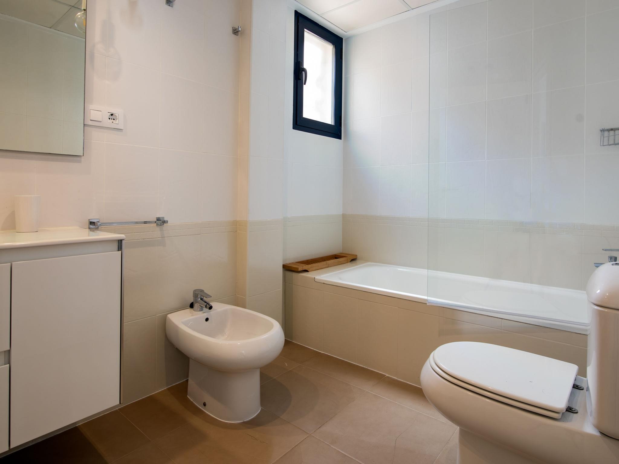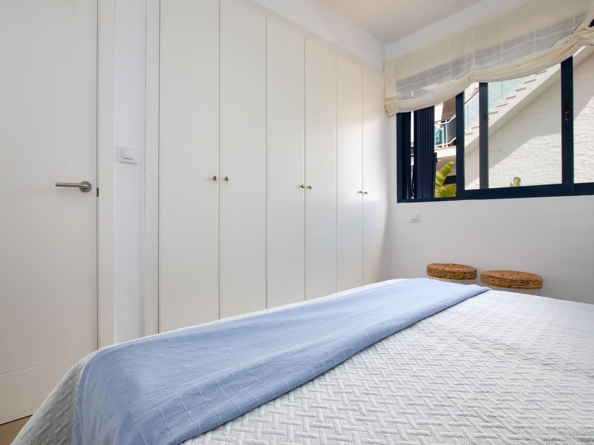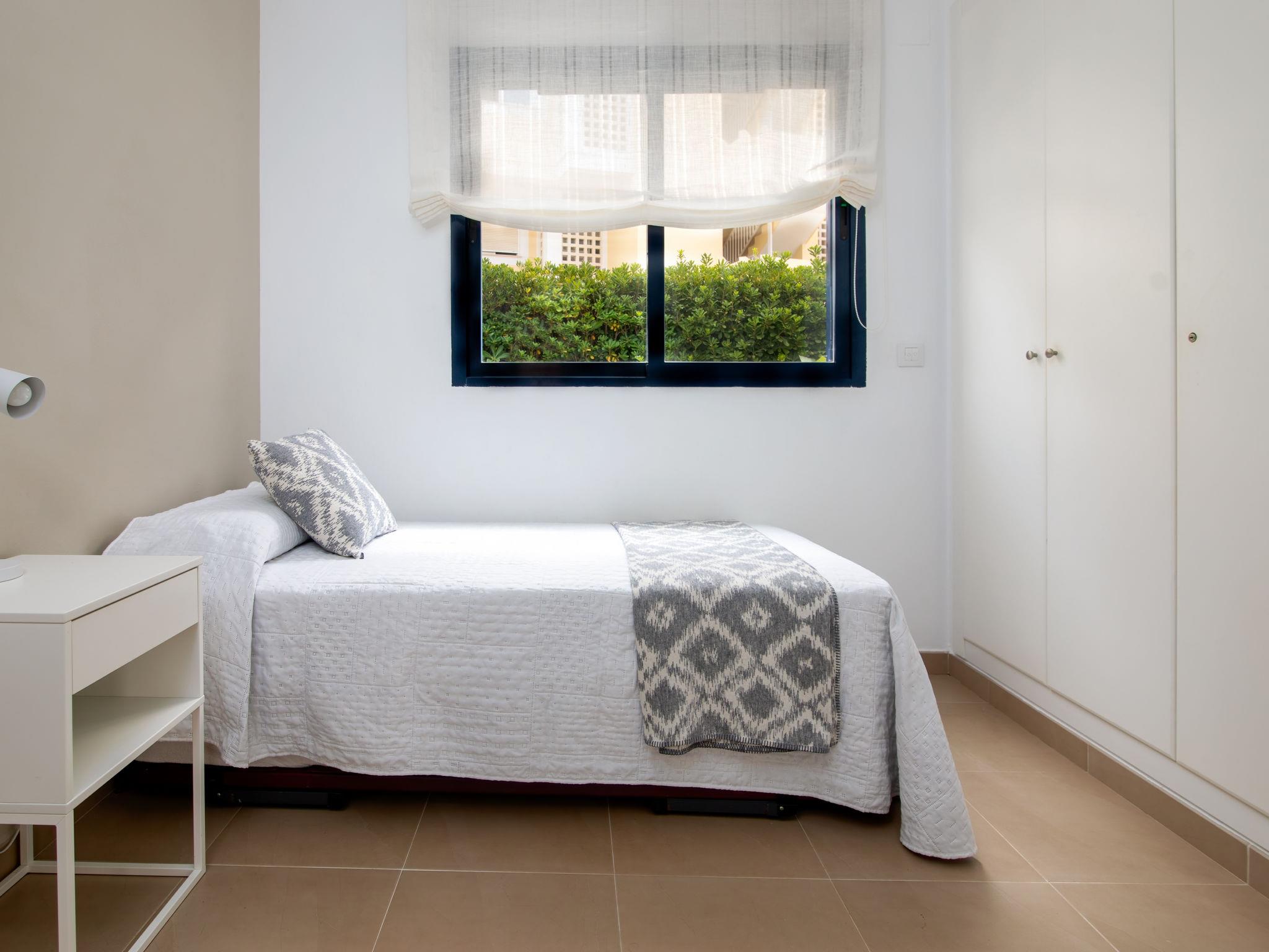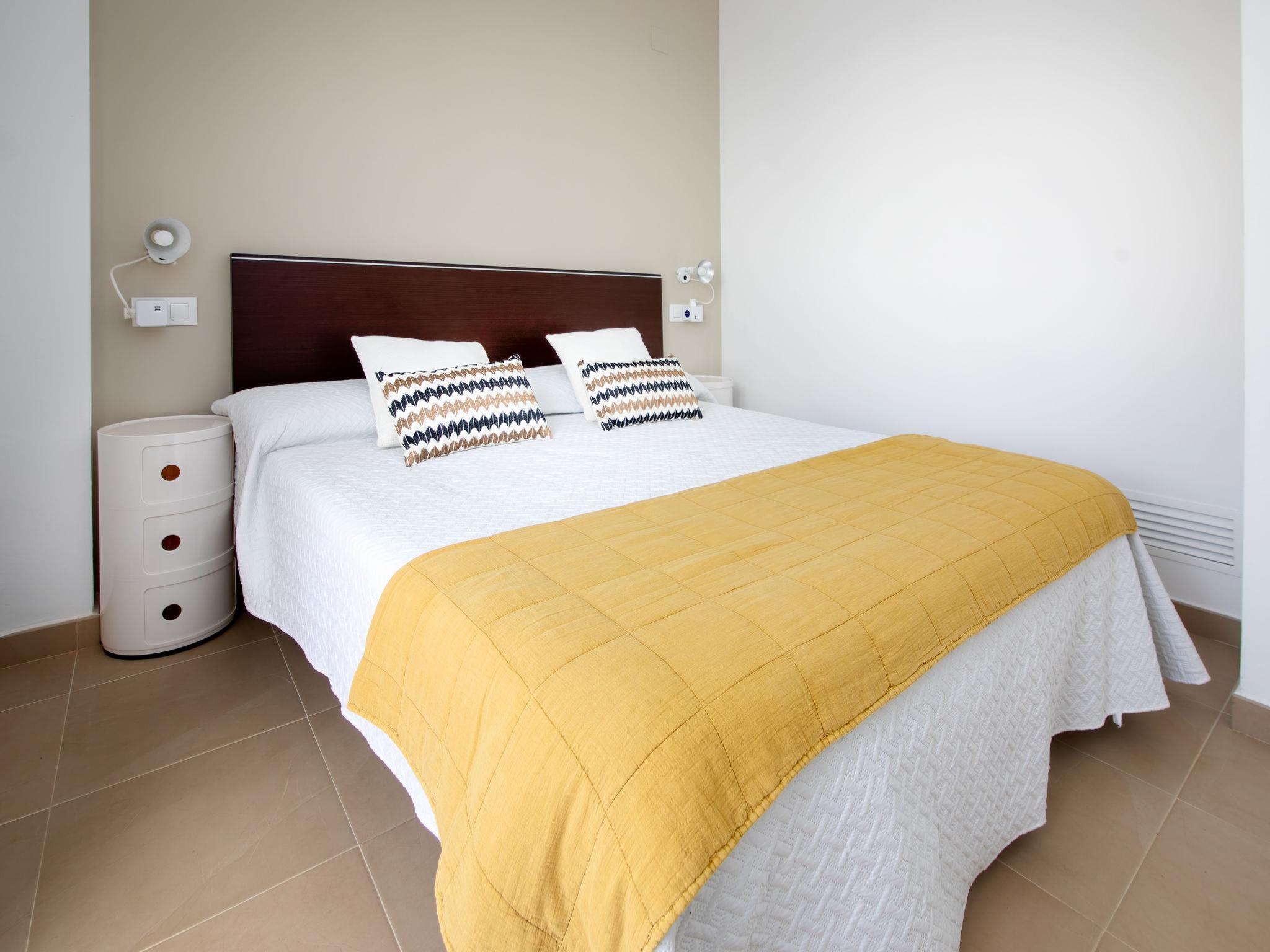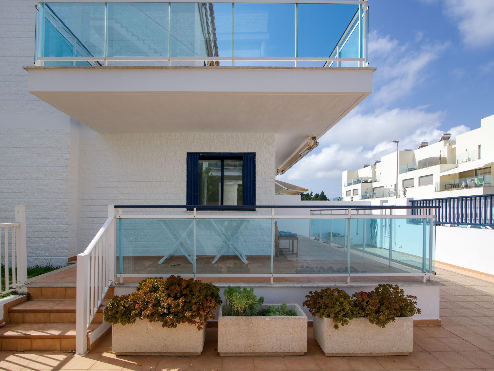 "Jardines de Denia V", 4-room semi-detached house 105 m2 on 2 levels. Spacious and bright, very beautiful and cosy furnishings: living/dining room with digital TV, air conditioning and forced-air heating. Exit to the patio. 1 room with 1 pull-out bed (2 pers. 2 x 90 cm, length 190 cm), air conditioning and forced-air heating. Kitchen (oven, dishwasher, 4 ceramic glass hob hotplates, microwave, freezer, electric coffee machine). Shower/WC. Upper floor: 1 room with 1 french bed (160 cm, length 190 cm), air conditioning and forced-air heating. Exit to the terrace. 1 room with 2 beds (90 cm, length 190 cm), air conditioning and forced-air heating. Bath/bidet/WC. Patio, lawn. Terrace furniture, barbecue. Very beautiful view of the sea. Facilities: washing machine, iron, children's high chair, baby cot, hair dryer. Internet (WiFi, free). Parking. Please note: TV only ES. R00000001