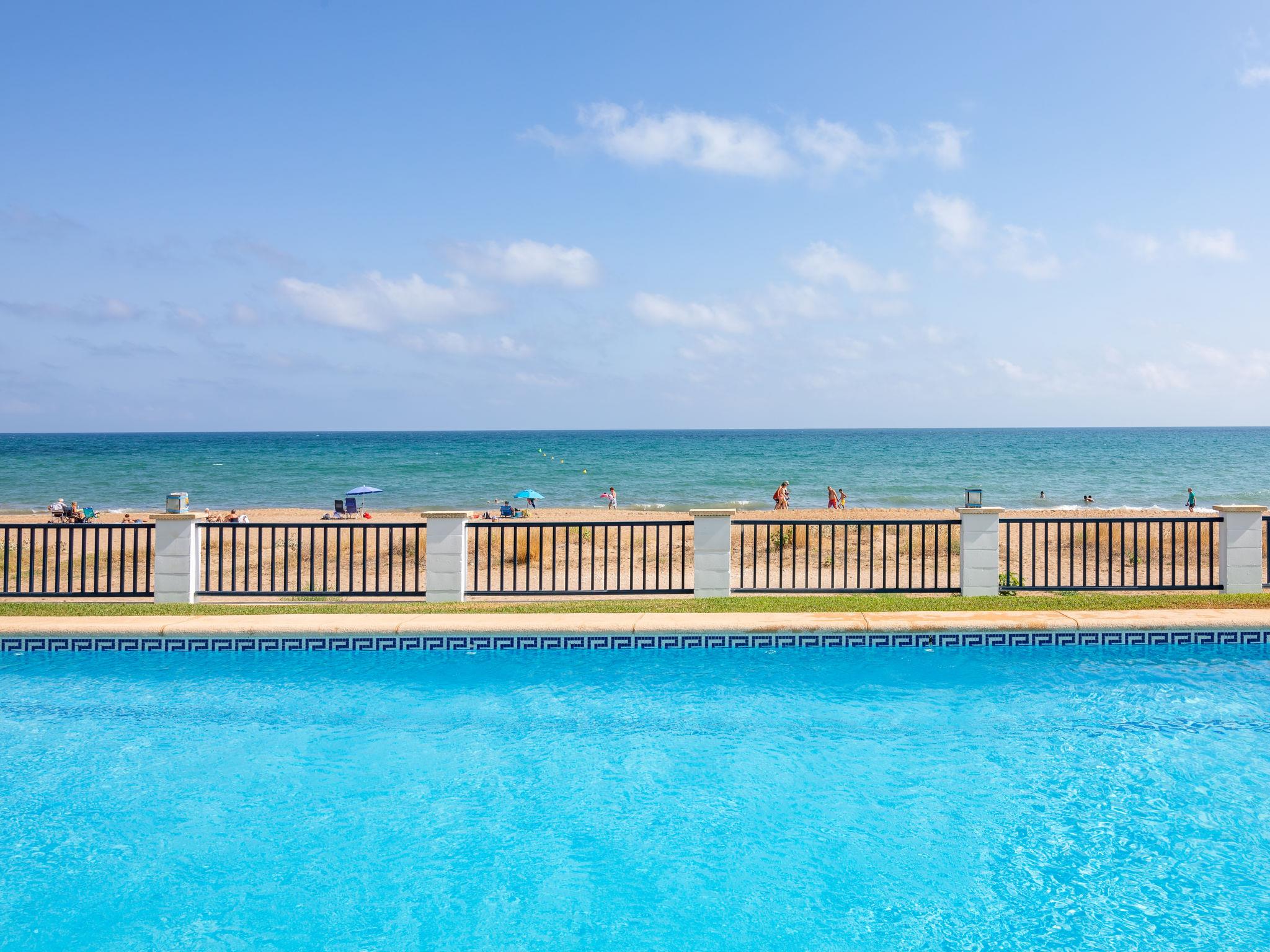 Large, very beautiful, very comfortable semi-detached house "Jardines de Denia V", 2 storeys. Les Marines 7 km from the centre of Denia, in a quiet, sunny position, 50 m from the sea, from the beach, direct access to the beach. For shared use: property (fenced) with lawn and trees, swimming pool (15 x 7 m, depth 110 - 210 cm, seasonal availability: 01.Jan. - 31.Dec.) with internal staircase. Children's pool, outdoor shower. Private: with lawn and trees. Garden furniture, barbecue, parking on the premises. Supermarket 1.2 km, restaurant, café 450 m, bus stop 250 m, railway station 9.3 km, sandy beach "Platja de l'Estanyó" 50 m. Sports harbour 7.5 km, marina 7.5 km, surf school 3 km, sailing school 3 km, tennis 6 km. The owner does not accept any youth groups.
