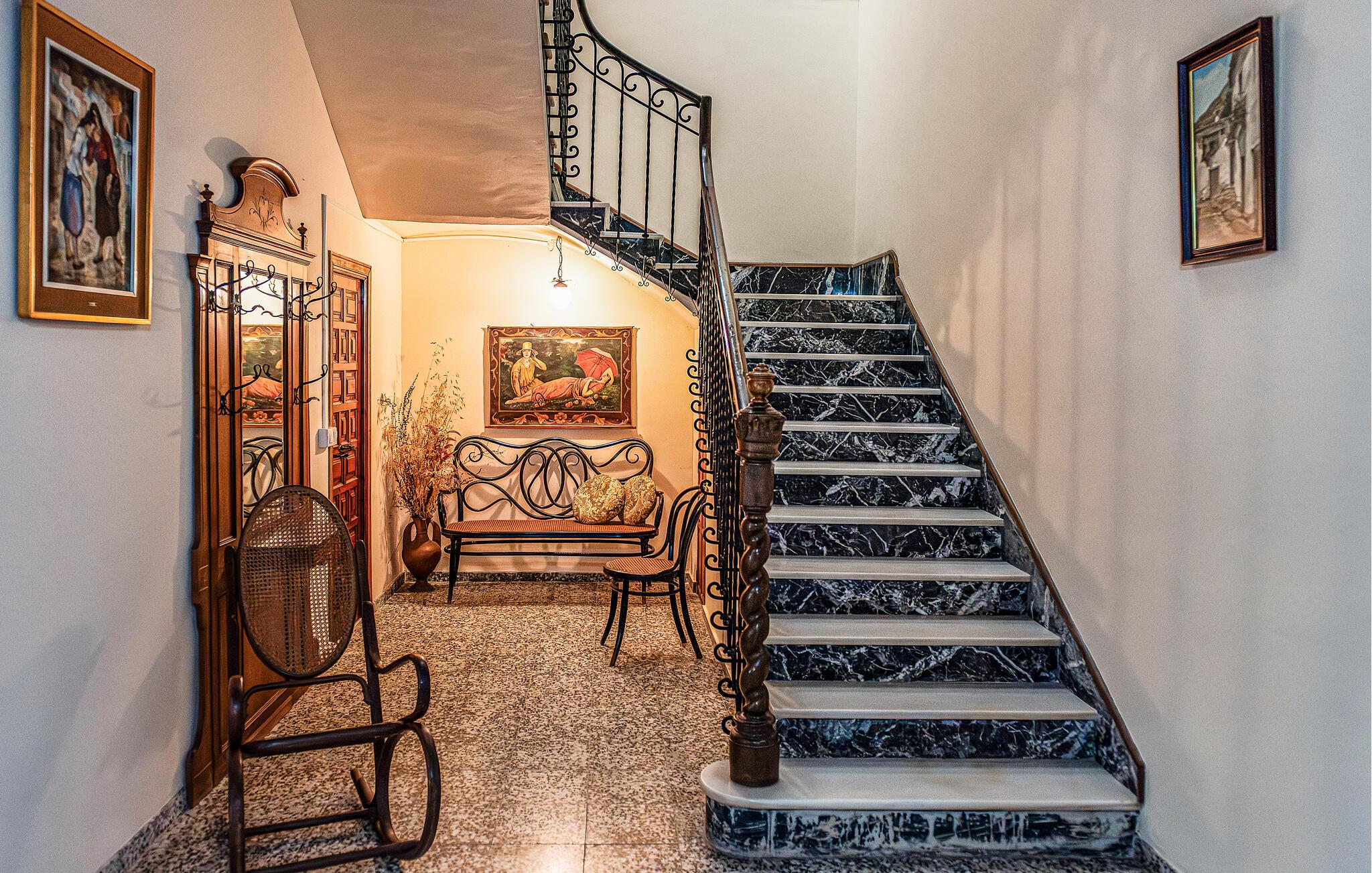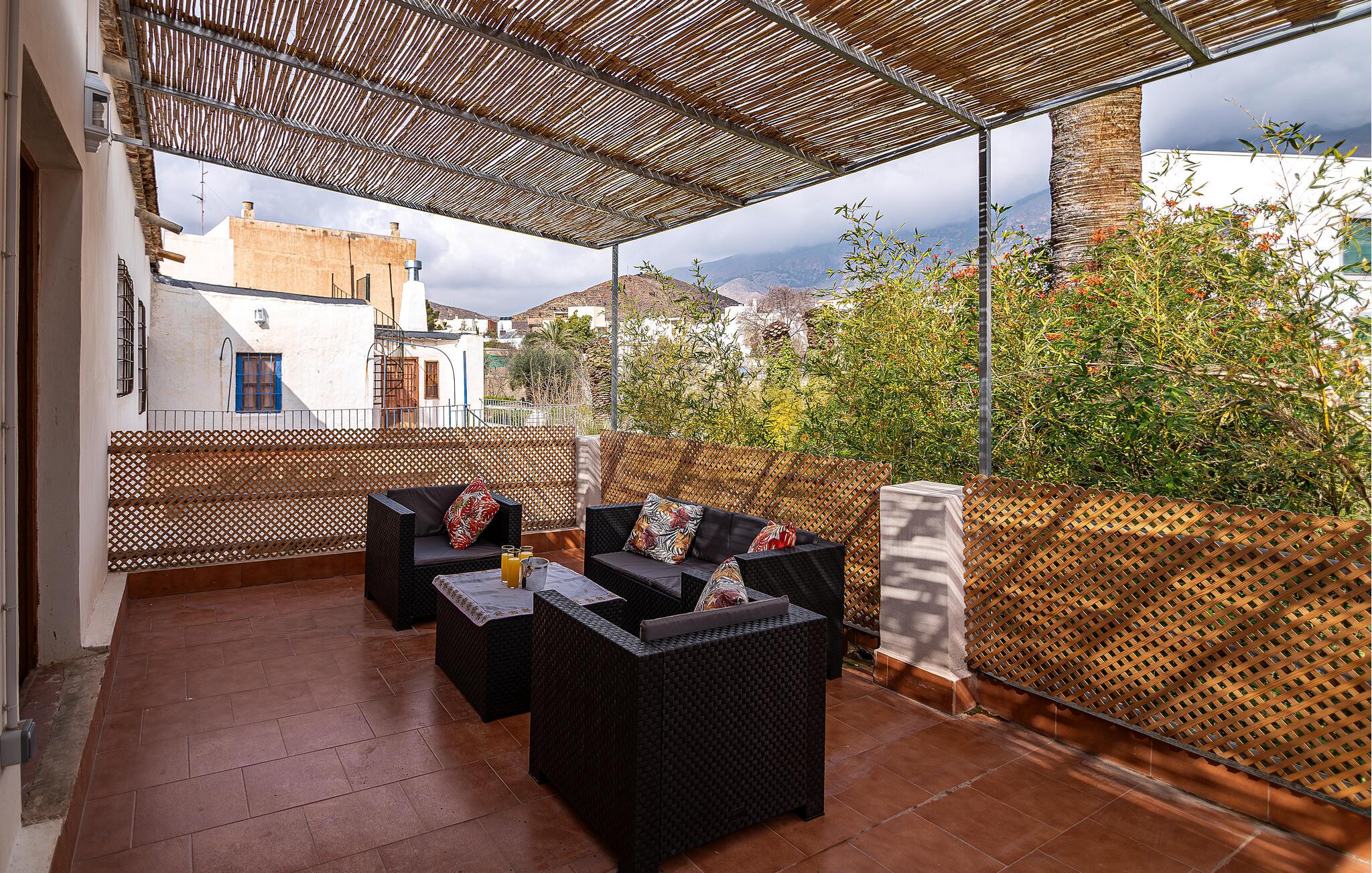 Dette restaurerede historiske hus i Dalías er et fredeligt og charmerende tilflugtssted, der tilbyder rigelig plads til fælles måltider, hyggelige spilleaftener og stimulerende samtaler. Sæt jer til rette i et af de mange indbydende siddeområder, nyd den nostalgiske og komfortable atmosfære, og slap af med en film om aftenen.