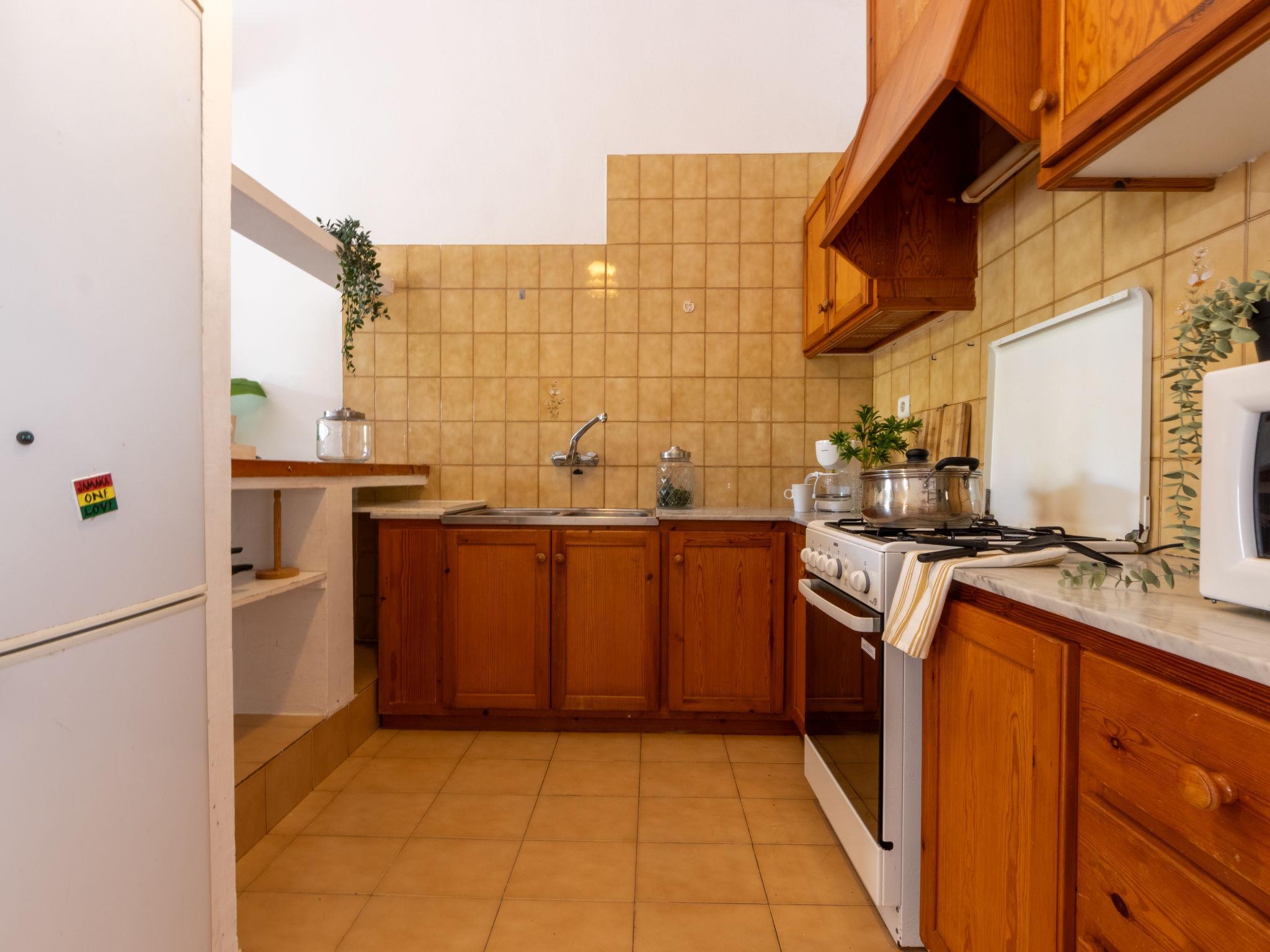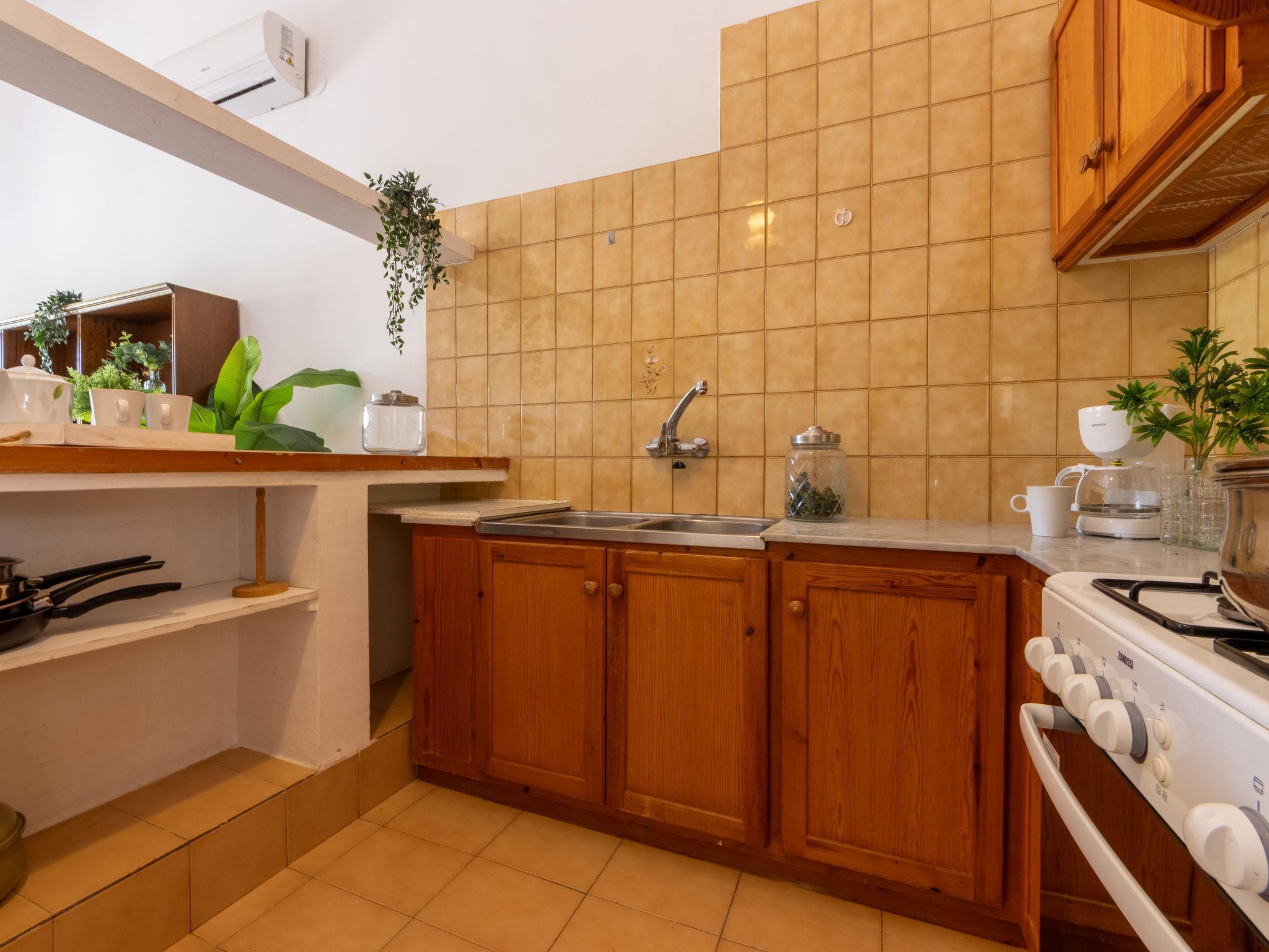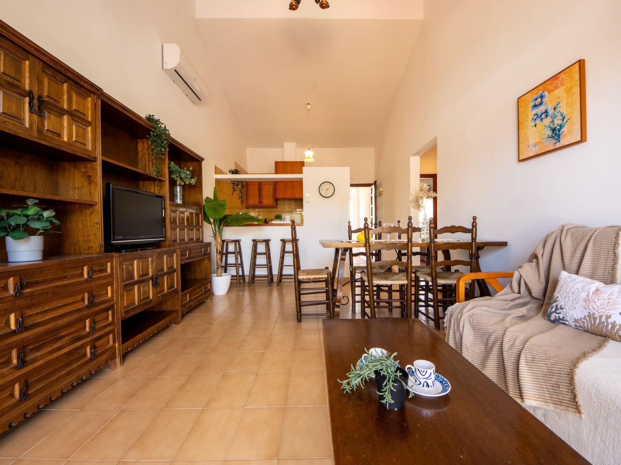 "D1", 3-room house 59 m2, on the ground floor. Practical and antique furnishings: living/dining room with dining table and digital TV. Exit to the terrace. 1 double bedroom with 2 beds (90 cm, length 190 cm). 1 double bedroom with 1 french bed (135 cm, length 190 cm). Open kitchen (4 hot plates, oven, toaster, kettle, microwave, electric coffee machine) with bar. Hip bath/WC. Air-conditioning, forced-air heating. Terrace furniture, box-room. Facilities: washing machine, iron, mosquito net, hair dryer. Internet (WiFi, free). Parking at the house. Suitable for families. Maximum 1 pet/ dog allowed. HUTTE-001866 // Reg. Nr.: ESFCTU0000430190002315480000000000000000HUTTE-0018664