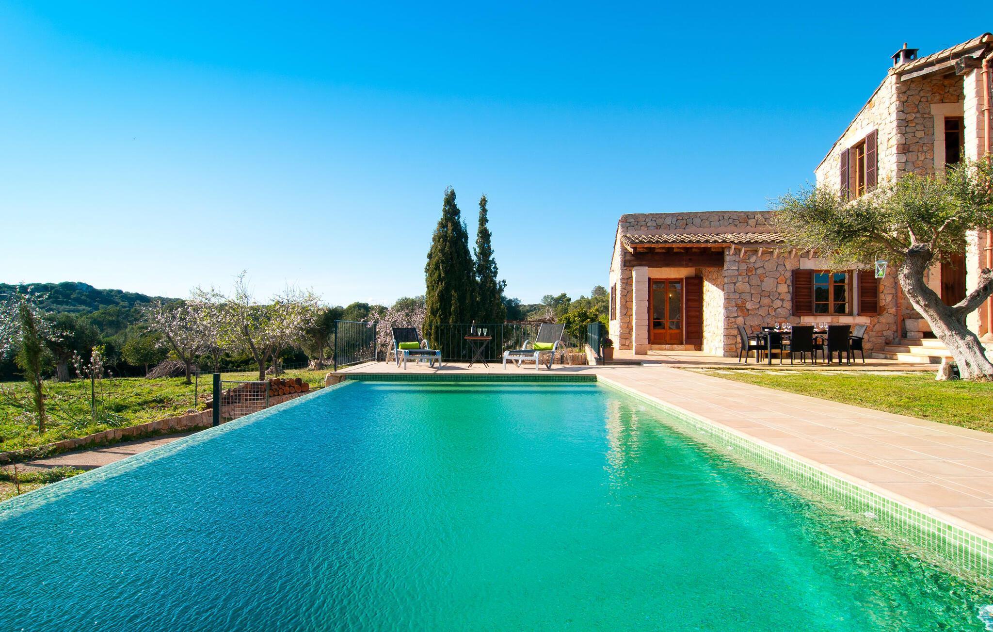 Har du altid drømt om at vågne op om morgenen i et herskabshus og starte dagen med en gåtur gennem landskabet? Så er du kommet til det rigtige sted i villaen “Els Nou Cortons”. Dette er et Fincallorca feriehus. Selvom havet næsten er inden for rækkevidde af kysten, og man oven i købet kan se det fra ejendommen, har man den skønne følelse af at kunne forkæle sig selv med en pause fra civilisationen – midt i appelsin- og citronplantagerne. Og alt dette uden at skulle give afkald på nogen bekvemmeligheder: foran dig ligger den turkise pool og hviler sig i morgensolen, og nu og da kruser vandoverfladen, når vinden skifter og bringer et frisk pust ind i dag. Du bor omgivet af natur; Når du ser dig omkring, kan du se de frodige planters frodige planter og det knudrede træ fra de gamle træstammer. Der er endda en hængekøje bag huset, hvor du kan nyde solen gennem de svajende grene. Poolen er omgivet af en terrasse med liggestole, så du kan nyde dette særligt smukke sted og tage lidt fred og ro med dig hjem, når du går. Takket være grillhjørnet er din “ranch” naturligvis også ideel til ildsjæle grillaftener, hvor du kan afslutte dagen ved et bord under stjernehimlen med et romantisk glas rødvin. Store poolfester er forståeligt nok ikke tilladt på denne idylliske beliggenhed og ville unødigt forstyrre den fredelige natur. Bag naturstensvæggen er der en rummelig kaskade af hyggelige rum, der flyder ind i hinanden - den solide arkitektur skaber et særligt smagfuldt levende flair og sikrer samtidig hyggelige, hyggelige hjørner. Det gælder især inglenook pejsen, hvor du kan slappe af på elegante sofaer, mens pejsen knitrer søvnigt. Ved siden af i køkken-alrummet er søndagsstegen måske allerede ved at lave mad og fylder hele gulvet med fristende dufte. Den rustikke konstruktion med de fritlagte træbjælker gør, at du ikke et øjeblik glemmer, at du befinder dig i en stilfuld mallorcansk villa, som legende kombinerer denne stil med lysstyrken fra lyse trætoner. I stueetagen finder du to soveværelser og to badeværelser, mens overetagen udstråler teltagtig charme takket være lofterne til kip. Der er endnu et soveværelse med to enkeltsenge og det tredje badeværelse, så du ikke behøver at rejse langt om morgenen, når de morgenfriske gør klar. Et andet rum med et lille vindue står til rådighed for dig - måske til at opbevare gaver, som du tager med hjem fra dine udforskninger. Den landlige beliggenhed garanterer dig en absolut rolig ferie - over en noget stenet skråning når du vejen, der fører dig til Son Servera på 2,3 km til ærinder eller til den livlige kystby Cala Millor på kun 4 km. Udover de mange muligheder for at tage ud, byder byen på adskillige fritidsaktiviteter, især for familier, og når de lokale delikatesser tilbydes på det ugentlige marked om torsdagen, er alderen ligegyldig. Den lange strand med fint, hvidt sand og blid adgang til havet er en fornøjelse, og den fremragende vandkvalitet er prikken over i'et. Placeringen af villaen på øen er også strategisk ideel: på kun 5 minutter kan du nå den lille landsby Costa de los Pinos. Fantastiske shoppingmuligheder findes i Manacor (17 km). Tingene er meget roligere i den idylliske by Artà (18 km), hvor den maleriske gågade er særdeles velegnet til slentreture. Sidst, men ikke mindst, kan du kigge efter sportslige udfordringer på Pula golfbane, kun 8,5 km væk. Villaen "Els Nou Cortons" imponerer med sin utraditionelle, rustikke arkitektur og den fantastiske beliggenhed: På den ene side en komplet landlig idyl midt mellem appelsin- og citrontræer, på den anden side kun 4 km fra Cala Millor, fuld af det høje liv og de perfekte forhold Tilbring afslappende dage på stranden. Havet er udsigten! Der er kun omkring 9 km til Costa de los Pinos, hvis du vil nyde et mere afsondret sted ved havet. Palma de Mallorca lufthavn ligger 67 kilometer væk.