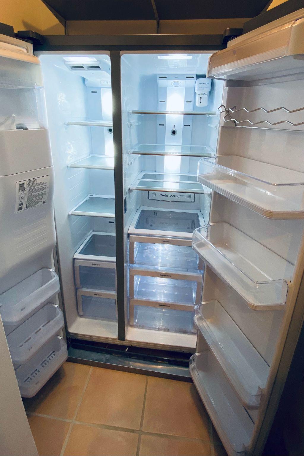 The kitchen is another highlight. It has two counters with a direct hatch to the conservatory with dining area. Thanks to its square shape, it is practically arranged and offers a high level of convenience thanks to the built-in quality brand appliances (convection cooker, extractor bonnet, fridge/freezer, dishwasher, microwave, two coffee machines, toaster, kettle, etc.). You also benefit from sufficient and tasteful crockery, cutlery, glasses and other kitchen utensils to make cooking and baking a pleasure. The side-by-side fridge-freezer in the side wing of the villa is a valuable extra, especially in the summer months, for keeping food and drinks cool and fresh. On the ground floor there is a guest bedroom with a double bed (1.40 x 1.90 metres) and a comfortable bathroom with shower and underfloor heating.