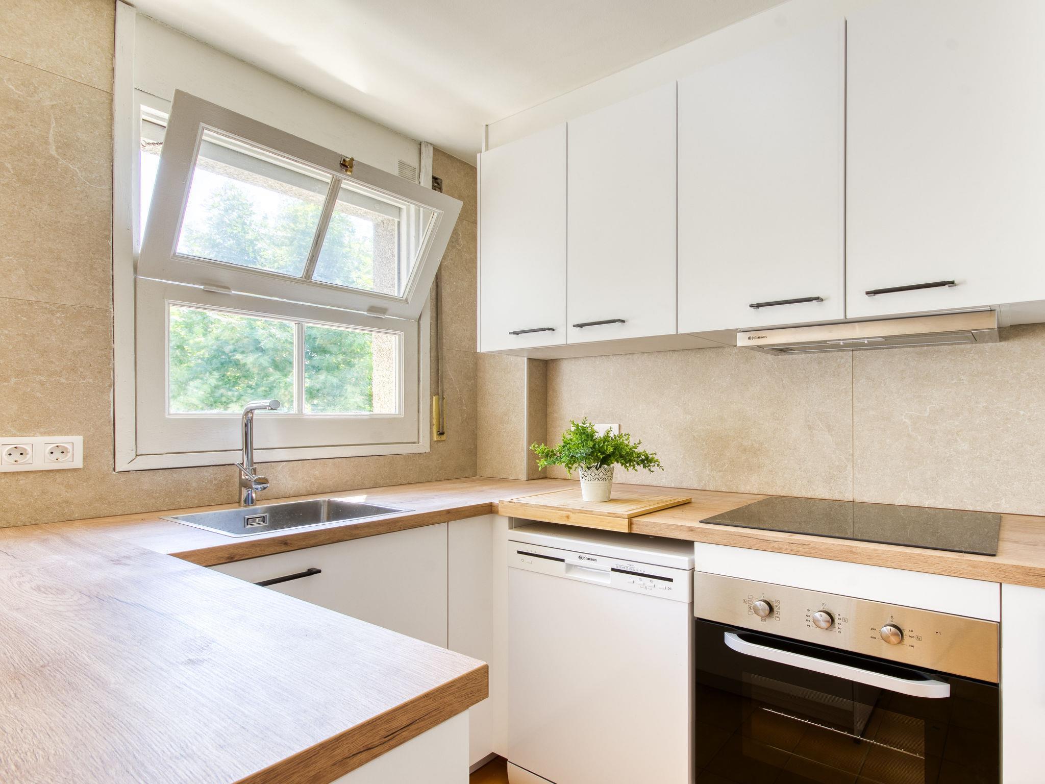 3-room apartment 55 m2. Simple and comfortable furnishings: living/dining room with dining table and satellite TV. Exit to the balcony. 1 room with 1 french bed (140 cm, length 190 cm). 1 children's room with 2 beds (90 cm, length 190 cm). Open kitchen (oven, dishwasher, 4 ceramic glass hob hotplates, toaster, kettle, microwave). Hip bath/bidet/WC. Balcony. Balcony furniture, barbecue. Facilities: washing machine, iron, hair dryer. Internet (WiFi, free). Please note: non-smokers only. No lift. HUTG-048895