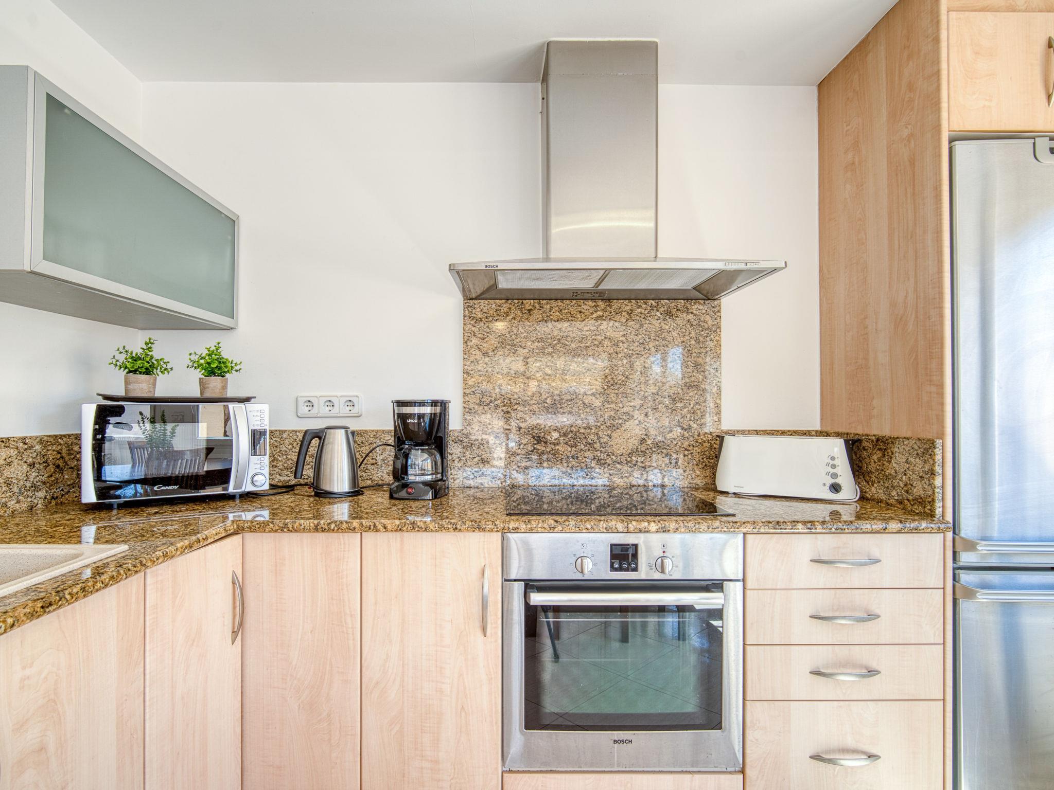 6-room house 138 m2 on 2 levels. Bright, practical and comfortable furnishings: living/dining room with satellite TV, digital TV and flat screen. Exit to the terrace. 1 room with 1 french bed (150 cm). 1 room with 2 beds (90 cm). Open kitchen (oven, dishwasher, 4 ceramic glass hob hotplates, toaster, kettle, microwave, freezer, electric coffee machine). Shower/WC. No heating option. Upper floor: living/dining room with satellite TV, digital TV and flat screen. 1 room with 1 french bed (150 cm). 2 rooms, each room with 2 beds (90 cm). Open kitchen (oven, dishwasher, 4 ceramic glass hob hotplates, toaster, microwave, freezer, electric coffee machine). Exit to the balcony. 2 showers/WC. Large terrace 40 m2. Terrace furniture, deck chairs. View of the swimming pool. Facilities: washing machine. Internet (WiFi, free). Parking (fenced). Please note: maximum 1 pet/ dog allowed. TV only ES, FR. HUTG010848 // Reg. Nr.: ESFCTU000017020000078267000000000000000000HUTG0108483