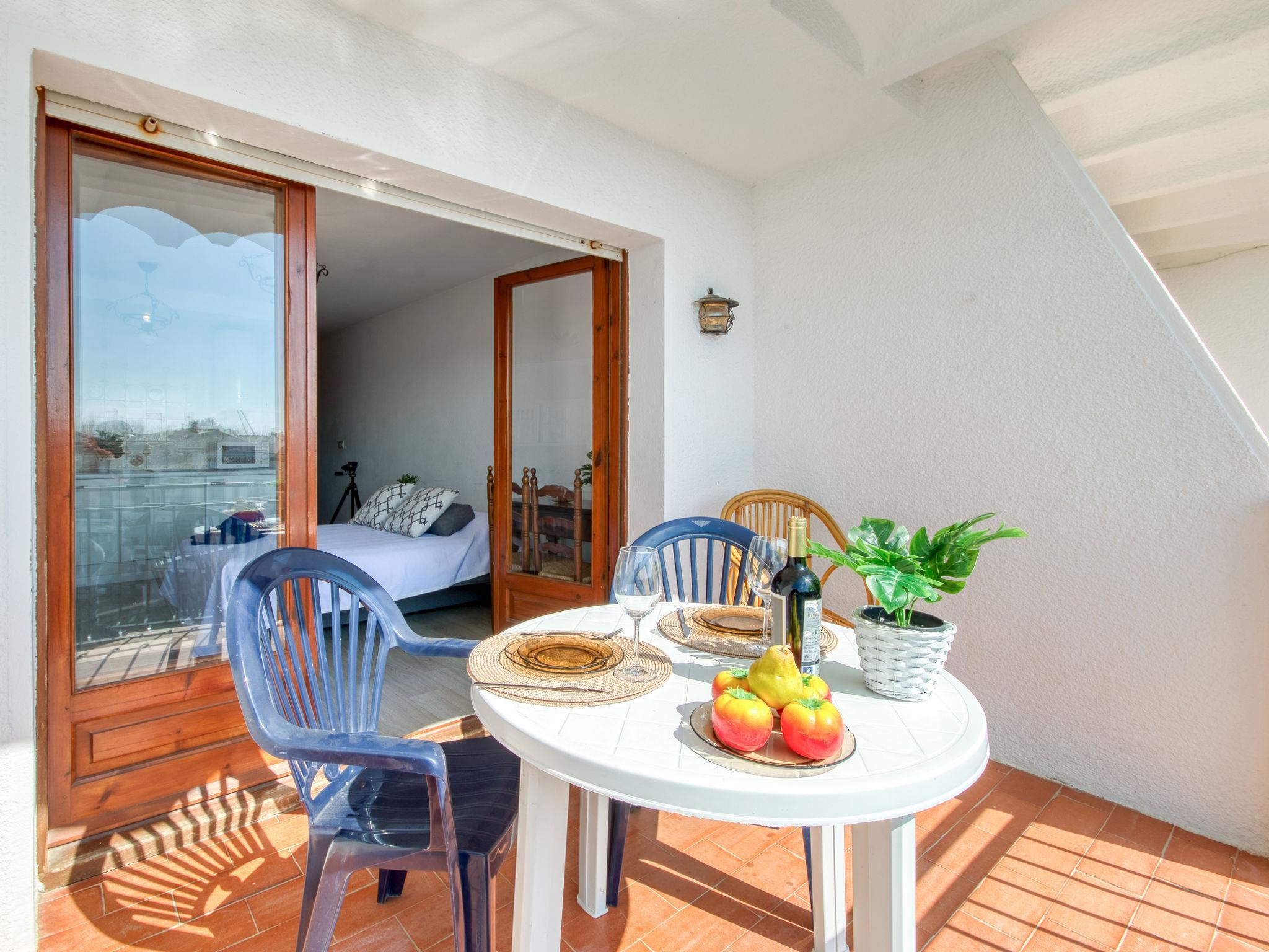 1-room studio 25 m2. Bright, practical and comfortable furnishings: living/sleeping room with 1 double sofabed (140 cm, length 190 cm), dining table, satellite TV, digital TV and flat screen. Exit to the terrace. Kitchenette (2 gas rings, toaster, microwave, electric coffee machine). Shower/WC. Terrace 10 m2. Terrace furniture. Very beautiful view of the canal. Facilities: washing machine, iron, hair dryer. Please note: non-smokers only. 1 small pet/ dog allowed. TV only ES, FR, DE. No lift. This apartment does NOT have WIFI. HUTG-013940 // Reg. Nr.: ESFCTU00001702000014167100000000000000000HUTG-0139400